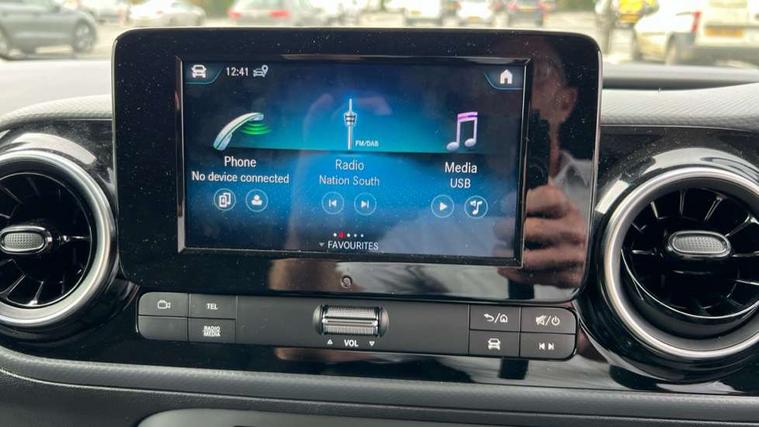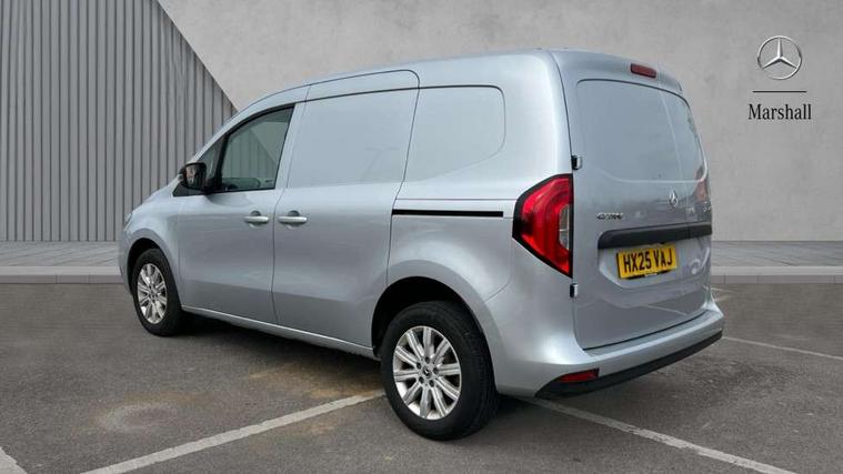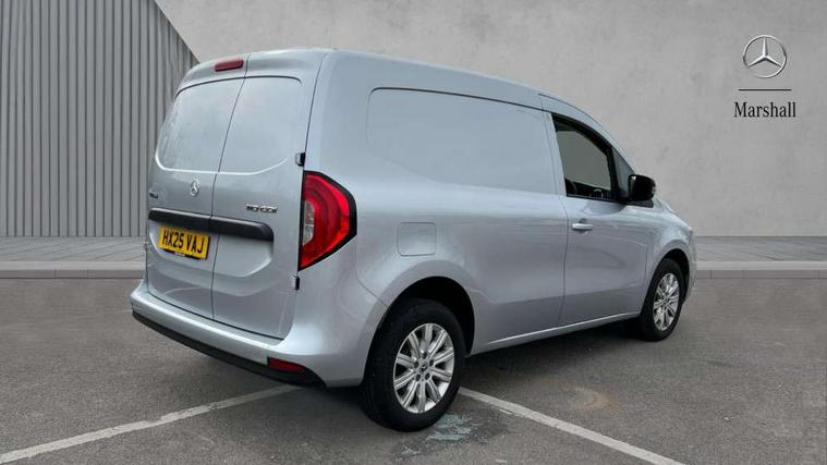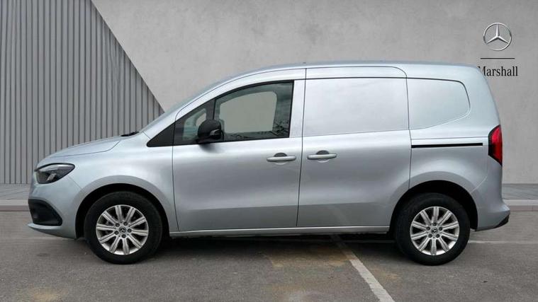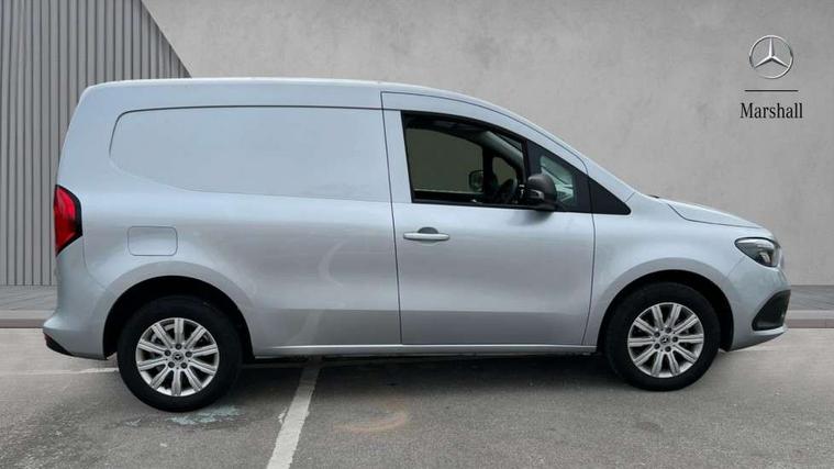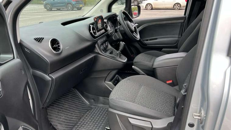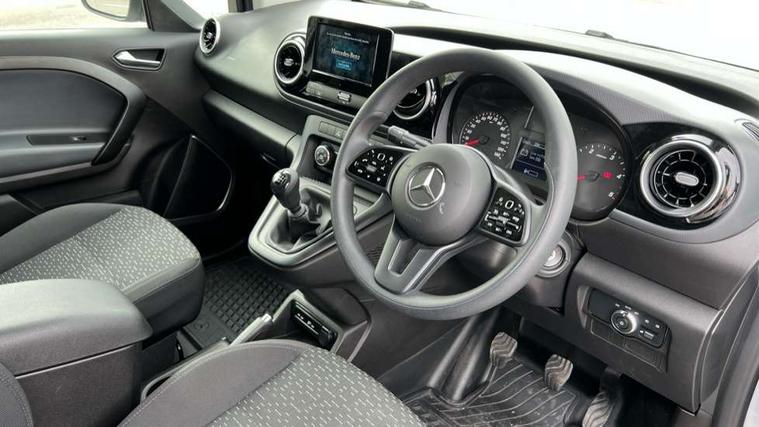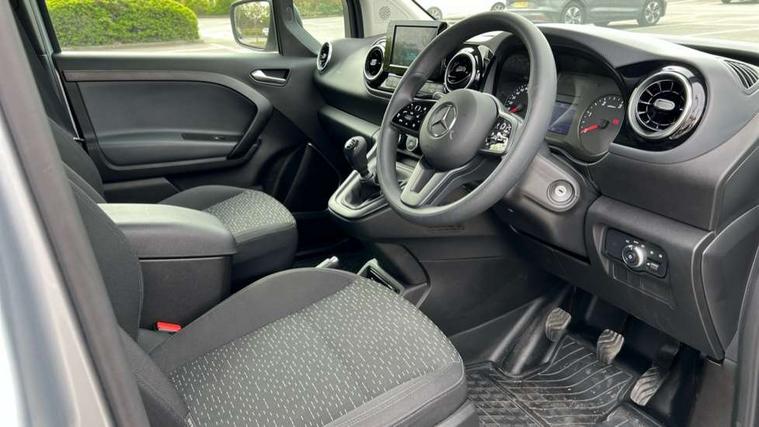 Bluetooth, Communication module (LTE) for digital services, Cruise control and variable speed limiter, PAS, Pre-installation - Mercedes me connect, Smartphone integration wireless with Android auto and Apple carplay, Speedometer mph and km/h, Trip computer, Aux input socket, Radio/MP3, USB connection, 180 degrees rear door double-wing, Air drying for windscreen and side windows, Aspherically curved exterior mirror glass, Automatic hazard light activation under emergency braking, Body colour painted bumpers, Body coloured door handles, Daytime running lights, Electric front windows with one touch operation, Heat insulating glass, Heated door mirrors, Left side sliding door, Light and rain sensors, Sliding door rail cover in vehicle colour, Third rear brake light, 12v electric socket in centre console, 6 Load securing rings on floor, Armrest with stowage compartment, Centre armrest and door centre panels in black grain, Driver and passengers sunvisors, Full length partition, Glove compartment closed in co-driver's side, Height adjustable co-driver's seat, Height and rake adjustable steering wheel, Interior roof lamp with switch on the D pillar and 3 way setting, LED interior light, LED load compartment lighting, Multi function steering wheel, Overhead storage, Plastic flooring in boot/load compartment, Plastic flooring in front passenger compartment, Pollen filter, Pre-installation - Remote services plus, Storage compartments in doors, Chrome interior appointments pack - Citan, Dynamic exterior pack - Citan, Interior design pack - Citan, Light pack - Citan, Rear parking pack - Citan, Attention assist, Automatic co-driver airbag deactivation, Breakdown management, Driver and co-driver airbag, Front thorax-sidebags and window bags, Height adjustable seatbelts + pretensioners + force limiters, Mercedes-Benz emergency call system, Seat belt warning for driver and co-driver seats, Alarm, Central locking, Double lock, 17.4L AdBlue tank, 6 speed manual transmission, Active brake assist, Brake system with ABS and ASR, ECO Start/stop function, Electronic stability programme, Fuel filter with water separator, Hill start assist, Particulate trap, Summer tyres, Tyre optimised for roll resistance, Tyres without name of make,