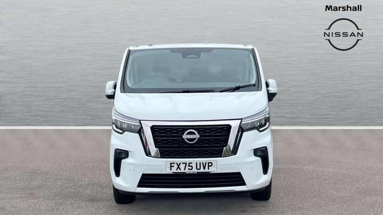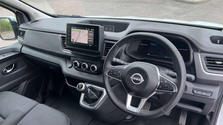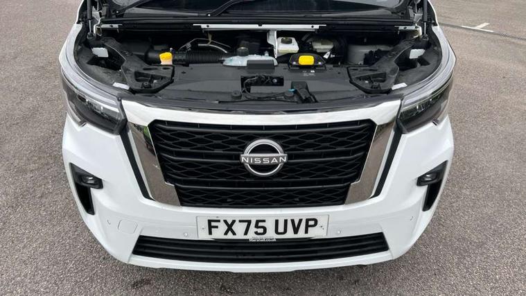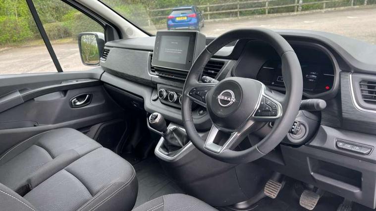 7" Colour TFT screen in dials dash, Blind Spot warning system, Bluetooth, Car phone pre installed, Driver drowsiness and attention warning, eCall, Front parking sensor, Intelligent Speed Assist (cruise control with speed limiter and traffic sign recognition), Lane departure warning system, Low fuel level warning light, Navigation system, Nissan connected services, PAS, Rear parking sensor, Rear view camera, Service indicator, Trip computer, AM/FM Radio, Apple Carplay/Android Auto, Audio switch on steering wheel, Aux port, Digital radio (DAB), Media center with 8" Touchscreen at centre of dashboard and multi-touch support, USB socket, Automatic headlights and wipers, Blind spot mirror in sunvisor, Body coloured exterior mirrors, Body coloured front and rear bumper, side mouldings and rear columns, Daytime running lights, Electric front windows with one touch drivers window, Electric heated and folding door mirrors, High low headlights beam, LED front fog lights, LED headlights, Left side sliding door, 2 x cargo load mounting hooks on each side of C and D pillars, 4 x cargo floor load mounting hooks on each side, Cloth upholstery, Cupholders on dashboard, Drivers armrest, Foldable Passenger bench with fixed table, Front automatic AC, Front head restraints, Full steel bulkhead, Height adjustable driver seat with lumbar support, Imitation leather steering wheel, Loadthrough facility in bulkhead, Passenger bench with underseat storage, Steering wheel rake adjustment, Steering wheel reach adjustment, Automatic door locking (at 5mph), Driver's airbag, Passenger airbag, Tyre pressure monitoring system, Alcohol interlock predisposition, Deadlocks, I Key, Insurance approved immobiliser, Radio frequency remote central locking, Thatcham alarm system, 12V socket in load area, ABS + EBD, Automatic forward emergency braking system (AEBS), ESP, Hill start assist and Extended grip, 17" alloy wheels, Full size spare wheel,