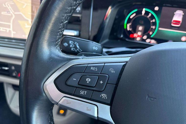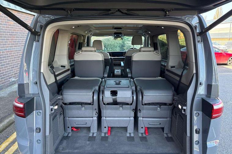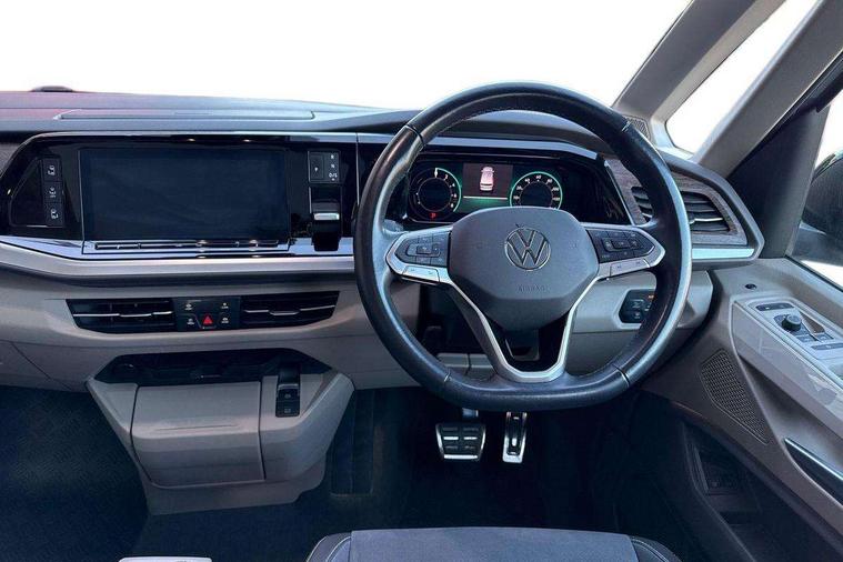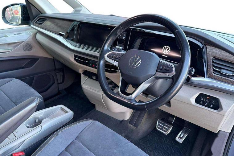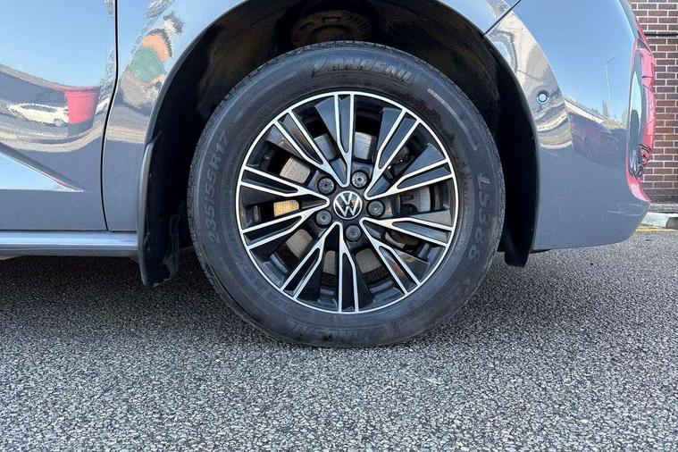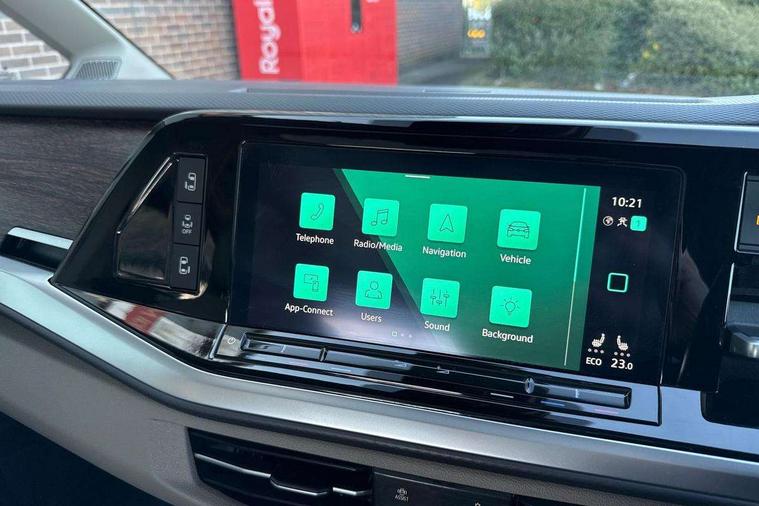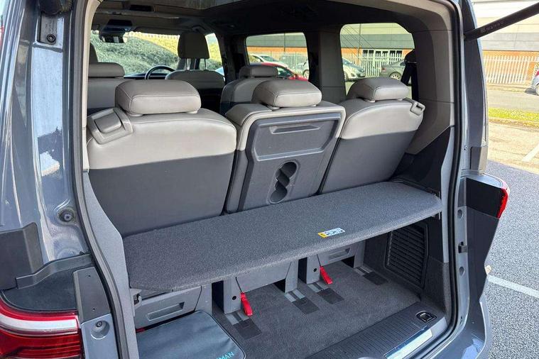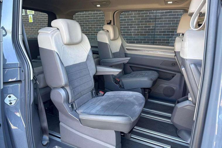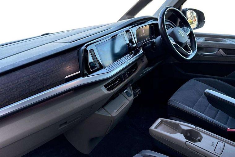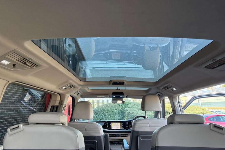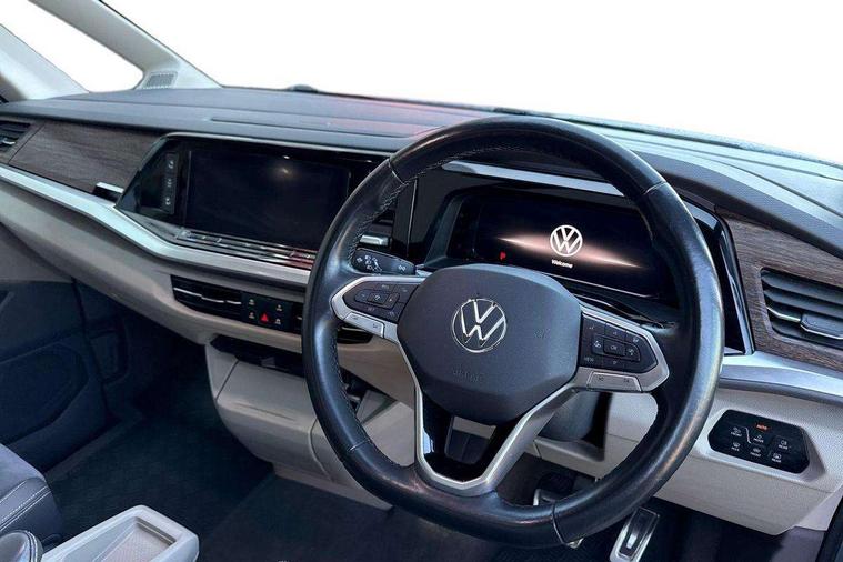Adaptive cruise control with C2X including front assist and city emergency braking system, App-Connect incl. App-Connect Wireless for Apple CarPlay and Android Auto, Digital Cockpit Pro with 10.25" Display, Driver alert system, Dynamic road sign display, eCall emergency system, Electric tailgate with virtual pedal, Electrically-operated tailgate opening and closing function (Easy open), operated via foot movement under rear tailgate, Emergency assist, Lane keeping system Lane Assist, Mobile phone interface, PAS, Semi-automated driving assistance, Socket AC Type 2, Travel assist, Voice control system including Alexa web app, We connect preparation, 1 x 6 metre charging cables - 16amp AC cable for wallbox chargepoints (mode 3), Electronic differential lock, 2 USB-C ports in front and 4 USB-C ports in passenger compartment, Digital radio reception (DAB+), Additional interior noise reduction measures, Advanced high beam control dynamic light assist for LED matrix headlamps, Automatic headlight control with welcome home lights, Body coloured exterior door handles, Break away auto dimming rear view interior mirror, Chrome trim decorative strip mid-way on side and rear, Dynamic headlight range control with dynamic cornering light, Electric sliding rear side door on the left/right with easy open feature, Electrically adjustable, heated and folding door mirrors, Front fog lights, Glossy black painted radiator grille with 2 illuminated chrome trims, Heated rear window with window wiper and washer system, Heated windscreen, High gloss black exterior mirror housing, IQ.Light LED matrix headlamps with LED separate daytime running light, Laminated safety glass windshield, heat and sound insulating, LED 3rd brake lamp, LED rear combination lamps, Rear wiper, Sliding windows in front sliding doors and fixed rear windows, Stainless steel tailgate trim, Surround lighting in door area and tailgate with logo projection in door area, Windshield wiper intermittent control with rain sensor, 1 x 12V sockets on the dash panel, 12V socket in passenger compartment, 3 seat bench in 3rd row, 30 colours ambient interior lighting and tailgate surround lighting, 7 single seats removable/movable, Carpet mats in cab, Climatronic 3 zone air conditioning with 2nd evaporator, auxiliary heater, air conditioned headliner and additional passenger control, Front and rear head restraints, Grab handles on A pillar for access, on driver and front passenger side, Heated steering wheel, Height adjustable seats, Height and longitudinal adjustment steering wheel with gear shift paddles, Illumination lockable glovebox compartment, ISOFIX (including i-size) and top tether in all seats in 2nd and 3rd rows, LED luggage compartment lighting X 2, Load compartment partition to 20kg with bag hooks and luggage net, Luggage compartment lid power latching with unlatching from inside, Multifunction leather steering wheel with tiptronic, Reinforced carpet floor covering in passenger compartment, Removable armrests for front seats with power adjustable lumbar support and folding table for 2nd row passenger seats, Removable armrests in 2nd row passenger seats, Single front passenger seat, Slidable multifunction table/centre console with 3 cup holders, Stainless steel pedals, Storage compartment under the 2nd and 3rd row seat and two waste bins, Sun visors with illuminated vanity mirrors and airbag warning label on front passenger sun visors, 3x3 point rear seat belts, ABS, Automatic post collision braking system, Autonomous emergency braking front assist with pedestrian and cyclist monitoring, Driver and front passenger airbag with front passenger airbag deactivation, Electric childproof lock, Electronic stability control (ESC) and Electromechanical brake booster, ESP, First aid kit with warning triangle and safety vest, Front disc brakes, Hill hold assist, Seat belt warning for the drivers and all passengers seats if unfastened, Side and curtain airbags for driver and front passenger, curtain airbags for outer seats in rear, centre airbag in front, Single tone horn, Traction control, Tyre pressure monitoring system, Anti theft alarm system with interior monitoring in cab, backup horn and towing protection, Central locking system keyless entry with touch two stage unlocking, Start/stop button on centre console, Dark woodgrain optic decorative inserts,
