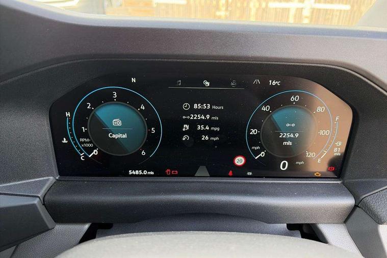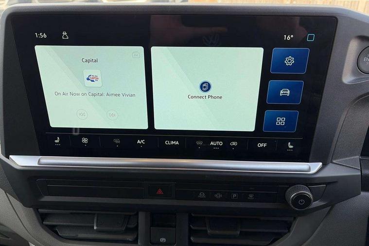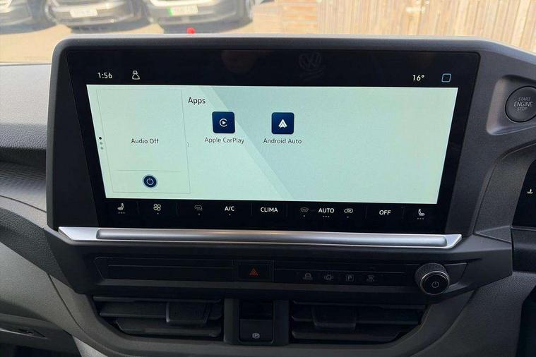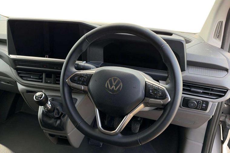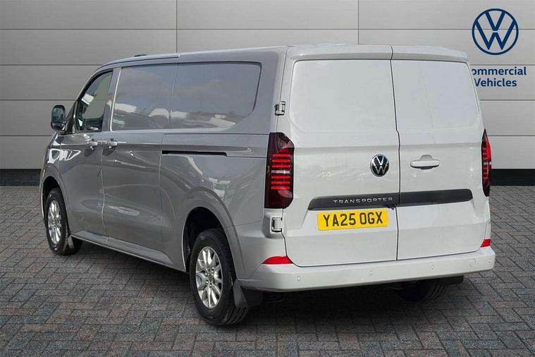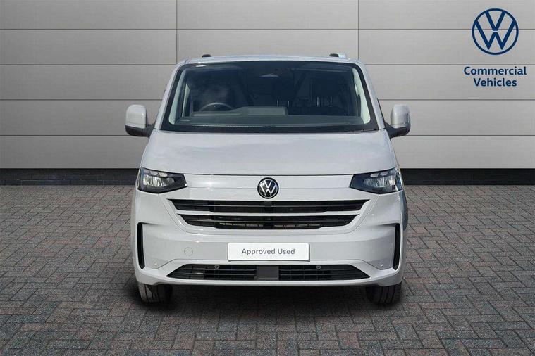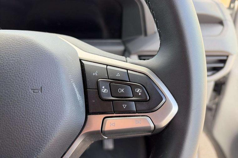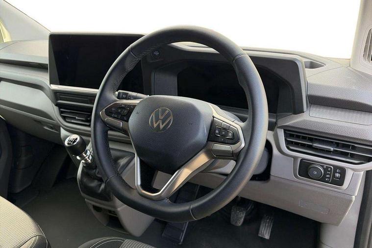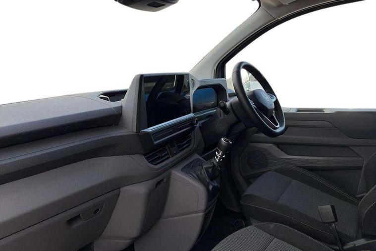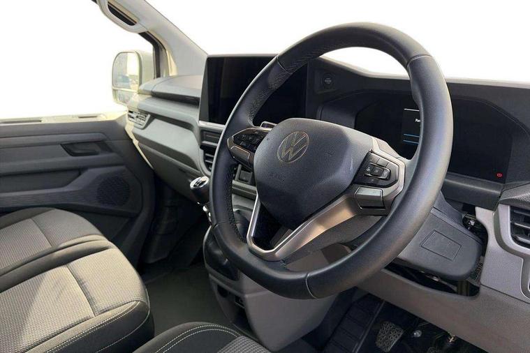 12" digital drivers display, 13" touchscreen infotainment display with wireless app connect and DAB radio, 5G Modem, Adaptive cruise control, Apple CarPlay and Android Auto, Dynamic road sign display, eCall emergency system, Electromechanical speed sensitive power steering, height and longitudinally adjustable steering column, Lane and blind spot assist with exit warning system, Preparation of VW connect and connect plus, Wireless mobile phone charging, Wrong way driver warning, Body colour bumpers, Body coloured door handles, Body coloured door mirrors, Body coloured radiator grille, Electrically heated, adjustable and folding door mirrors, Heat reflecting side window glass, Mud flaps front and rear, Rear Transporter nameplate in black grained decorative trim, Vehicle opening configuration 1x 1st row of seats, 2x all doors, 12V outlet in centre console and 12V outlet on rear right D-pillar, 2x 15-W USB data/charging ports in dashboard and 1x USB-C, 1x USB-A center bottom, 2x LED lights in load compartment, 3x additional super bright LED lights in load compartment, 4 way height and tilt adjustable head restraints, 5 additional USB-C charging ports, Black plastic scuff plate for sliding door in cargo without illumination, Cabin interior lighting, Glasses compartment in driver side roof, Grab handle on A-pillar passenger side, Illuminated lockable glovebox, Lashing rings for reinforced floor covering, Leatherette gear lever, Narrow centre console with cup holder and compartment for mobile phone, Overhead storage compartment, Rubber floor covering in cab, Striped fabric upholstery, Without passenger seats in load compartment, Driver and front passenger airbag with front passenger airbag deactivation, Dual tone horn, Front and curtain airbags for driver and front passenger, Seat belt pretensioner for driver seat, Anti theft alarm system with interior monitoring in cab, backup horn and towing protection, Electronic immobiliser, Lockable wheel bolts, Preparation for alcohol ignition interlock, 5+ Promise, Alternator - 230A, Electromechanical brake booster, Electronic stability control, ABS, ASR with deactivation button, hill start assist and brake assist system,
