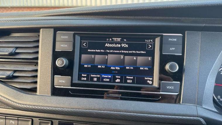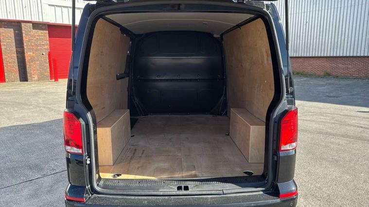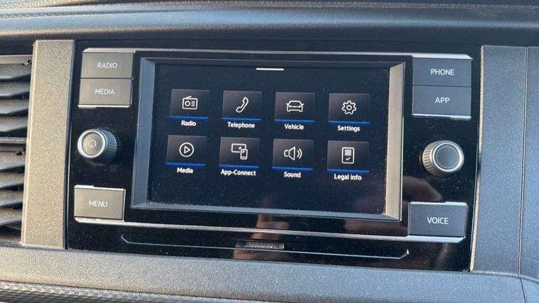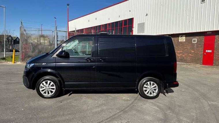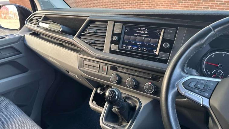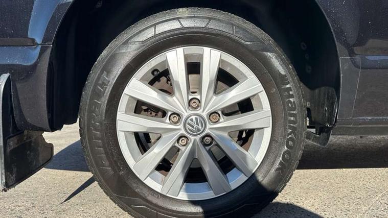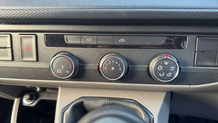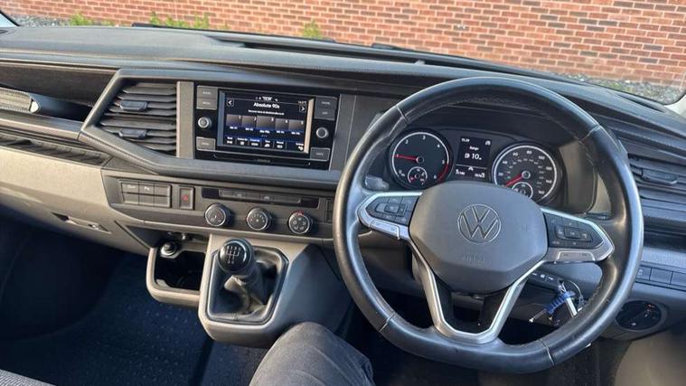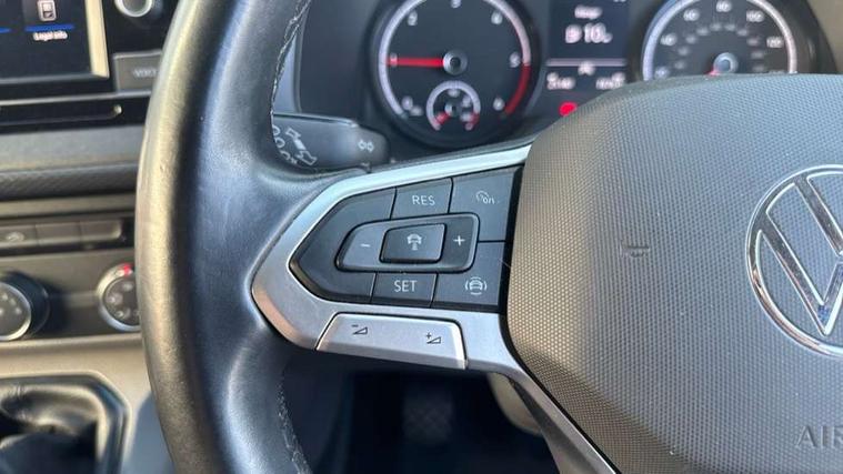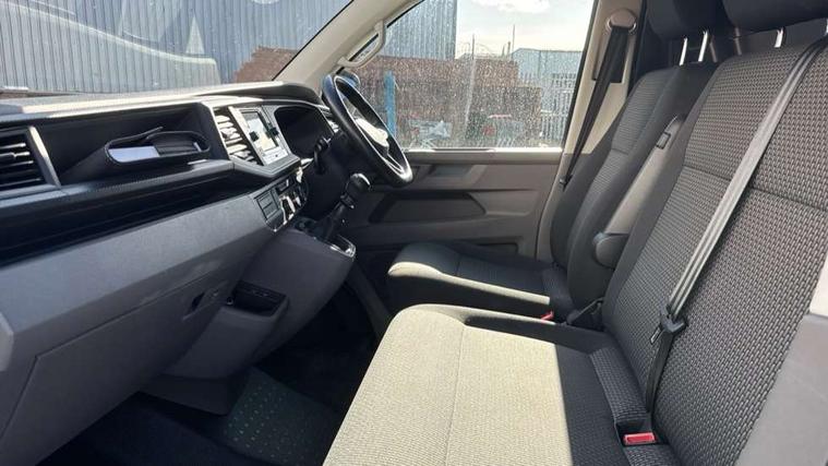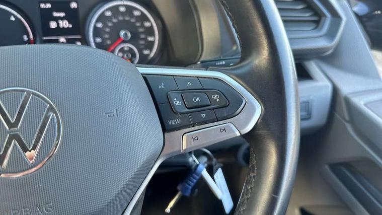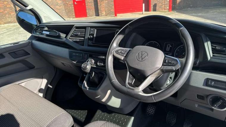 Adaptive cruise control, Cross wind assist, Dimmable illuminated instruments, Driver alert with Multi-function display plus, eCall emergency system, Forward collision warning front assist with autonomous emergency braking, Mobile phone interface, Multi function display plus with black and white display, 2 USB interfaces type C in dashboard, 4 speakers with 2 tweeters and 2 woofers, Composition colour radio with 6.5" touchscreen, Digital radio reception (DAB+), Volkswagen app connect, Automatic headlight control, leaving home and manual coming home feature, Closing rear wing door with unlatching from the inside, Front fog lamps with cornering light, Heat insulating glass (green) in cab and passenger/load compartment, Heated front windscreen, Left convex exterior mirror, Power folding adjustable door mirrors with separately heated, Radiator grille with 2 chrome trims, Rear wing doors without window apertures, Right convex exterior mirror, Transporter nameplate on the rear fender, Windshield wiper intermittent control with rain sensor for windshield wipers, 3 spoke leather wrapped multi function steering wheel, Auto dimming breakaway interior rear view mirror, Comfort headliner in cab, hardboard roof trim in passenger and load compartment, Dust/pollen filter, Front and rear left without window closed side panel in load compartment, Front seats on the right in 1st row of seat, Glove compartment with illumination, Heavy duty tool kit and jack, High partition, Interior plastic loading edge protection, LED Interior lighting in load and passenger compartment, Manual adjustable lumbar support for right single seat in 1st row seats, Refrigerant R134a, Standard lower part dashboard in palladium, Storage compartments on cab seats and reading light, Without right side window apertures in passenger and load compartment, Comfort pack - Transporter, Exterior pack without fog light- Transporter, Non smoker pack - Transporter, 3 point height adjustable seat belts on outer seats cab with electric pretensioners, Driver and front passenger airbag with front passenger airbag deactivation, Warning buzzer and light for driver and front passenger seat belt not fastened, Without child safety lock in passenger compartment, Anti theft alarm system with interior monitoring in cab, backup horn and towing protection, Lockable wheel bolts, 16" chassis with 16" brake system, Diesel particulate filter, Electronic stability control, ABS, ASR with deactivation button, hill start assist and brake assist system, Start/stop system with regenerative breaking, 16" Clayton alloy wheels,