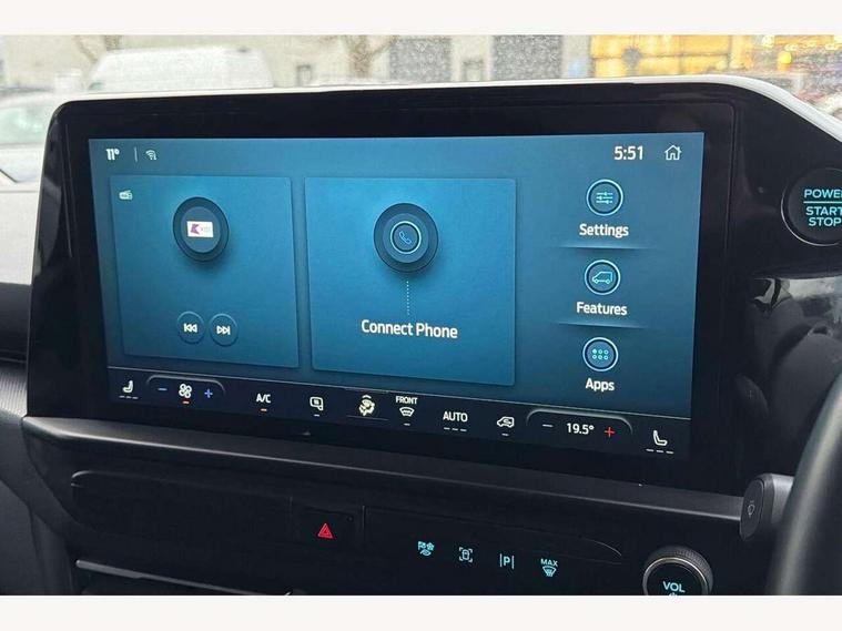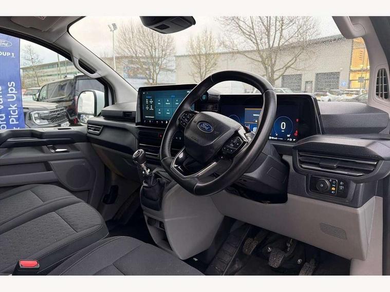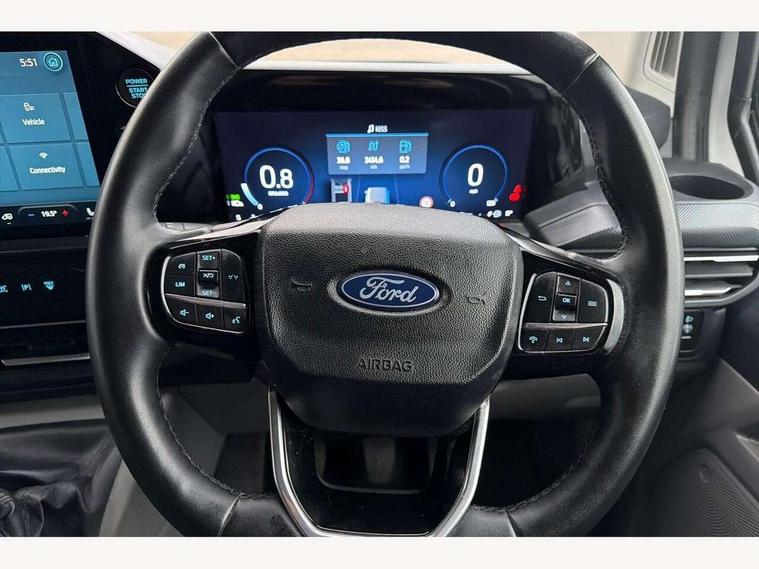 13" Touchscreen, 5G embedded modem, AECS NO SMS/Roll Detect 2G, PAS, Tyre pressure monitor, SYNC 4 - Android Auto/Apple Car Play, advance speech recognition, over the air update capability, Automatic headlights, Automatic windscreen wipers, Body coloured door mirrors, Body coloured front bumper, Body coloured rear bumpers, Daytime running lights, Electric front windows with one touch facility for driver and front passenger, Front mud flaps, Front splash guards, Low roof line, Quickclear front window defroster, Rear cargo hinged door, Rear splash guards, Trailer sway control, 6 Load compartment tie down loops, Courtesy light, Interior grab handle with driver's sunglasses holder, LED lights, Locking glove box lid, Sensico gearshift knob, 2 remote keys, Alcohol Interlock wiring preparation pack, Keyless entry and start, Locking wheel lug nut, Thatcham category 1 alarm, 20L AdBlue tank, ABS, Diesel particulate filter, ESP, Hill launch assist, Traction control, Full wheelcovers,