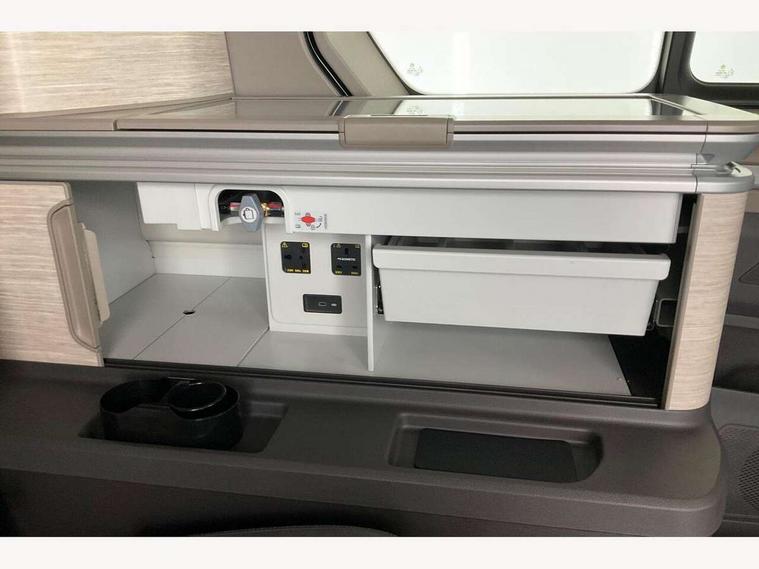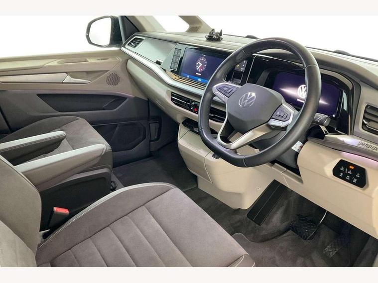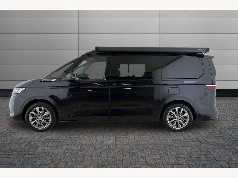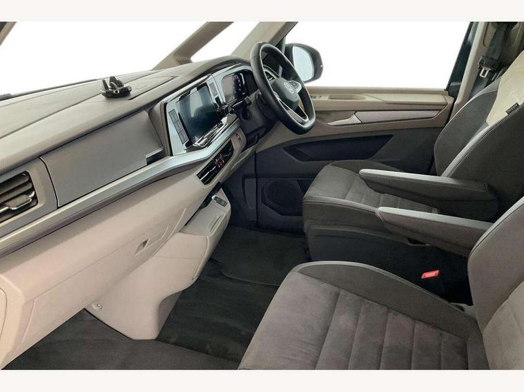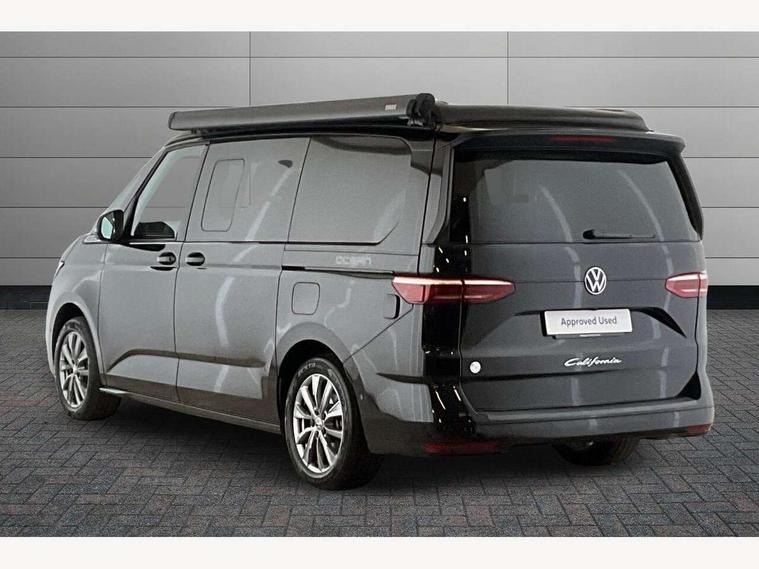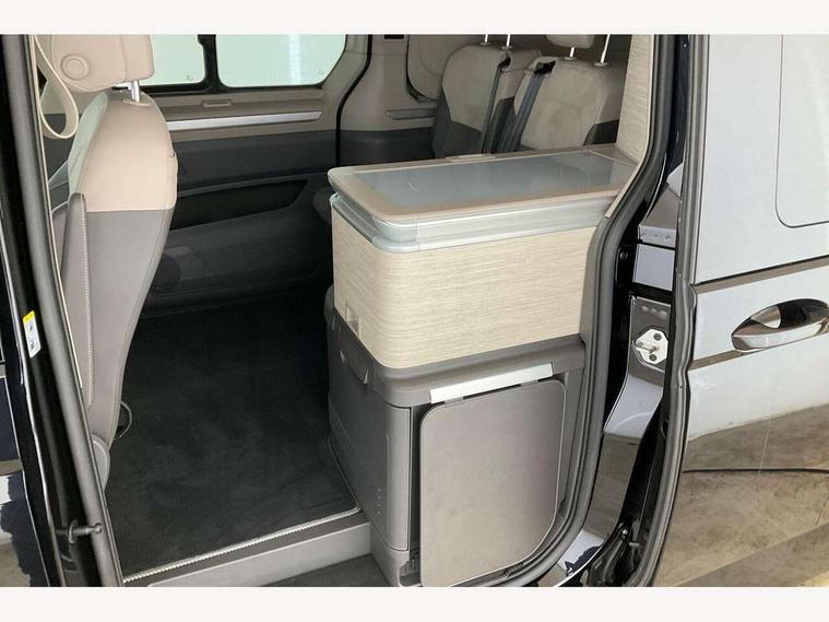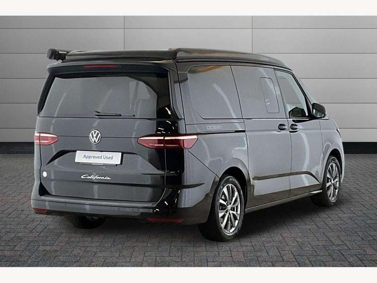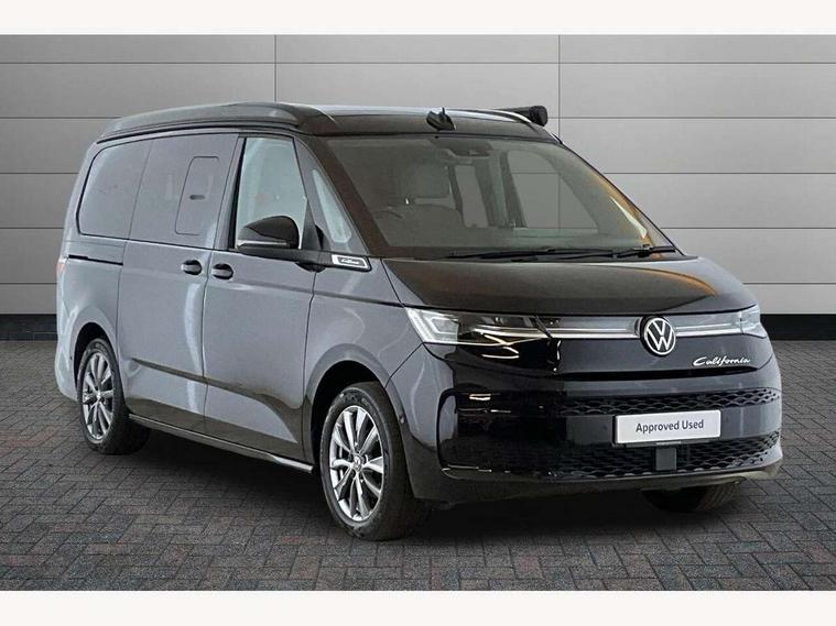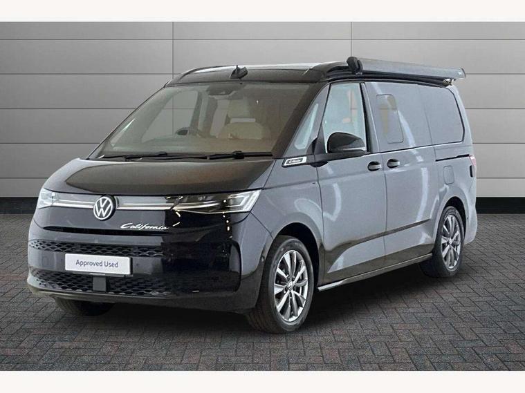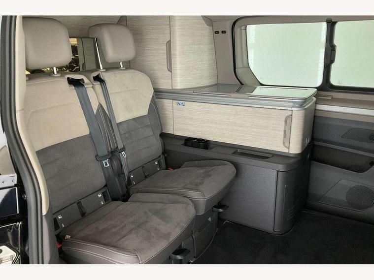 AppConnect including wireless Apple CarPlay, California on tour app, Digital cockpit pro, Discover pro navigation with 10" screen, Driving profile selection, eCall emergency system, Function control unit, IDA voice assistant and voice enhancer, Lane keeping system Lane Assist, Mobile phone interface, Multifunction camera, Online service, with OCU, with head unit coding, without WFS federation, PAS, Preparation for online services, Tailgate with window aperture and with power latching, Traffic sign recognition, Turn assist with evasive assistance, Standard suspension and shock absorption, 2 USB-C ports at the front, 4 USB-C charging sockets in the passenger compartment, 8 passive speakers, Digital radio reception (DAB+), 65% light absorbing privacy glass, A-pillar, D pillar and tailgate, All weather light, Ambient lighting in door area, Dynamic Light Assist for LED matrix headlights, Electro hydraulic elevating roof, with three windows including one front passengers panorama opening, canvas in Basalt Grey, Four speed control for windscreen wipers, Front window in laminated safety glass with heat and noise-insulating, Headlight levelling, dynamic, with dynamic cornering lights, Heated windscreen, High gloss black door mirrors, Illuminated molding between headlamps, Nameplate set California, Rear boot, Red LED tail lights, Sliding window in front with fly screen and fixed window in rear in load passenger at left, Tailgate with electric closing aid, Windscreen wiper intermittent control, 2 single seats with integrated seatbelt and sleeping mat, 230V interver with socket on driver seat, 30 colours ambient lighting on tailgate, Additional interior noise attenuation plus, Alcohol interlock, Armrest on front swivel seats in both sides with electric lumbar support, Camper parking heater for windshield defrosting with radio remote control, Darkening roller blinds and thermo mats, Drawers under the seats in the driver and passenger compartment + 2 waste bins, Front and rear headrests, Heated steering wheel, Kitchen with outdoor folding table for cooking and roof storage box in décor 2, Lockable glove compartment with lighting, Multifunction leather steering wheel with paddle shifters, Plastic floor covering in passenger/load compartment, Seat heating for both seats in the driver's cab, left and right separately adjustable, Single front passenger seat, Sleeper seats, Surround lighting in door area, Swivel seat on left with height adjustable including drawer, Swivel seat on right with height adjustable including drawer, Advanced assistance pack - California, Chrome package - California, Top package - California, 3x3 point automatic seatbelts at the rear outside with ECE label, with/without belt tensioner, Advanced driver attention, Autonomous emergency braking front assist with pedestrian and cyclist monitoring, Driver and front passenger airbags with front passenger airbag deactivation button, Drowsiness detection, First aid kit with warning triangle and safety vest, Front disc brakes, Height adjustable three point automatic seatbelts at front with belt and end fitting tensioners, Side and curtain airbags for driver and front passenger, curtain airbags for outer seats in rear, centre airbag in front, Swerve support and oncoming vehicle braking when turning, Tyre pressure loss indicator, Anti theft alarm system with interior monitoring in cab, backup horn and towing protection, Central locking system with keyless locking and starting system keyless advanced with safelock, Lockable wheel bolts, Dark silver brushed decorative inlays, Tool kit, Trims for alloy wheels, Tyre mobility kit,