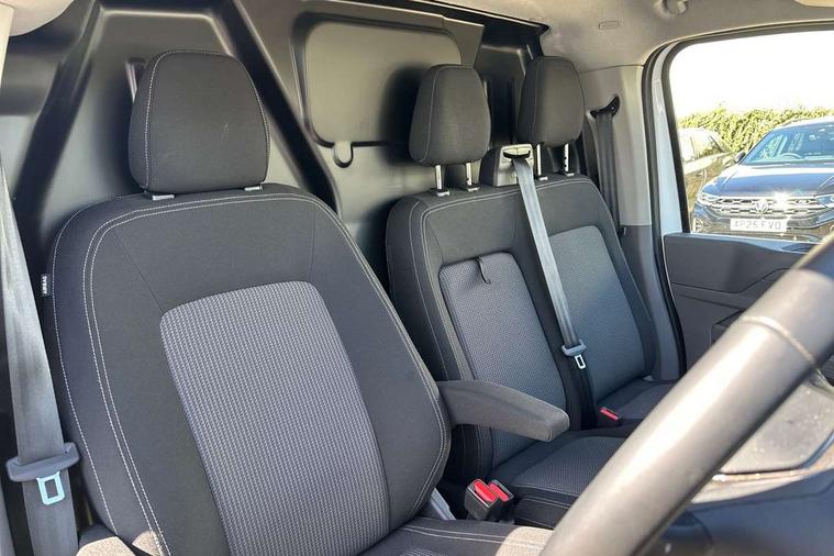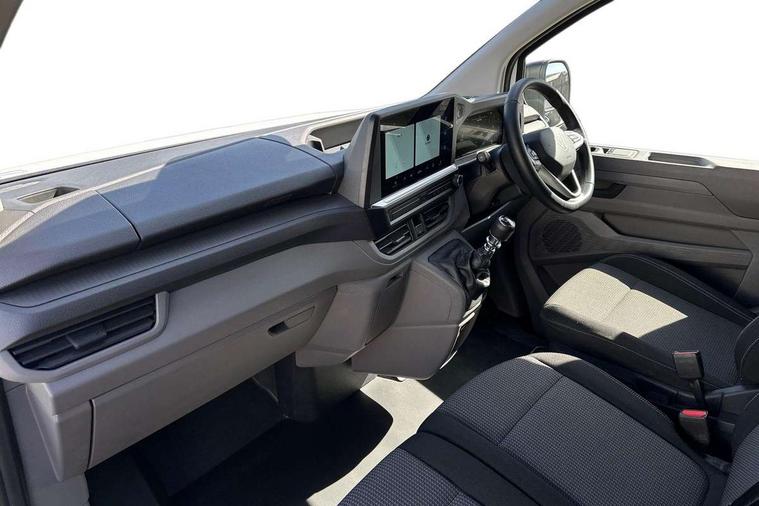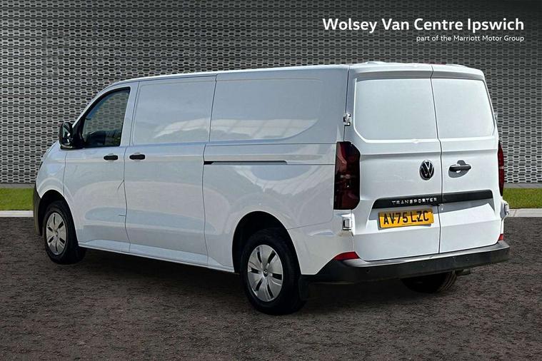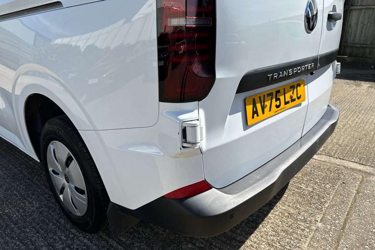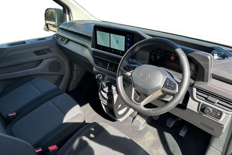 12" digital drivers display, 13" touchscreen infotainment display with wireless app connect and DAB radio, 5G Modem, Apple CarPlay and Android Auto, Cruise control, Dynamic road sign display, eCall emergency system, Electromechanical speed sensitive power steering, height and longitudinally adjustable steering column, Lane assist, Preparation of VW connect and connect plus, Wrong way driver warning, 4 speakers - 2x dashboard, 2x cab doors, Body coloured door handles, Heat reflecting side window glass, Mud flaps front and rear, Rear Transporter nameplate in black grained decorative trim, Vehicle opening configuration 1x 1st row of seats, 2x all doors, 2x 15-W USB data/charging ports in dashboard and 1x USB-C, 1x USB-A center bottom, 2x LED lights in load compartment, 3 spoke leather wrapped multi function steering wheel, 4 way height and tilt adjustable head restraints, Black plastic scuff plate for sliding door in cargo without illumination, Cabin interior lighting, Lashing rings for reinforced floor covering, Leatherette gear lever, Narrow centre console with cup holder and compartment for mobile phone, Overhead storage compartment, Roof grab handle on front passenger side, Rubber floor covering in cab, Striped fabric upholstery, Without passenger seats in load compartment, Driver and front passenger airbag with front passenger airbag deactivation, Dual tone horn, Front and curtain airbags for driver and front passenger, Seat belt pretensioner for driver seat, Anti theft alarm system with interior monitoring in cab, backup horn and towing protection, Electronic immobiliser, Preparation for alcohol ignition interlock, 5+ Promise, Alternator - 230A, Electronic stability control, ABS, ASR with deactivation button, hill start assist and brake assist system,