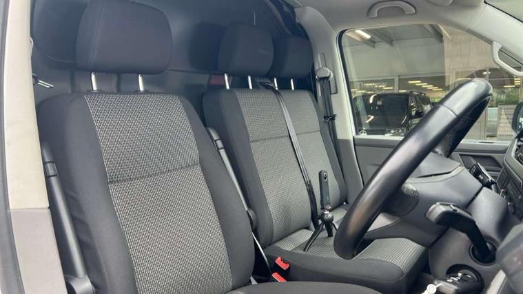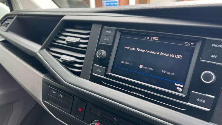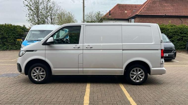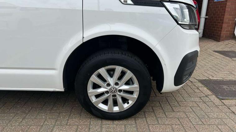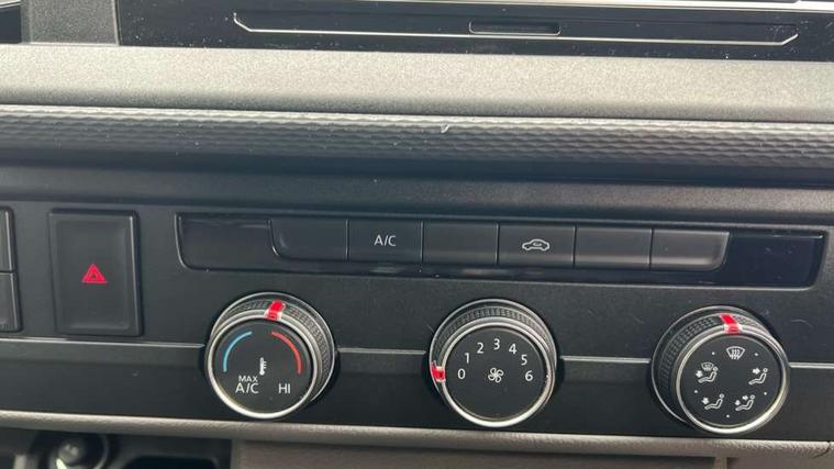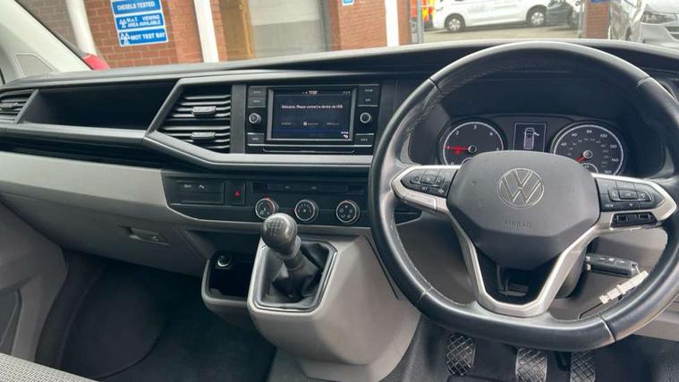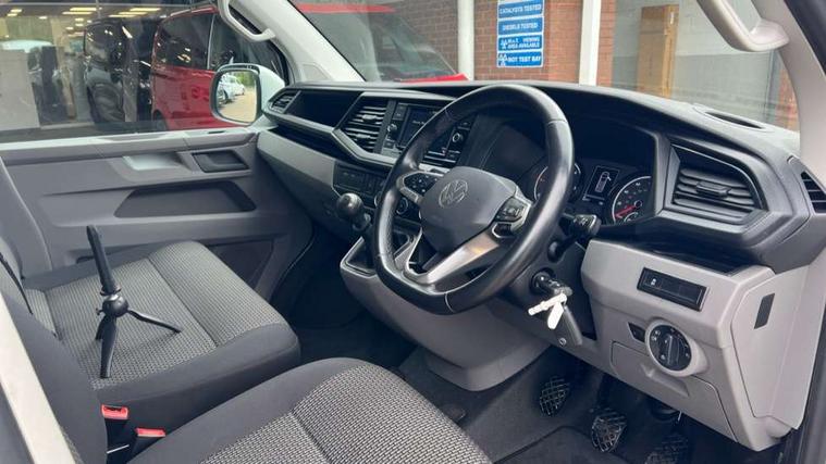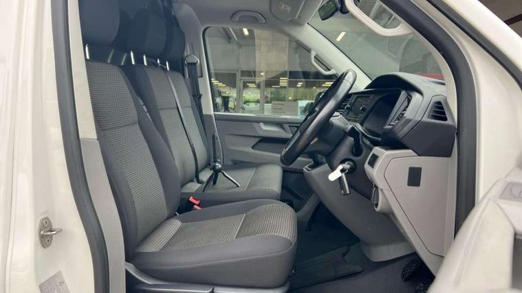 Adaptive cruise control, Cross wind assist, Dimmable illuminated instruments, Driver alert with Multi-function display plus, eCall emergency system, Forward collision warning front assist with autonomous emergency braking, Mobile phone interface, Multi function display plus with black and white display, 2 USB interfaces type C in dashboard, 4 speakers with 2 tweeters and 2 woofers, Composition colour radio with 6.5" touchscreen, Digital radio reception (DAB+), Volkswagen app connect, Automatic headlight control, leaving home and manual coming home feature, Closing rear wing door with unlatching from the inside, Front fog lamps with cornering light, Heat insulating glass (green) in cab and passenger/load compartment, Heated front windscreen, Left convex exterior mirror, Power folding adjustable door mirrors with separately heated, Radiator grille with 2 chrome trims, Rear wing doors without window apertures, Right convex exterior mirror, Transporter nameplate on the rear fender, Windshield wiper intermittent control with rain sensor for windshield wipers, 3 spoke leather wrapped multi function steering wheel, Auto dimming breakaway interior rear view mirror, Comfort headliner in cab, hardboard roof trim in passenger and load compartment, Dust/pollen filter, Front and rear left without window closed side panel in load compartment, Front seats on the right in 1st row of seat, Glove compartment with illumination, Heavy duty tool kit and jack, High partition, Interior plastic loading edge protection, LED Interior lighting in load and passenger compartment, Manual adjustable lumbar support for right single seat in 1st row seats, Refrigerant R134a, Standard lower part dashboard in palladium, Storage compartments on cab seats and reading light, Without right side window apertures in passenger and load compartment, Comfort pack - Transporter, Exterior pack without fog light- Transporter, Non smoker pack - Transporter, 3 point height adjustable seat belts on outer seats cab with electric pretensioners, Driver and front passenger airbag with front passenger airbag deactivation, Warning buzzer and light for driver and front passenger seat belt not fastened, Without child safety lock in passenger compartment, Anti theft alarm system with interior monitoring in cab, backup horn and towing protection, Lockable wheel bolts, 16" chassis with 16" brake system, Diesel particulate filter, Electronic stability control, ABS, ASR with deactivation button, hill start assist and brake assist system, Start/stop system with regenerative breaking, 16" Clayton alloy wheels,