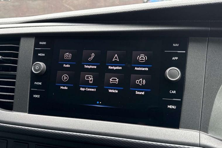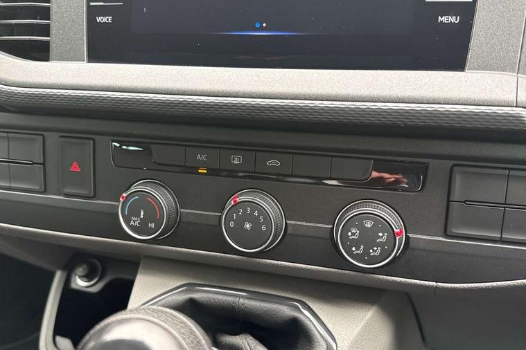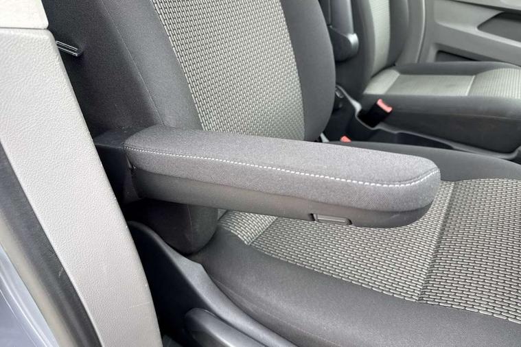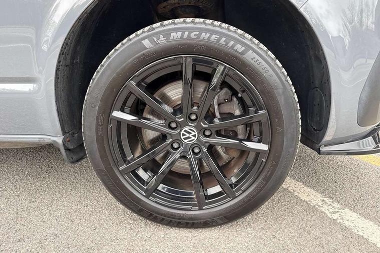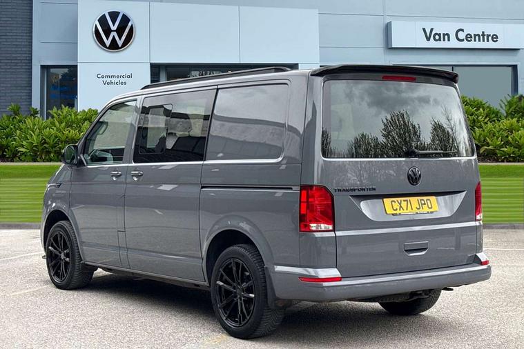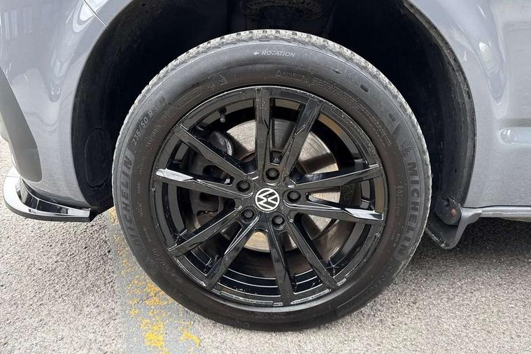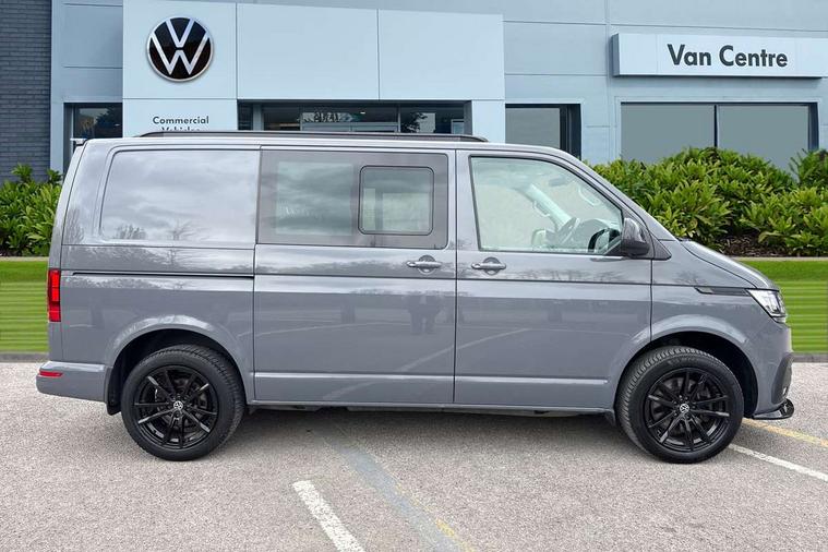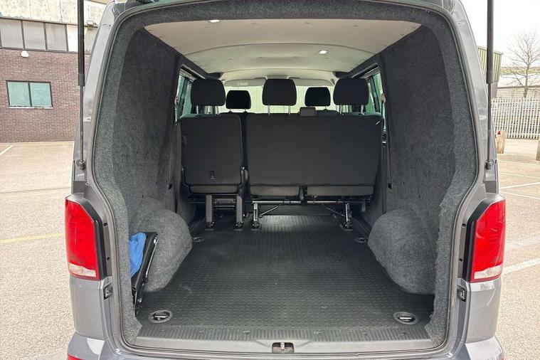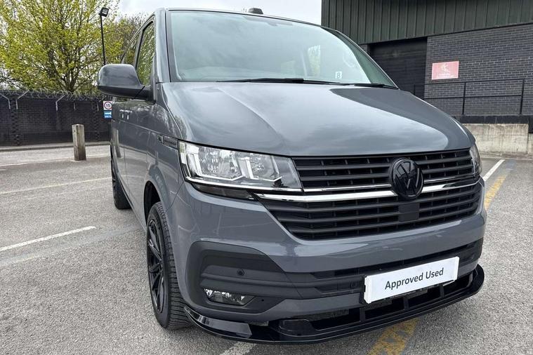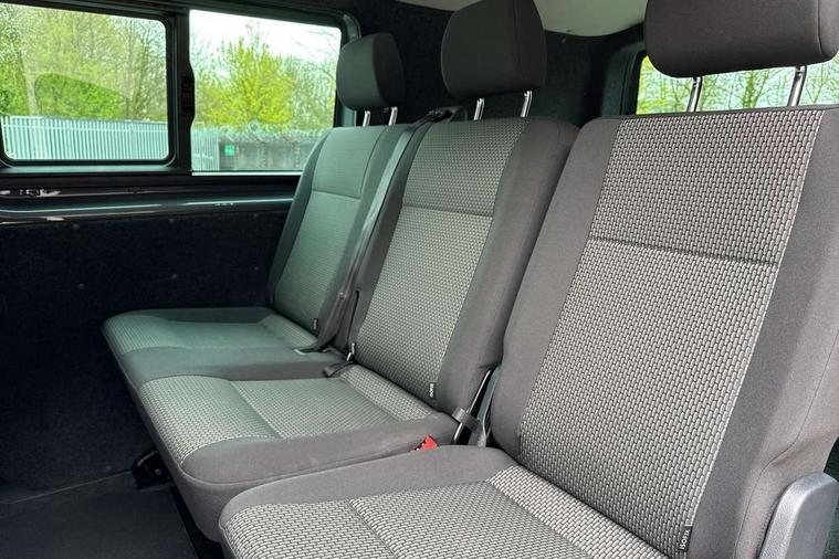 Adaptive cruise control, Child seat anchors ISOFIX and top tether in 2nd row of seats, Cross wind assist, Dimmable illuminated instruments, Driver alert with black and white multi function display plus, eCall emergency system, Electromechanical speed sensitive power steering, height and longitudinally adjustable steering column, Forward collision warning front assist with autonomous emergency braking, Headlight range control, Mobile phone interface, Without voice control, 2 USB interfaces type C in dashboard, 4 speakers with 2 tweeters and 2 woofers, Composition colour radio with 6.5" touchscreen, Digital radio reception (DAB+), Volkswagen app connect, Automatic headlight control, leaving home and manual coming home feature, Front fog lamps with cornering light, Green heat insulating glass, Heated front windscreen, Illuminated steps in passenger/load compartment, Left convex exterior mirror, Power adjustable and heated exterior mirrors, Power folding door mirrors, Privacy glass in passenger compartment, Radiator grille with 2 chrome trims, Rear window with heated insulating glass, heated rear window wiper and washer system, Right convex exterior mirror, Tailgate closing with unlatching from the inside, Tailgate with window aperture, Transporter nameplate on the rear fender, Windshield wiper intermittent control with rain sensor for windshield wipers, Without adhesive film, 3 spoke leather wrapped multi function steering wheel, Additional sound deadening measures in cab and passenger compartment, Auto dimming breakaway interior rear view mirror, Comfort headliner in cab, hardboard roof trim in passenger and load compartment, Dust/pollen filter, Folding grab handles and storage compartments on cab seats, reading light, Front seats on the right in 1st row of seat, Glove compartment with illumination, Heavy duty tool kit and jack, Interior plastic loading edge protection, Lashing rings for load restraint system, LED Interior lighting in load and passenger compartment, Medium height for vehicles with window aperture hardboard side trim panels in passenger/load compartment, Refrigerant R134a, Rubber floor covering in cab, Rubber floor covering in passenger/load compartment with loading edge protection in rear, Standard lower part dashboard in palladium, Without partition, Without seats in 3rd row of seats, Exterior pack without fog light- Transporter, Non smoker pack - Transporter, 3 point height adjustable seat belts on outer seats cab with electric pretensioners, Driver and front passenger airbag with front passenger airbag deactivation, Power operated child safety lock, Single tone horn, Warning buzzer and light for driver seat belt not fastened, Anti theft alarm system with interior monitoring in cab, backup horn and towing protection, Lockable wheel bolts, 16" chassis with 16" brake system, 70 L volume fuel tank, Additional 12V socket, Diesel particulate filter, Electronic stability control, ABS, ASR with deactivation button, hill start assist and brake assist system, Speed limiter, Start/stop system with regenerative breaking, 17" Devonport silver alloy wheels, Wheel trims,