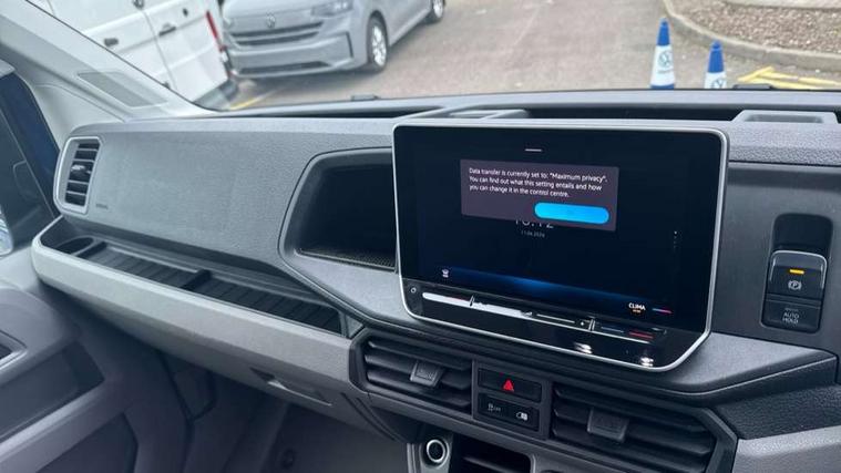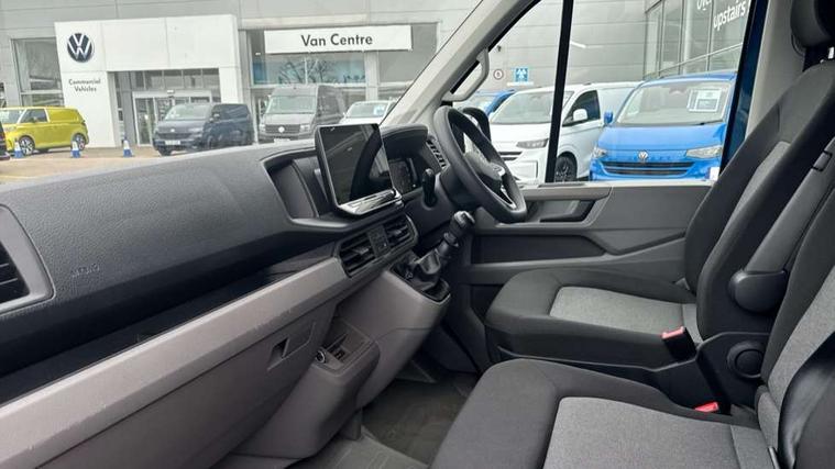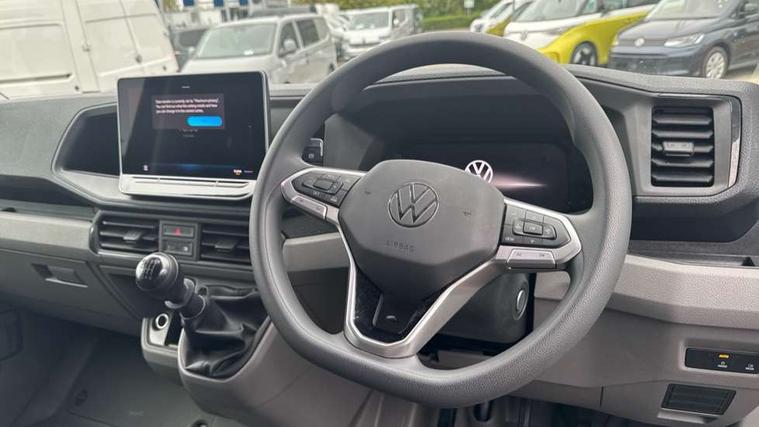 Bluetooth, Digital clock, Driver alert system, E-call + We connect basic preparation, Instrument cluster, Lights on warning buzzer, Locking fuel cap, Multi-function Display Plus, Rev counter, Service indicator, Speedometer, Voice control system, Composition media with 6.5" with we connect plus prep, 4 speaker, multifun display plus, USB, mob interface, app con, "We connect function", DAB Radio, Auto low beam mode, Leaving home function and manual coming home function, Cab doors, Convex and wide angle mirror, Driver seatbelt warning light, Electric windows, Electrically heated and adjustable door mirrors, Half painted front bumper, Heat insulating glass, Indicators in front door mirrors, One towing eye in front, Rear wing doors with 270 degree hinges, Special identification plate, Unpainted radiator grille, Air recirculation system, Ashtray, Centre console storage tray, CFCU preparation, Charcoal filter, Climatic air conditioning, Document holder on centre console, Drinks holders, Electromechanical Servotronic steering, Electronically controlled heating system, Fully adjustable suspension type driver seat, Grab handles on rear entry pillars, Height adjustable head restraints, Height and reach adjustable steering wheel, Illuminated glove compartment with lockable lid, Interior light, including 2 reading lights, Interior light, switchable by door, Jack and tool kit, Preparation for interface for external use with terminal block, Storage compartments in doors and in step, right, Storage tray on dashboard, Two 12V outlets in the cab (in the dashboard), Without rear side trim panel passenger load compartment, Non-smokers pack - Crafter, 3 point inertia reel belt on all seats, Automatic hazard light with emergency braking, Crosswind assist, Driver and front passenger airbag with front passenger airbag deactivation, Height adjustable seatbelts for outer cab seats, 1 rigid key, Anti-theft alarm with interior monitor, back up horn and tow away protect, overhead storage with two 1-DIN, reading light, SAFELOCK with 2 remote keys, Engine immobiliser, ABS, Automatic post collision braking system, EBA, EBD, EDL, ESP, Front disc brakes, HBA, Hill start assist, Parking brake - hill hold control, Start and stop system with regenerative braking, TCS, Hub cap covers,
