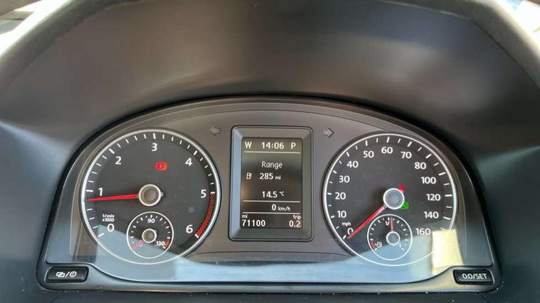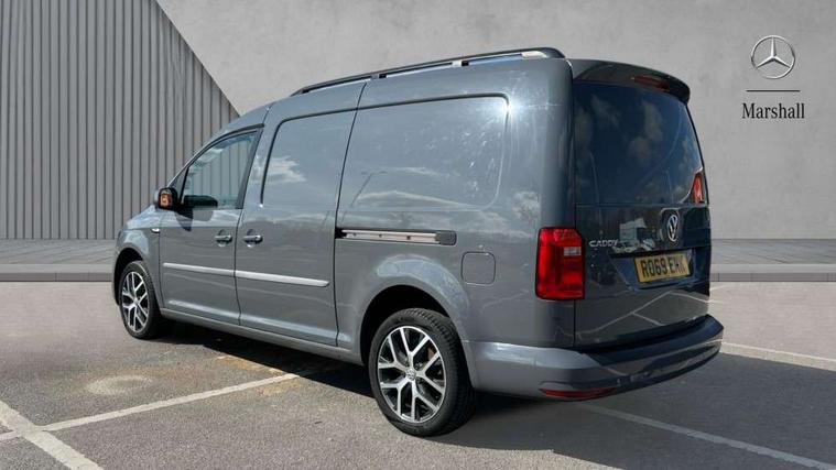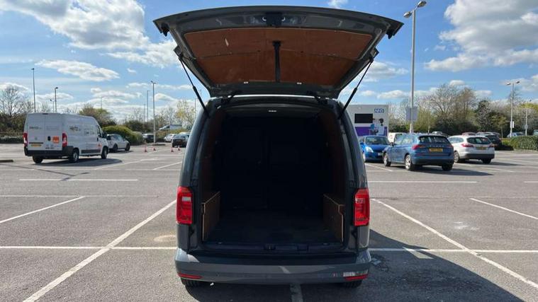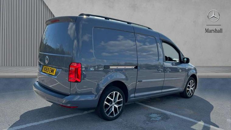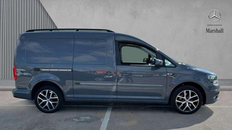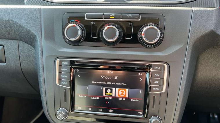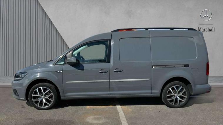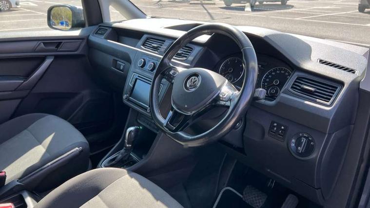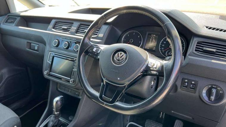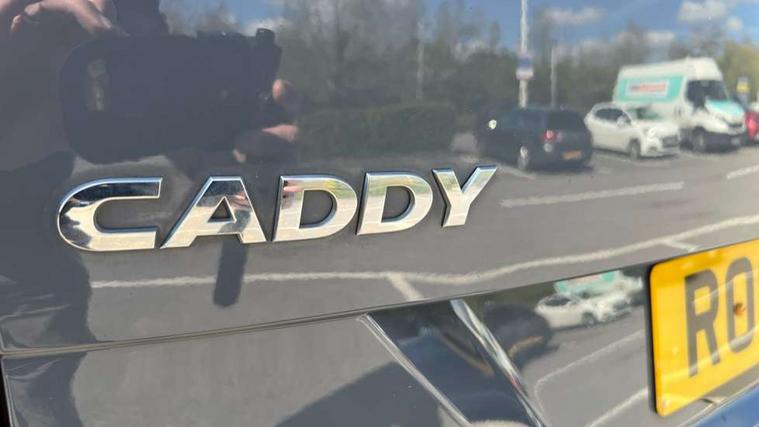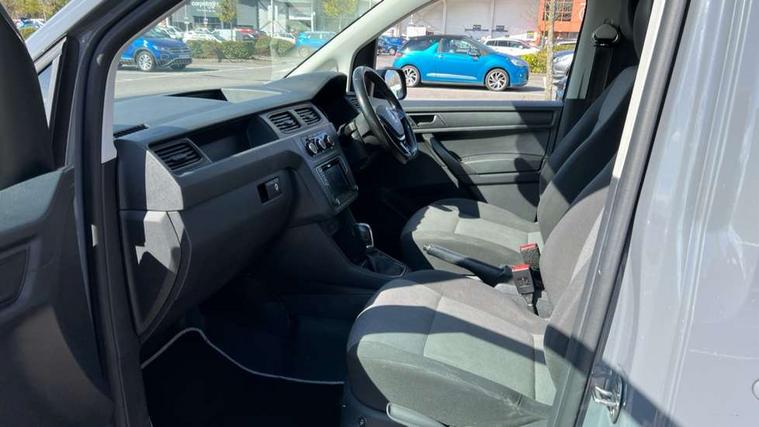 Digital clock, Dimmable dashboard ilumination, Discover media navigation system includes guide + inform with SD card maps, Driver alert system includes drowsiness detection, Headlight range control, Multi-function Display Plus, Seatbelt warning indicator, Service indicator, Servotronic speed related power assisted steering, Stop/start button, Composition colour DAB+ radio including AUX-IN, SD card slot, USB port, MP3 compatible CD player, two speakers and Bluetooth, Anti dazzle rear view mirror, Automatic hazard light activation under emergency braking, BlueMotion technology exterior badge, Body coloured bumpers, door mirrors and handles, Electric front windows, Heated windscreen, Roof rail preparation, Side sliding door driver side with additional standard passenger side sliding door, Windscreen wiper with variable intermittent delay and wash-wipe system, 2 LED spot lights in load compartment, 8 way adjustable driver seat, Eighty lashing points for securing load, Four drinks holders and storage compartment in centre console, Hardboard roof trim and painted half height side panels, Height adjustable head restraints, Illuminated lockable glovebox, Interior light in headlining, Jack and tool kit, Multifunction leather steering wheel, gearknob and gaiter, Passenger seat with reach and rake adjustment, Reach and rake adjustable steering column, Rubber floor covering, Storage compartments under driver and front passenger seats, Twin sun visors with vanity mirrors, Two door activated interior lights, Lights and vision pack - Caddy, Drivers side airbags and passenger curtain airbags, Electric seatbelt tensioners, Anti-theft alarm Thatcham cat 1, interior (cab only) and tow away protection, Locking wheel bolts, Remote central locking with deadlocks, interior locking, 12V accessory socket, Anti locking braking system (ABS), Automatic post collision braking system, Brake energy regeneration, Electronic brake force distribution (EBD), Electronic differential lock (EDL), Electronic stabilisation programme (ESP), Emergency brake assist, Engine drag torque control (MSR), Hill hold assist, Traction control system (TCS), Black wheel centre caps, Low rolling resistance tyres,