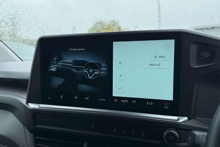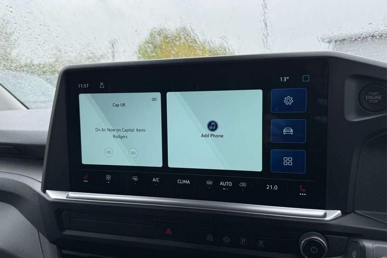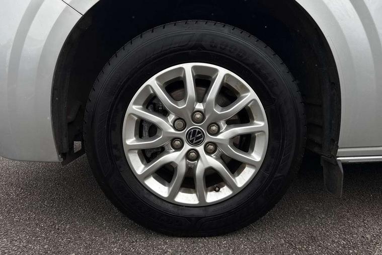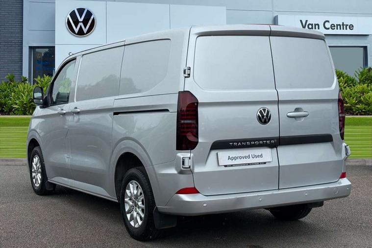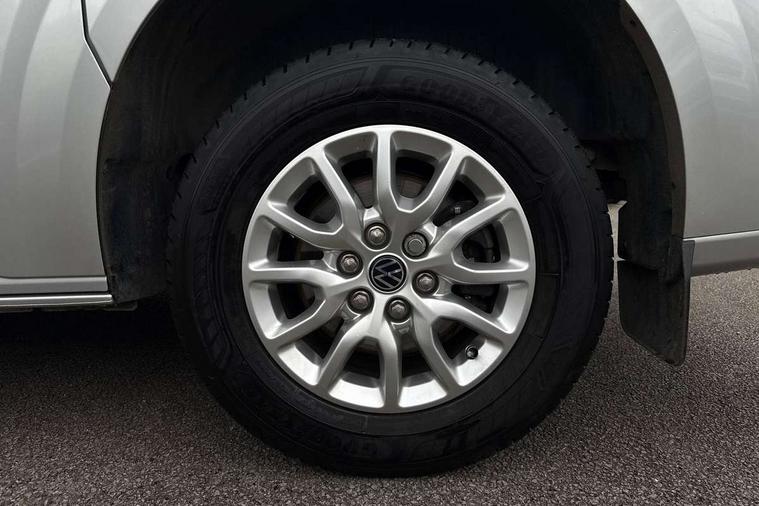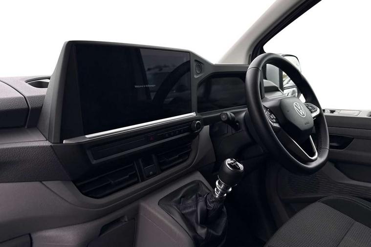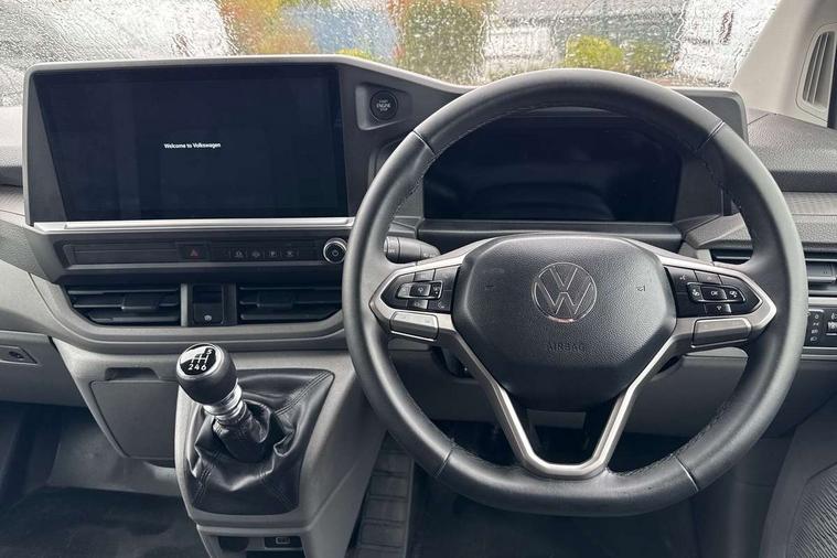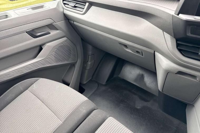 12" digital drivers display, 13" touchscreen infotainment display with wireless app connect and DAB radio, 5G Modem, Adaptive cruise control, Apple CarPlay and Android Auto, Dynamic road sign display, eCall emergency system, Electromechanical speed sensitive power steering, height and longitudinally adjustable steering column, Lane and blind spot assist with exit warning system, Preparation of VW connect and connect plus, Wireless mobile phone charging, Wrong way driver warning, Body colour bumpers, Body coloured door handles, Body coloured door mirrors, Body coloured radiator grille, Electrically heated, adjustable and folding door mirrors, Heat reflecting side window glass, Mud flaps front and rear, Rear Transporter nameplate in black grained decorative trim, Vehicle opening configuration 1x 1st row of seats, 2x all doors, 12V outlet in centre console and 12V outlet on rear right D-pillar, 2x 15-W USB data/charging ports in dashboard and 1x USB-C, 1x USB-A center bottom, 2x LED lights in load compartment, 3x additional super bright LED lights in load compartment, 4 way height and tilt adjustable head restraints, 5 additional USB-C charging ports, Black plastic scuff plate for sliding door in cargo without illumination, Cabin interior lighting, Glasses compartment in driver side roof, Grab handle on A-pillar passenger side, Illuminated lockable glovebox, Lashing rings for reinforced floor covering, Leatherette gear lever, Narrow centre console with cup holder and compartment for mobile phone, Overhead storage compartment, Rubber floor covering in cab, Striped fabric upholstery, Without passenger seats in load compartment, Driver and front passenger airbag with front passenger airbag deactivation, Dual tone horn, Front and curtain airbags for driver and front passenger, Seat belt pretensioner for driver seat, Anti theft alarm system with interior monitoring in cab, backup horn and towing protection, Electronic immobiliser, Lockable wheel bolts, Preparation for alcohol ignition interlock, 5+ Promise, Alternator - 230A, Electromechanical brake booster, Electronic stability control, ABS, ASR with deactivation button, hill start assist and brake assist system,