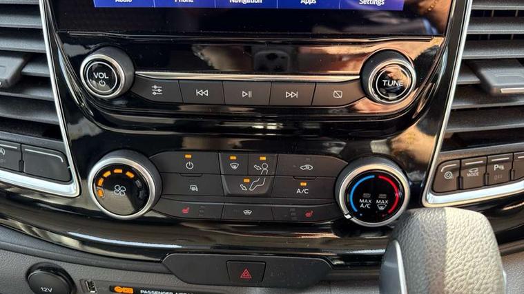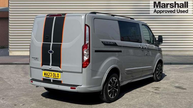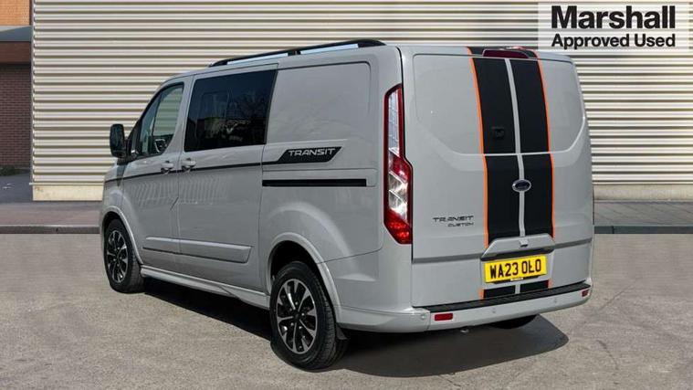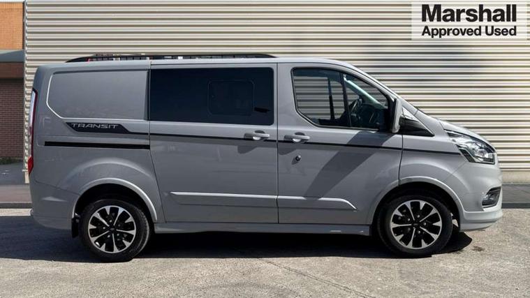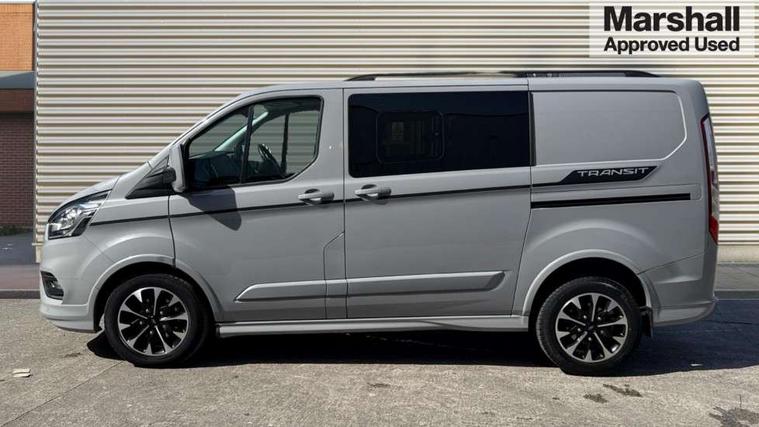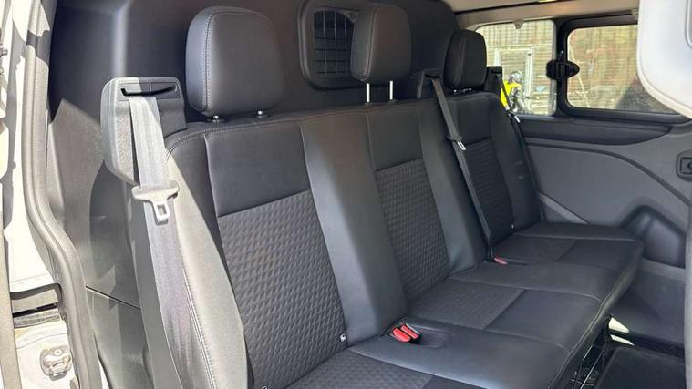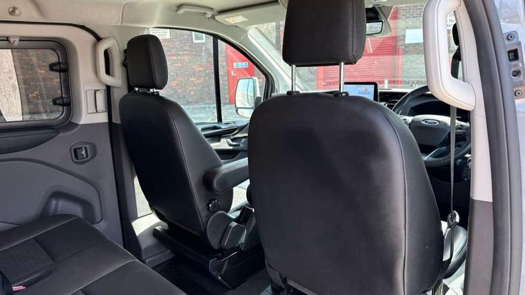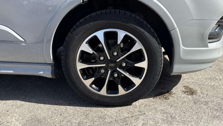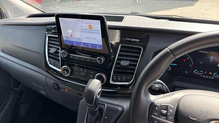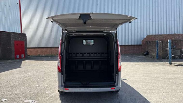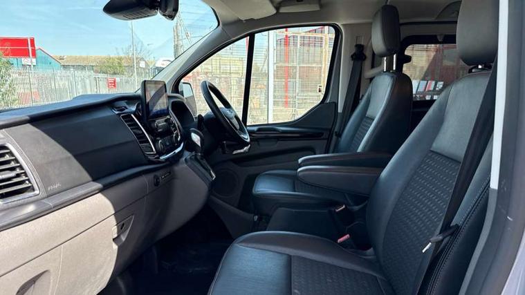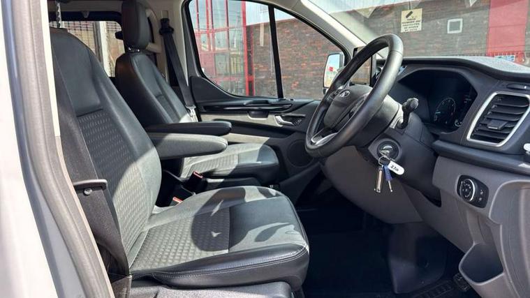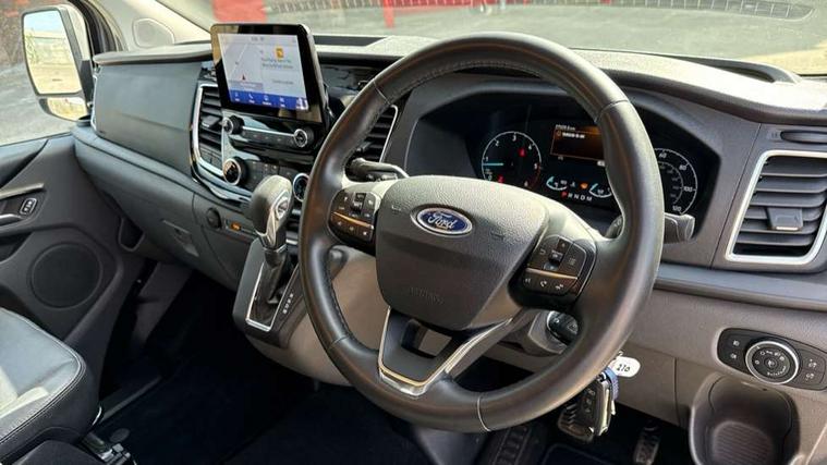 Easy fuel capless refuelling system, Embedded modem, Ford Eco mode, PAS, Selectable drive mode, Trip computer, Tyre pressure monitor, Vehicle maintenance monitor, Audio controls mounted on steering wheel, 180 Degree rear cargo check arms, Automatic headlamps with follow me home, Automatic windshield wiper, Body colour door handles, Body coloured body side mouldings, Body coloured door mirrors, Body coloured lift/decklid exterior handles, Body coloured rear bumpers, Coloured grille with 3 base bars, Delete roof mounted turn signals, Door open tyre carrier drop, Driver only power front window with one touch down, Emergency brake light flashing, Headlamp levelling, High mounted stop lamp, Hood accent stripe, Intermittent front wash/wipe, Intermittent variable windshield wiper, Kerbside side load doors, Low roof line, Passenger side sliding load door with track cover, Quad beam headlamps, Rear cargo hinged door, Rear door edge warn reflectors, Rear mudflaps, Restricted side load door opening, Sport van body styling kit, Tutone painted plastic front bumper, Wide bodyside body coloured moulding, 2 Interior grab handles, 2nd row three seat wide bench, 2nd/3rd Row courtesy light, 4 Load compartment tie down loops, Assist handle, B pillar assist handle, Colour keyed exterior pack, Driver and passenger sunvisors with illuminated vanity mirrors, Extended carpet inside floor cover with rubber rear, Extended molded headliner, Floorwell lights, Front manual air conditioning, Glazed bulkhead, Header mounted courtesy lights - 2 map lights, Height adjustable head restraints, Illuminated footwell, Internal grab handles, Isofix child seat attachments - centre and offside 2nd row seats, LED load compartment light, Lockable glove box, Map reading lights, Molded gear shift knob, Part leather upholstery, Passenger underseat storage box, Reach and rake adjustable steering column, Rear coat hook, Recirculation heater, Side rear door trim panel - Level 1, Sunglasses roof storage, Tool kit, Washer tank level warning lamp, Interior trim accent pack C - Transit custom, Rear seat pack 3 - Transit Custom, Visibility Pack Premium - Transit Custom, 3 point seatbelts for all seats, Drivers airbag, Dual note electric horn, Front active seat belts, Front passenger airbag restraint with driver/Passenger front seat belt buckle pretensioner and Passenger air bag deactivation, Height adjustable drivers seatbelt mount, Passenger seatbelt height adj, Rear seat belts, Seatbelt remainder for driver and passenger, Auto locking on drive-away, Auto relocking, Configurable unlocking 2, Locking wheel lug nut, Multi channel door entry remote and 3 Button key fob, Power door dead locks, Power lock group, Remote central locking, Thatcham category 1 alarm, Two step door unlock system, 2 12v sockets, 80 litre fuel tank, ABS, Auto start/stop system, Diesel particulate filter, ESP, ESP + EBA, Extra heavy duty alternator, Mechanical parking brake, Non limited slip front axle, Roll stability control, Side wind mitigation, Standard duty suspension, 17" alloy wheels style 2 contains 17" mini space wheel with locking wheel lug nut, Full wheelcovers,