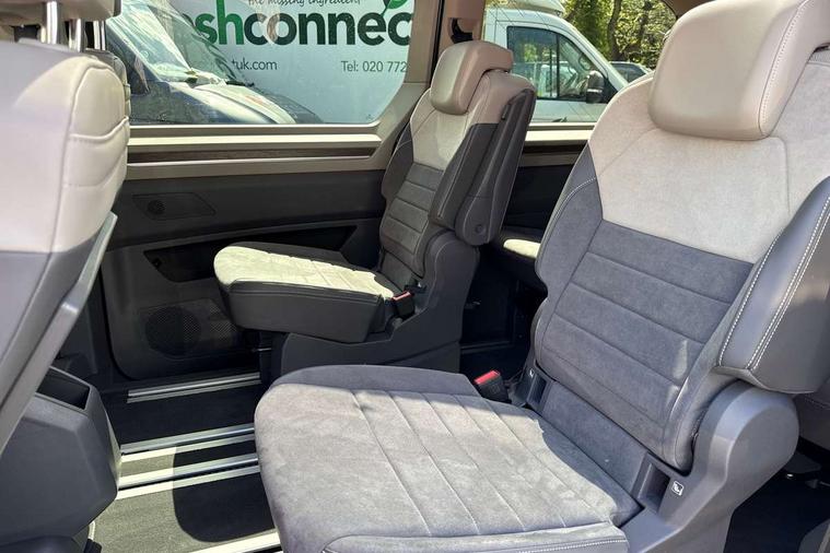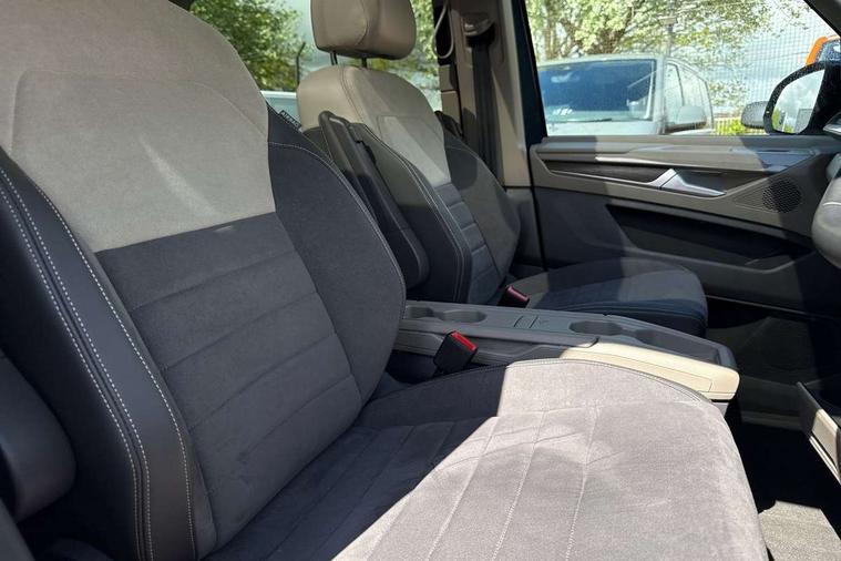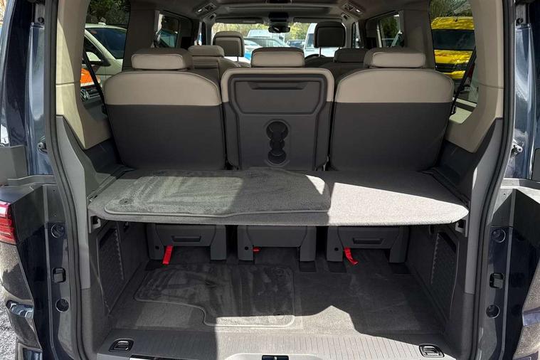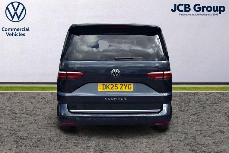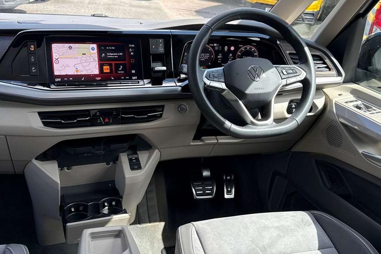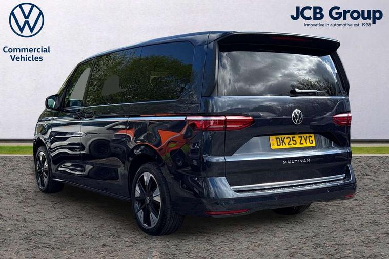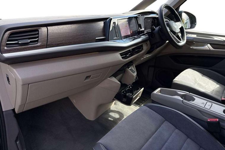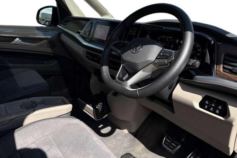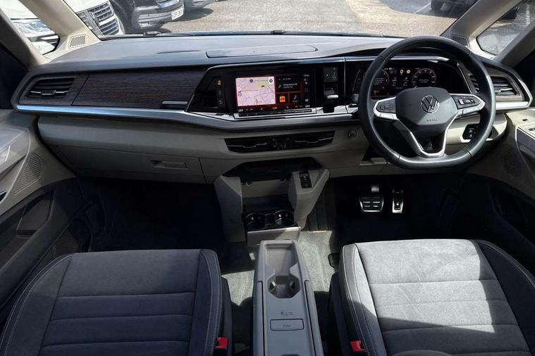 Adaptive cruise control with C2X including front assist and city emergency braking system, Digital Cockpit Pro with 10.25" colour display with adaptable display includes navigation map display, telephone contact images and audio information, Discover media pro navi system with 10" colour touch incl DAB+radio/appconnect for apple carplay/android auto/streaming and internet/gesture control, Driver alert system, Dynamic road sign display, eCall emergency system, Electrically-operated tailgate opening and closing function (Easy open), operated via foot movement under rear tailgate, Emergency assist, Front Cross Traffic Alert, Lane change system with side assist including blind spot monitor, rear traffic alert and exit warning system, Lane keeping system Lane Assist, Mobile phone interface, PAS, Semi-automated driving assistance, Tailgate, Travel assist, Voice control system including Alexa web app, We connect preparation, Electronic differential lock, 2 USB-C ports in front and 4 USB-C ports in passenger compartment, Additional interior noise reduction measures, Advanced high beam control dynamic light assist for LED matrix headlamps, Automatic headlight control with welcome home lights, Body coloured exterior door handles, Break away auto dimming rear view interior mirror, Chrome trim decorative strip mid-way on side and rear, Dynamic headlight range control with dynamic cornering light, Electrically adjustable, heated and folding door mirrors, Front fog lights, Glossy black painted radiator grille with 2 illuminated chrome trims, Heated rear window with window wiper and washer system, Heated windscreen, High gloss black exterior mirror housing, IQ.Light LED matrix headlamps with LED separate daytime running light, Laminated safety glass windshield, heat and sound insulating, LED 3rd brake lamp, LED rear combination lamps, Rear wiper, Stainless steel tailgate trim, Surround lighting in door area and tailgate with logo projection in door area, Windshield wiper intermittent control with rain sensor, 1 x 12V sockets on the dash panel, 12V socket in passenger compartment, 3 seat bench in 3rd row, 30 colours ambient interior lighting and tailgate surround lighting, 7 single seats removable/movable, Carpet mats in cab, Climatronic 3 zone air conditioning with additional control panel in passenger compartment, Front and rear head restraints, Grab handles on A pillar for access, on driver and front passenger side, Height adjustable seats, Height and longitudinal adjustment steering wheel with gear shift paddles, Illumination lockable glovebox compartment, ISOFIX (including i-size) and top tether in all seats in 2nd and 3rd rows, LED luggage compartment lighting X 2, Load compartment partition to 20kg with bag hooks and luggage net, Luggage compartment lid power latching with unlatching from inside, Multifunction leather steering wheel with tiptronic, Reinforced carpet floor covering in passenger compartment, Removable armrests for front seats with power adjustable lumbar support and folding table for 2nd row passenger seats, Removable armrests in 2nd row passenger seats, Single front passenger seat, Slidable multifunction table/centre console with 3 cup holders, Stainless steel pedals, Storage compartment under the 2nd and 3rd row seat and two waste bins, Sun visors with illuminated vanity mirror, ticket holder on driver side with airbag warning label on sunvisor and B-pillar, Easy open package - Multivan, 3x3 point rear seat belts, ABS, Automatic post collision braking system, Autonomous emergency braking front assist with pedestrian and cyclist monitoring, Driver and front passenger airbag with front passenger airbag deactivation, Electric childproof lock, Electronic stability control (ESC) and Electromechanical brake booster, ESP, First aid kit with warning triangle and safety vest, Front disc brakes, Hill hold assist, Seat belt warning for the drivers and all passengers seats if unfastened, Side and curtain airbags for driver and front passenger, curtain airbags for outer seats in rear, centre airbag in front, Single tone horn, Traction control, Tyre pressure monitoring system, Anti theft alarm system with interior monitoring in cab, backup horn and towing protection, Central locking system with interior control and safe lock, Keyless advanced with keyless entry, Start/stop button on centre console, Dark woodgrain optic decorative inserts,