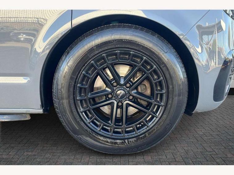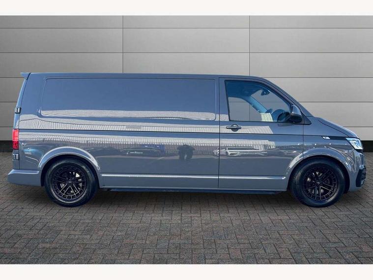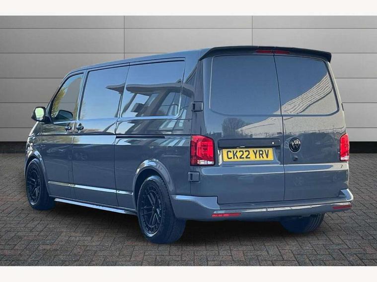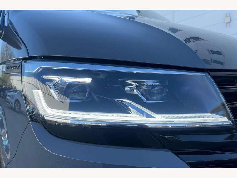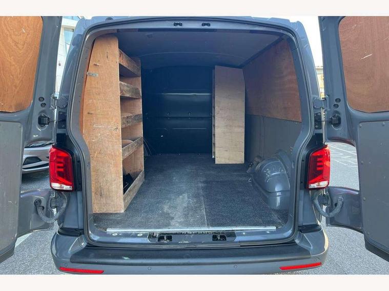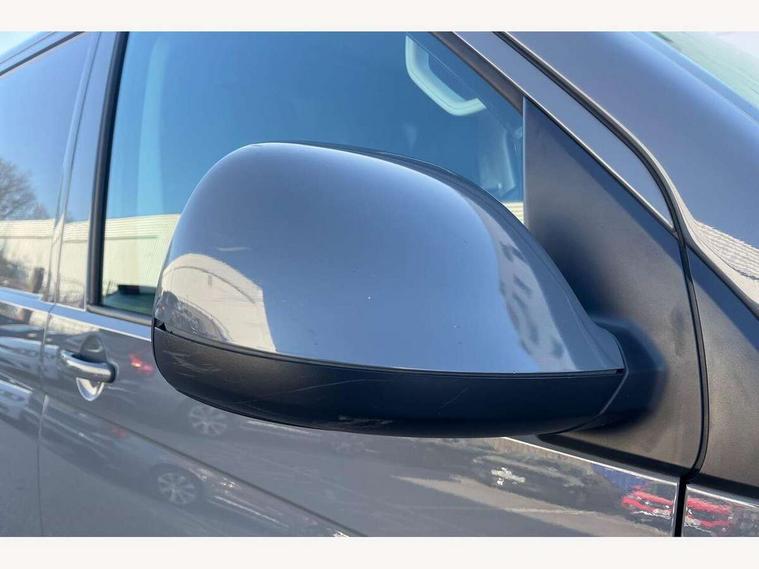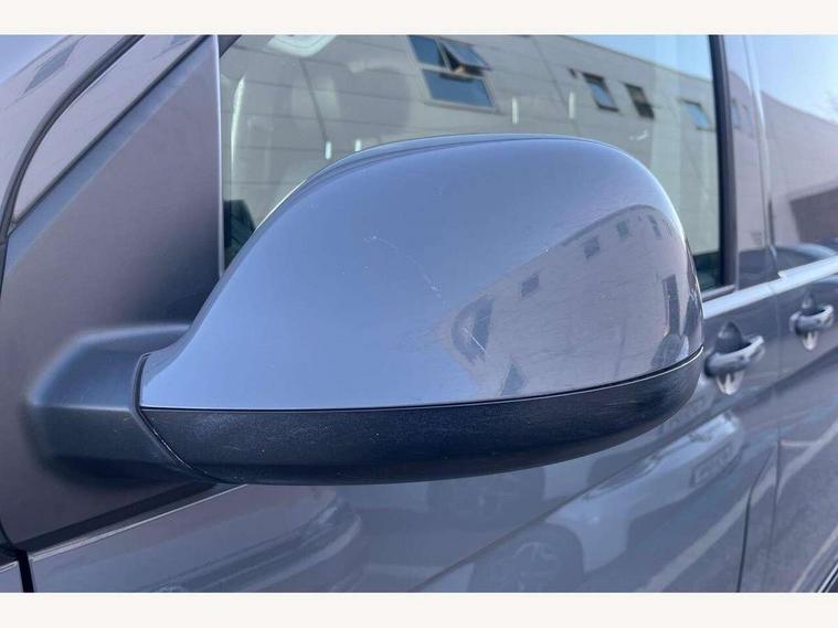 Adaptive cruise control, Cross wind assist, Dimmable illuminated instruments, Driver alert with Multi-function display plus, eCall emergency system, Electromechanical speed sensitive power steering, height and longitudinally adjustable steering column, Forward collision warning front assist with autonomous emergency braking, Mobile phone interface, Multi function display plus with black and white display, 2 USB interfaces type C in dashboard, 4 speakers with 2 tweeters and 2 woofers, Composition colour radio with 6.5" touchscreen, Digital radio reception (DAB+), Volkswagen app connect, Automatic headlight control, leaving home and manual coming home feature, Closing rear wing door with unlatching from the inside, Front fog lamps with cornering light, Heat insulating glass (green) in cab and passenger/load compartment, Heated front windscreen, Left convex exterior mirror, Power folding adjustable door mirrors with separately heated, Radiator grille with 2 chrome trims, Rear wing doors without window apertures, Right convex exterior mirror, Transporter nameplate on the rear fender, Windshield wiper intermittent control with rain sensor for windshield wipers, 3 spoke leather wrapped multi function steering wheel, Auto dimming breakaway interior rear view mirror, Comfort headliner in cab, hardboard roof trim in passenger and load compartment, Dust/pollen filter, Front and rear left without window closed side panel in load compartment, Front seats on the right in 1st row of seat, Glove compartment with illumination, Heavy duty tool kit and jack, High partition, Interior plastic loading edge protection, LED Interior lighting in load and passenger compartment, Manual adjustable lumbar support for right single seat in 1st row seats, Refrigerant R134a, Standard lower part dashboard in palladium, Storage compartments on cab seats and reading light, Without right side window apertures in passenger and load compartment, Comfort pack - Transporter, Exterior pack without fog light- Transporter, Non smoker pack - Transporter, 3 point height adjustable seat belts on outer seats cab with electric pretensioners, Driver and front passenger airbag with front passenger airbag deactivation, Warning buzzer and light for driver and front passenger seat belt not fastened, Without child safety lock in passenger compartment, Anti theft alarm system with interior monitoring in cab, backup horn and towing protection, Lockable wheel bolts, 16" chassis with 16" brake system, Additional 12V socket, Diesel particulate filter, Electronic stability control, ABS, ASR with deactivation button, hill start assist and brake assist system, Start/stop system with regenerative breaking, 16" Clayton alloy wheels,