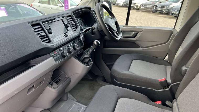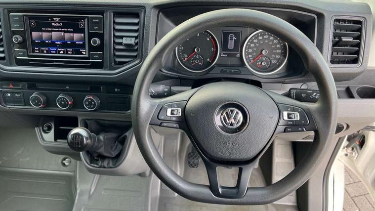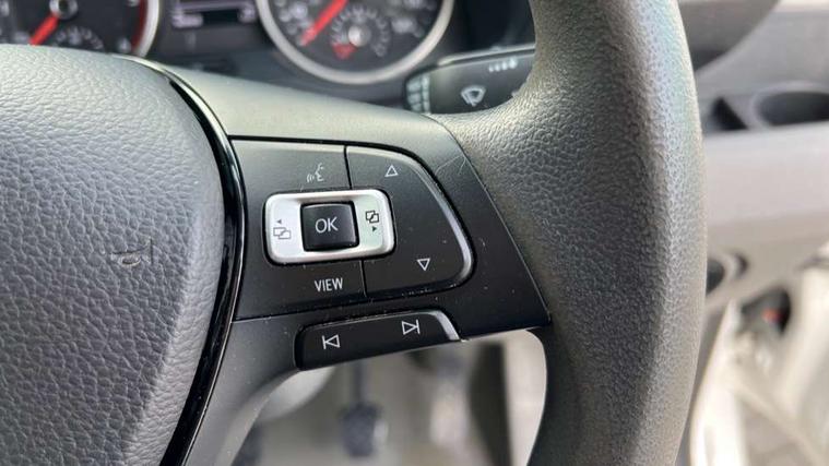 Cruise control with speed limiter, Driver alert system, Front assist including city emergency braking, Lights on warning buzzer, Locking fuel cap, Rev counter, Service indicator, Body colour roof, Driver seatbelt warning light, Electric windows, Indicators in front door mirrors, Integral step in front bumper, Air recirculation system, Ashtray, Centre console storage tray, CFCU preparation, Charcoal filter, Document holder on centre console, Drinks holders, Electromechanical Servotronic steering, Fully adjustable suspension type driver seat, Grab handles on rear entry pillars, Height adjustable head restraints, Height and reach adjustable steering wheel, Illuminated glove compartment with lockable lid, Interior light, including 2 reading lights, Interior light, switchable by door, Storage compartments in doors and in step, right, Storage tray on dashboard, Two 12V outlets in the cab (in the dashboard), Without rear side trim panel passenger load compartment, 3 point inertia reel belt on all seats, Automatic hazard light with emergency braking, Crosswind assist, Height adjustable seatbelts for outer cab seats, 1 rigid key, Engine immobiliser, Remote central/dead locking, ABS, Automatic post collision braking system, EBA, EBD, EDL, ESP, HBA, Parking brake - hill hold control, TCS,