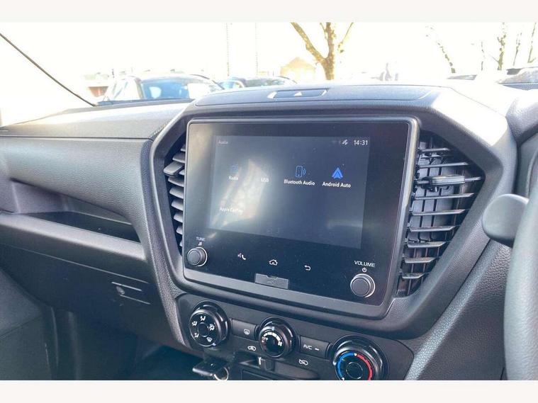 4.2" Multi function display, 4WD shift on the fly, Blind spot monitor, Bluetooth connectivity, Cruise control, Door open warning light, eCall, Emergency lane keeping, Forward Collision warning, Intelligent speed limiter, Lane departure warning and prevention system, Manual gearshift indicator, Multi collision brake, On/off button for lane support system mounted on steering wheel, One motion door unlock for driver's side, Rear cross traffic alert, Speed sensitive power steering, Traffic sign recognition, 2 speakers, Audio and cruise controls mounted on steering wheel, CD player, Digital radio (DAB), Front USB connection, Automatic headlights, Automatic windscreen wipers with rain sensor, Black door handles, Black front bumper, Black rear bumper with integrated step, Dark gray upper and lower black radiator grille, Follow me home light, Front and rear power windows with driver side auto up/down function with pinch protection and timer, Front fog lamp bezel design colour, Halogen daytime running lights, Halogen headlights, Heated black door mirrors, Heated rear windscreen, High beam assist, Integrated fuel filler cap with AdBlue, Manually dimmable rear view mirror, Rear fog lights, Rear radar chipping guard, Security etched glass, Tailgate damper, Trailer sway control, 2 x Rear side ISOFIX child seat anchors with top tether anchors, 6 way adjustable manual driver's seat, 60/40 folding seat base, Centre and floor console, Closed upper and open lower glove boxes, Closed upper driver dashboard storage compartment, Cloth upholstery, Driver and passenger sun visors, Driver's footrest, Flat folding rear seats, Front cup holders in centre console and dash - driver and passenger sides, Front door pockets with bottle holder, Height adjustable rear headrest, Height and reach adjustable steering wheel, Manual air conditioning, Map lights, Power driver's seat lumbar support, Rear door pockets with bottle holder, Sunglasses holder and overhead console, Underseat storage compartment, Vinyl floor covering, 3x3 point rear seatbelts, Autonomous emergency braking, Centre SRS airbag, Child proof rear door locks, Front, side, curtain and driver knee SRS airbags, Height adjustable front seatbelt pre-tensioners with load limiters, Passenger airbag deactivation switch, Seatbelt reminder indicator, Alarm with deadlock, Insurance approved immobiliser, Remote central locking, 12V power outlets, Anti lock braking system (ABS), Brake assist, EBD, Electronic Stability Control (ESC) with traction control, Hill Descent Control, Hill start assist, Stop/start function, 18" steel wheels,