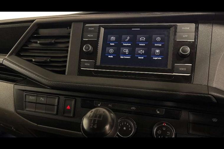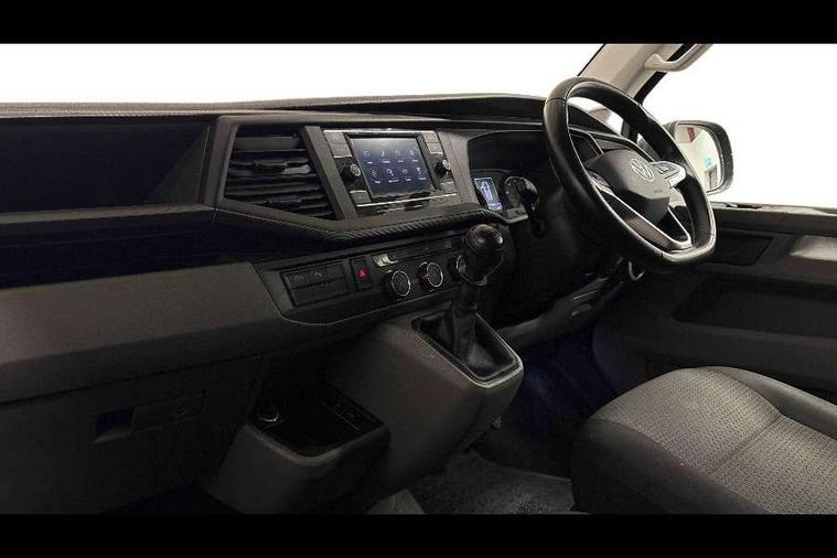 Adaptive cruise control, Cross wind assist, Dimmable illuminated instruments, Driver alert with Multi-function display plus, eCall emergency system, Forward collision warning front assist with autonomous emergency braking, Mobile phone interface, Multi function display plus with black and white display, 2 USB interfaces type C in dashboard, 4 speakers with 2 tweeters and 2 woofers, Composition colour radio with 6.5" touchscreen, Digital radio reception (DAB+), Volkswagen app connect, Closing rear wing door with unlatching from the inside, Front fog lamps with cornering light, Heat insulating glass (green) in cab and passenger/load compartment, Heated front windscreen, Left convex exterior mirror, Power folding adjustable door mirrors with separately heated, Radiator grille with 2 chrome trims, Rear wing doors without window apertures, Right convex exterior mirror, Transporter nameplate on the rear fender, 3 spoke leather wrapped multi function steering wheel, Comfort headliner in cab, hardboard roof trim in passenger and load compartment, Dust/pollen filter, Front and rear left without window closed side panel in load compartment, Front seats on the right in 1st row of seat, Heavy duty tool kit and jack, High partition, Interior plastic loading edge protection, LED Interior lighting in load and passenger compartment, Refrigerant R134a, Standard lower part dashboard in palladium, Storage compartments on cab seats and reading light, Without right side window apertures in passenger and load compartment, Comfort pack - Transporter, Exterior pack without fog light- Transporter, Light and vision pack - Transporter, Non smoker pack - Transporter, 3 point height adjustable seat belts on outer seats cab with electric pretensioners, Driver and front passenger airbag with front passenger airbag deactivation, Warning buzzer and light for driver and front passenger seat belt not fastened, Without child safety lock in passenger compartment, Anti theft alarm system with interior monitoring in cab, backup horn and towing protection, Lockable wheel bolts, 16" chassis with 16" brake system, Diesel particulate filter, Electronic stability control, ABS, ASR with deactivation button, hill start assist and brake assist system, Start/stop system with regenerative breaking, 16" Clayton alloy wheels,