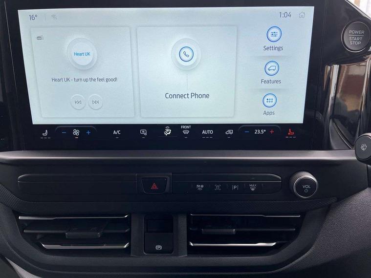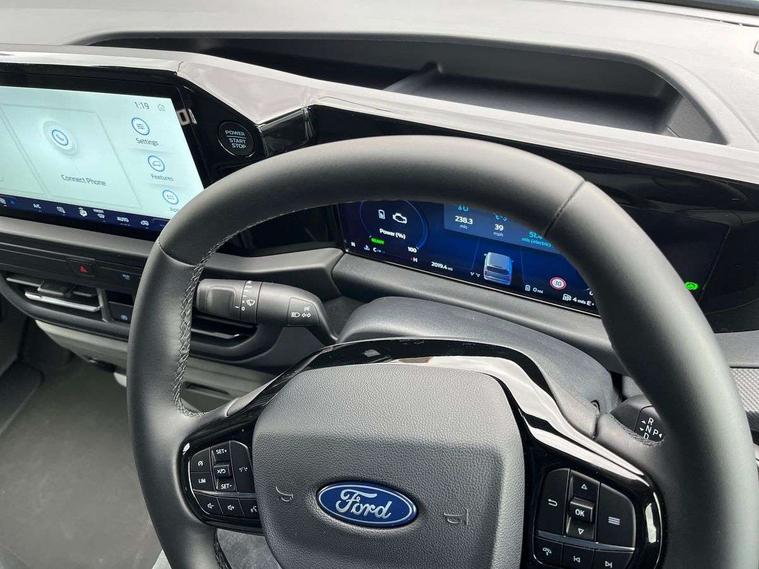 13" Touchscreen, 5G embedded modem, AECS NO SMS/Roll Detect 2G, PAS, Tyre pressure monitor, SYNC 4 - Android Auto/Apple Car Play, advance speech recognition, over the air update capability, Automatic headlights, Automatic windscreen wipers, Body coloured door mirrors, Body coloured front bumper, Body coloured rear bumpers, Daytime running lights, Electric front windows with one touch facility for driver and front passenger, Front mud flaps, Front splash guards, Low roof line, Quickclear front window defroster, Rear cargo hinged door, Rear splash guards, Trailer sway control, 6 Load compartment tie down loops, Courtesy light, Interior grab handle with driver's sunglasses holder, LED lights, Locking glove box lid, Sensico gearshift knob, 2 remote keys, Alcohol Interlock wiring preparation pack, Keyless entry and start, Locking wheel lug nut, Thatcham category 1 alarm, 63 litre fuel tank, ABS, ESP, Hill launch assist, Traction control, Full wheelcovers, Tyre repair kit,