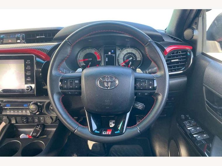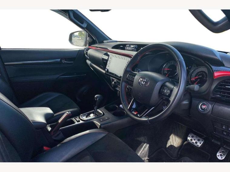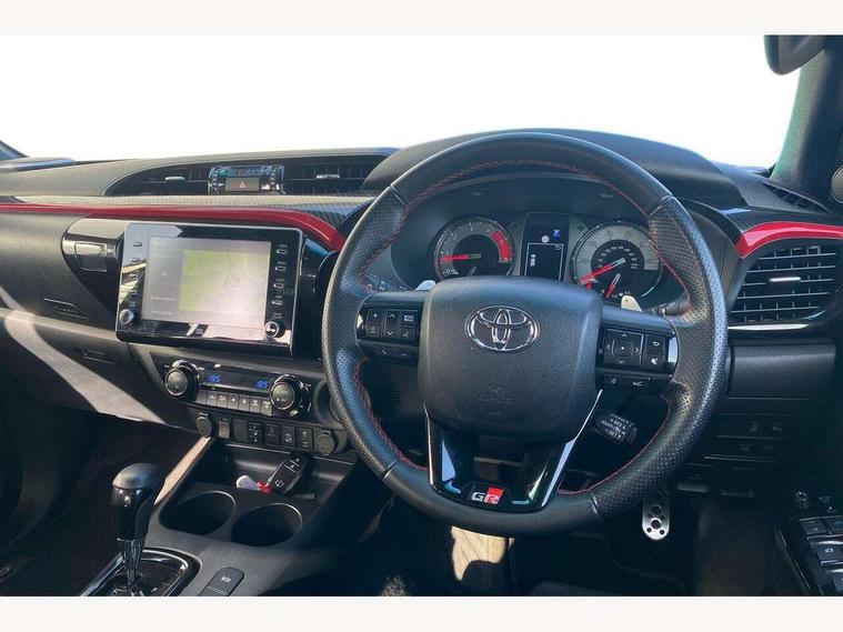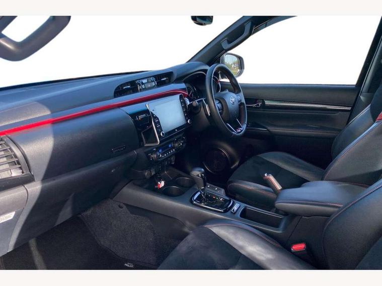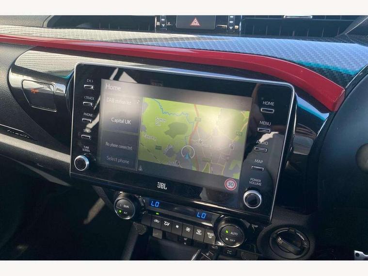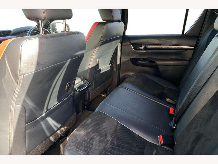 4.2" Multi information display, Bluetooth connectivity, Dynamic guide lines on reversing camera, Front and rear parking sensors, Fuel heater, Intelligent adaptive cruise control, Lane departure warning system, Lights on warning buzzer, Panoramic view monitor, PAS, Pre-collision system with pedestrian detection, Rear view camera, Road sign assist, Smart phone integration with Android auto & Apple CarPlay, Tachometer, Touch 2 multimedia system with 8" display + GO navigation system, Digital radio (DAB), JBL Premium sound system with 9 speakers, MP3 compatibility, Steering wheel mounted audio controls, USB connector, Auto dimming rear view mirror, Auto Headlights, Automatic headlamp levelling, Black door handles, Black door mirrors, Black G-Mesh Grille, Black side steps, Body coloured front bumper, Dark grey rear bumper, Emergency brake light assist (EBS), Follow me home headlights, Front power windows with auto up and down function, Front wiper De-icer, Headlight cut-off reminder, Headlight washers, Heated door mirrors, Heated rear window, LED Daytime running lights, LED dual beam projector headlights, LED front fog lights, LED rear lights, Mud flaps front and rear, Power rear side window, Power retractable door mirrors, Rear fog lights, Rear window privacy glass, Trailer sway control, Underbody protection cover, Variable front wipers, Windscreen shadeband, 220V power socket, 60/40 split tip-up rear bench seat, Alcantara/Leather upholstery, Ambient door lighting, Carpet covered floor, Centre console coolbox, Centre console with lid, storage and armrest, Cooler in upper glove box, Dual zone auto A/C, Heated front seats, Heated rear seats, Inner load hooks on cargo deck, Leather steering wheel and gearshift lever, Locking glovebox, Power adjustable drivers seat, Rear passenger footwell heating, Tilt adjustable steering wheel, Automatic front passenger airbag on/off switch, Child proof rear door locks, Front passenger airbag detector, Front seatbelt pre-tensioners + force limiters, Front seatbelt reminder, Isofix child seat preparation, Rear seatbelt pre-tensioners with load limiters, Supplement restraint system (SRS) 7 airbags - driver and passenger, knee, side and curtain, Immobiliser, Lockable tailgate, Remote central locking, Smart entry and start system button, 2 12v sockets, ABS with EBD, Auto limited slip differntial, Brake assist, Downhill Assist Control (DAC), Front and rear monotube shock absorbers, Front red coil springs, Hill start assist, Load sensing proportioning system, Stop/start function, Traction control, Vehicle stability control, 17" Bi - tone black machined face GR Sport alloy wheels, All terrain tyres, Full size alloy spare wheel, GR Sport black wheel caps,