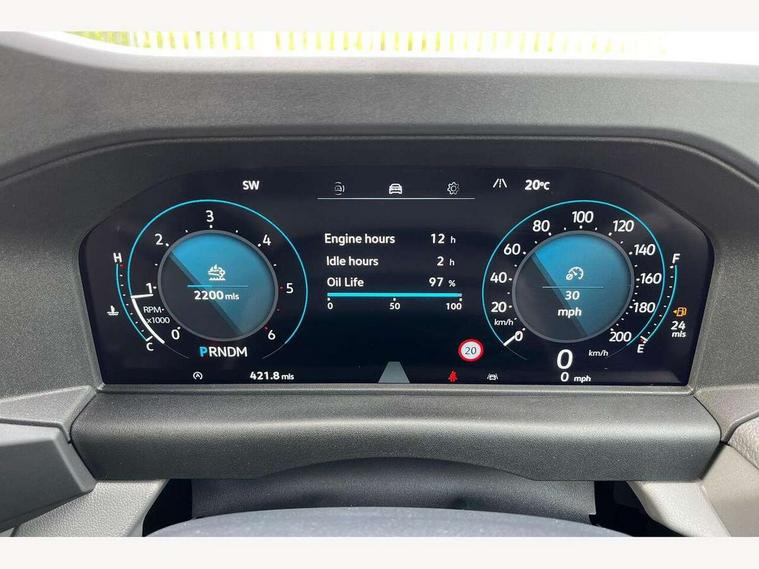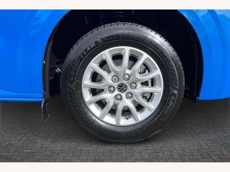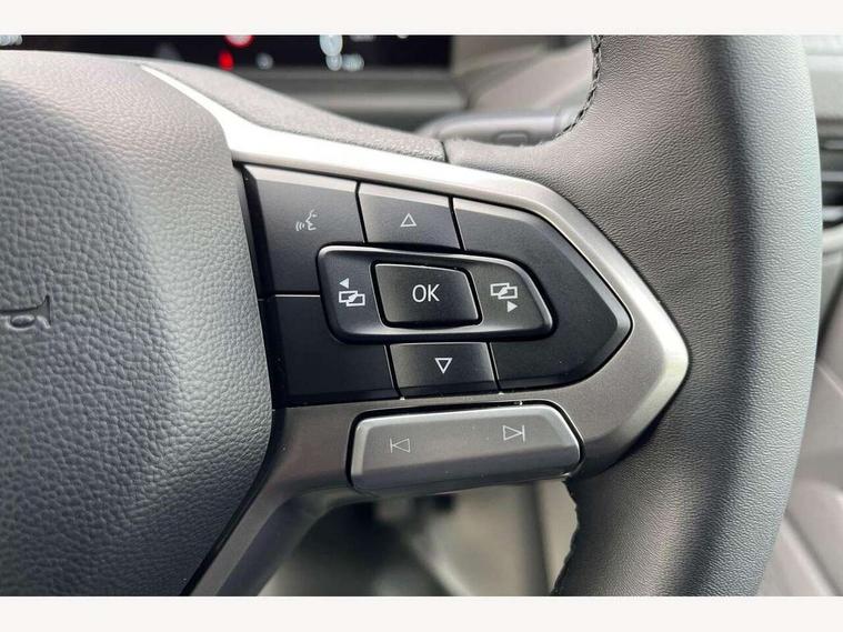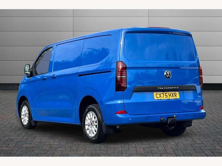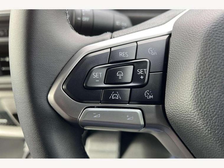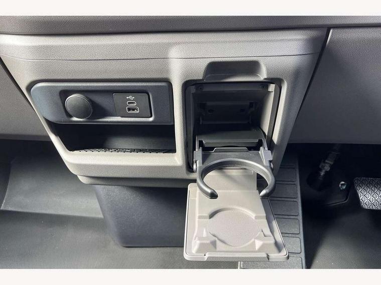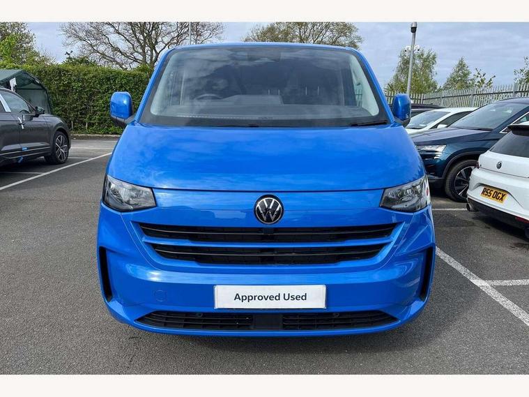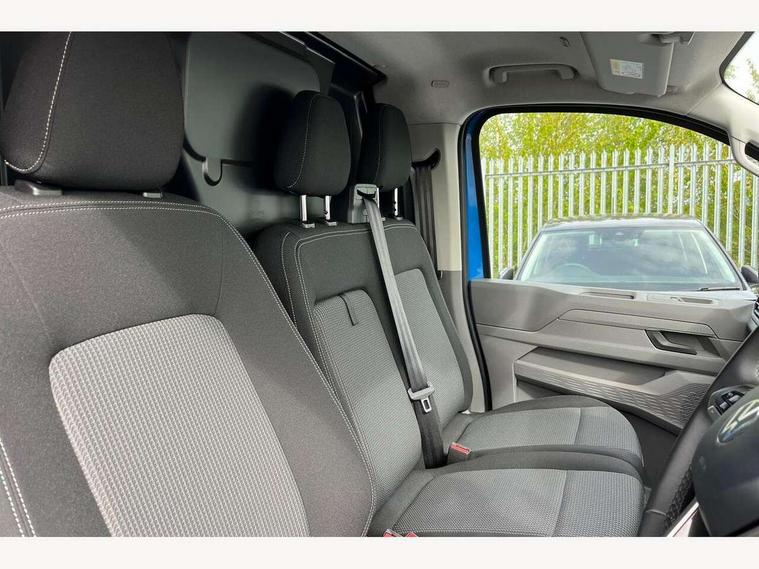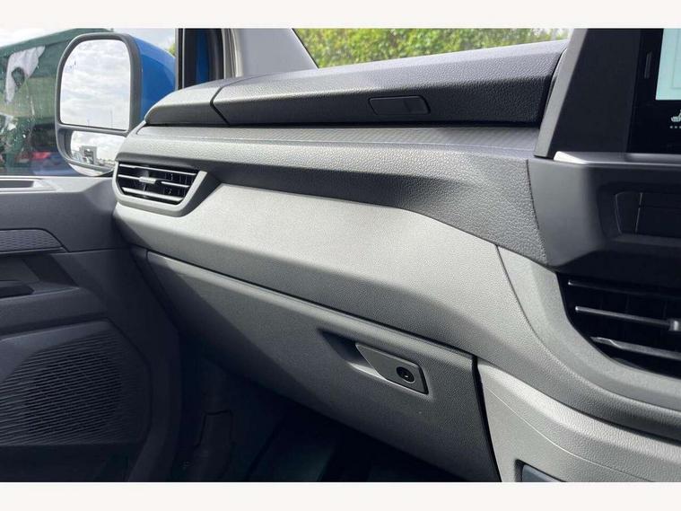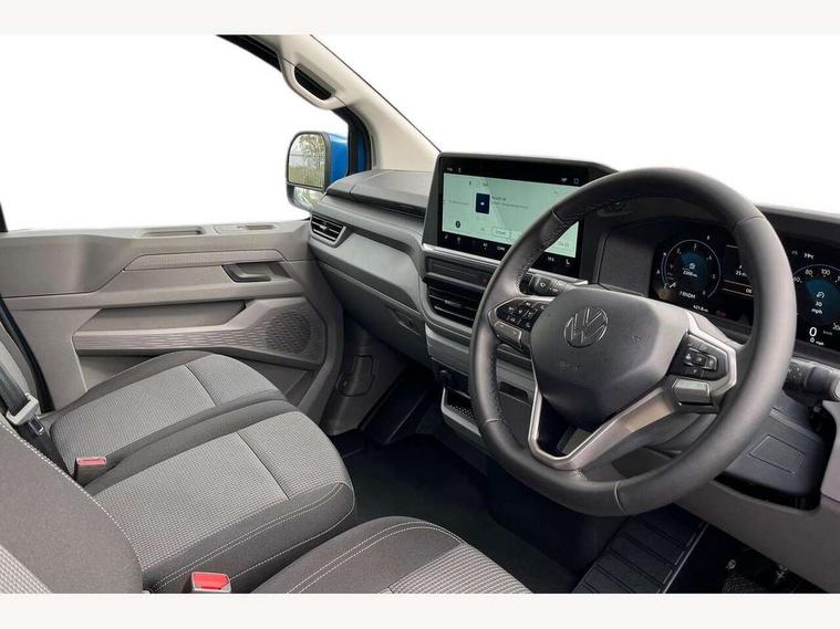 12" digital drivers display, 13" touchscreen infotainment display with wireless app connect and DAB radio, 5G Modem, Adaptive cruise control, Apple CarPlay and Android Auto, Dynamic road sign display, eCall emergency system, Electromechanical speed sensitive power steering, height and longitudinally adjustable steering column, Lane and blind spot assist with exit warning system, Preparation of VW connect and connect plus, Traffic jam assist, Wireless mobile phone charging, Wrong way driver warning, Body colour bumpers, Body coloured door handles, Body coloured door mirrors, Body coloured radiator grille, Electrically heated, adjustable and folding door mirrors, Heat reflecting side window glass, Mud flaps front and rear, Rear Transporter nameplate in black grained decorative trim, Vehicle opening configuration 1x 1st row of seats, 2x all doors, 12V outlet in centre console and 12V outlet on rear right D-pillar, 2x 15-W USB data/charging ports in dashboard and 1x USB-C, 1x USB-A center bottom, 2x LED lights in load compartment, 3x additional super bright LED lights in load compartment, 4 way height and tilt adjustable head restraints, 5 additional USB-C charging ports, Black plastic scuff plate for sliding door in cargo without illumination, Cabin interior lighting, Gear selector lever on steering wheel, Glasses compartment in driver side roof, Grab handle on A-pillar passenger side, Illuminated lockable glovebox, Lashing rings for reinforced floor covering, Narrow centre console with cup holder and compartment for mobile phone, Overhead storage compartment, Rubber floor covering in cab, Striped fabric upholstery, Without passenger seats in load compartment, Driver and front passenger airbag with front passenger airbag deactivation, Dual tone horn, Front and curtain airbags for driver and front passenger, Seat belt pretensioner for driver seat, Anti theft alarm system with interior monitoring in cab, backup horn and towing protection, Electronic immobiliser, Lockable wheel bolts, Preparation for alcohol ignition interlock, 5+ Promise, Alternator - 230A, Electromechanical brake booster, Electronic stability control, ABS, ASR with deactivation button, hill start assist and brake assist system,