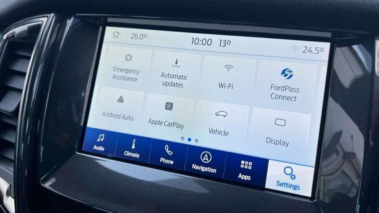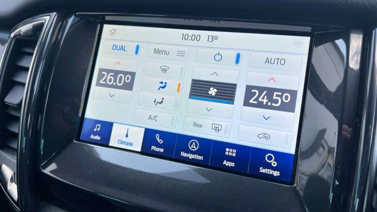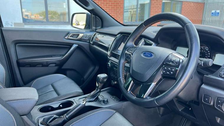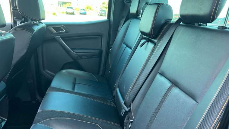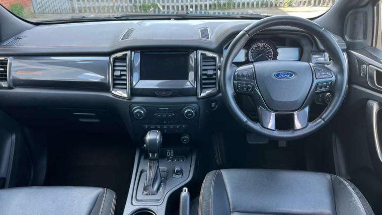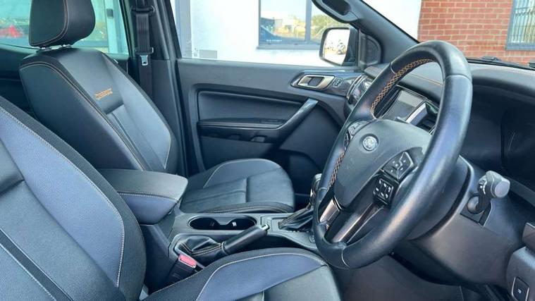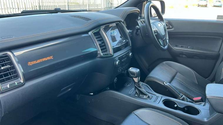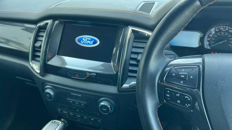 2 key fob, Collision mitigation braking system, Electric power assisted steering, Fixed rear view camera, Intelligent speed assistant, Lane keeping aid, Traffic sign recognition, Trip computer, Automatic headlights, Body coloured plastic front bumper, Boulder grey exterior door handle, Boulder grey exterior door mirror, Boulder grey radiator grille, Daytime running lights, Dual power heated fold back door mirror with puddle lamp and signal, Electrically operated windows with one shot driver's window, Electrochromic interior mirror, Front splash guard and mud flaps, Heated windshield and rear window, High mounted stop lamp with cargo area light, LED Front fog lamp, LED projector headlamps, Moulded in colour tailgate handle, Painted front fender grille, Privacy glass, Rain sensitive windshield wipers, Rear bumper chrome under-bar, Rear bumper step in boulder grey, Rear mudflaps, Roof rails, Side step with brushed inserts, Sports bar, Tailgate - Easy-lift/lower mechanism, Under hood engine cover, Underbody protection, Centre console coolbox, Chrome interior door handle, Driver seat back mounted map pocket, Dual control system - Electronic air temperature control (EATC), Ebony headliner, Heated front seat, Journey grain partial leather upholstery with Wildtrak logo, Leather gearknob, LED ambient interior lighting, Power adjustable 8 way driver seat, Premium front and rear floor mats with Wildtrak logo, Reach and rake adjustable steering column, Roof storage for driver sunglasses, Sport leather stitched steering wheel, Tie down rails and rope hooks, Wildtrak door trim panel insert, ICE feature pack 129 - Ranger, 3 point inertia rear seatbelts, Driver and front passenger airbag, side airbag, curtain airbag and driver knee airbag, ISOFIX child safety seat attachment, Seatbelt reminders for driver and front passenger, Tyre pressure sensors, Double locking power door lock with flip key, Immobiliser, Locking wheel nuts, Passive anti theft system, Passive keyless entry and start system, Power tailgate lock, Spare wheel lock, Thatcham category 1 alarm security system, ABS, ESP and roll over mitigation, Emergency brake assist, Engine start/stop system, Locking rear axle, Power converter,