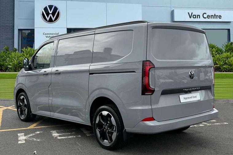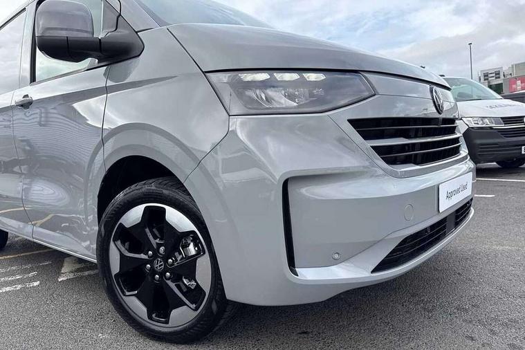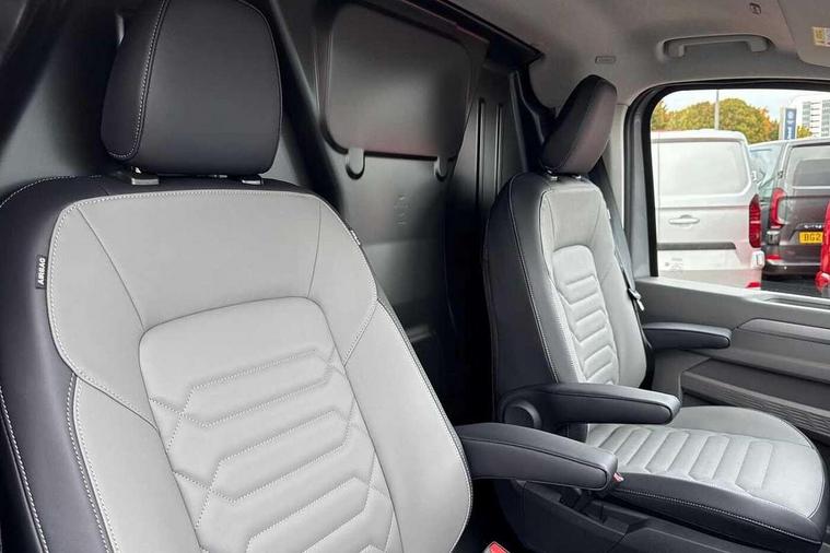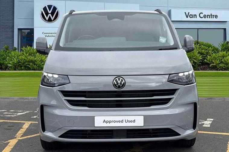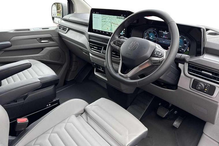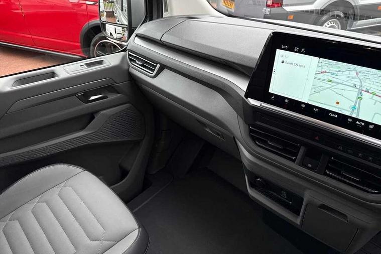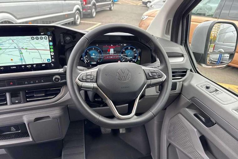 12" digital drivers display, 13" touchscreen infotainment display with wireless app connect and DAB radio, 5G Modem, Adaptive cruise control, Apple CarPlay and Android Auto, Dynamic road sign display, eCall emergency system, Electromechanical speed sensitive power steering, height and longitudinally adjustable steering column, Lane and blind spot assist with exit warning system, Preparation of VW connect and connect plus, Wireless mobile phone charging, Wrong way driver warning, Body colour bumpers, Body coloured door handles, Body coloured door mirrors, Body coloured radiator grille, Electrically heated, adjustable and folding door mirrors, Heat reflecting side window glass, Mud flaps front and rear, Rear Transporter nameplate in black grained decorative trim, Vehicle opening configuration 1x 1st row of seats, 2x all doors, 12V outlet in centre console and 12V outlet on rear right D-pillar, 2x 15-W USB data/charging ports in dashboard and 1x USB-C, 1x USB-A center bottom, 2x LED lights in load compartment, 3x additional super bright LED lights in load compartment, 4 way height and tilt adjustable head restraints, 5 additional USB-C charging ports, Black plastic scuff plate for sliding door in cargo without illumination, Cabin interior lighting, Glasses compartment in driver side roof, Grab handle on A-pillar passenger side, Illuminated lockable glovebox, Lashing rings for reinforced floor covering, Leatherette gear lever, Narrow centre console with cup holder and compartment for mobile phone, Overhead storage compartment, Rubber floor covering in cab, Striped fabric upholstery, Without passenger seats in load compartment, Driver and front passenger airbag with front passenger airbag deactivation, Dual tone horn, Front and curtain airbags for driver and front passenger, Seat belt pretensioner for driver seat, Anti theft alarm system with interior monitoring in cab, backup horn and towing protection, Electronic immobiliser, Lockable wheel bolts, Preparation for alcohol ignition interlock, 5+ Promise, Alternator - 230A, Electromechanical brake booster, Electronic stability control, ABS, ASR with deactivation button, hill start assist and brake assist system,