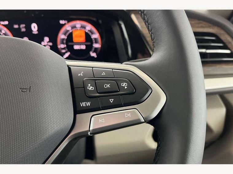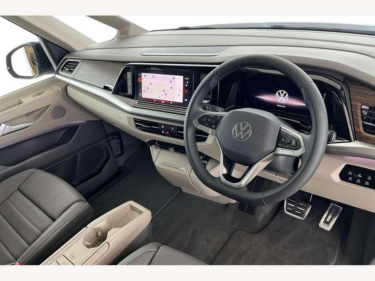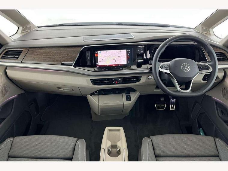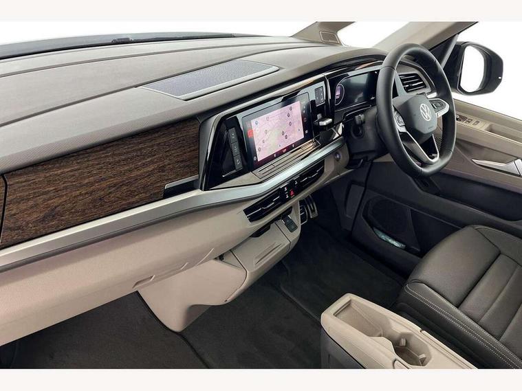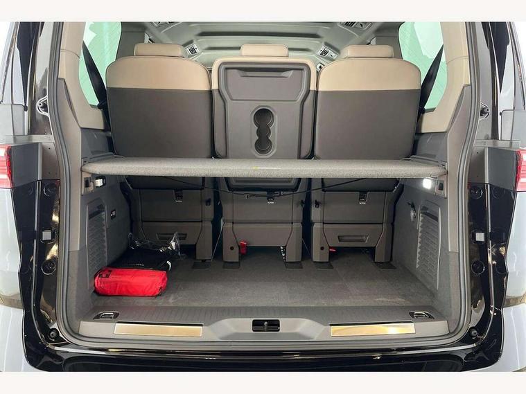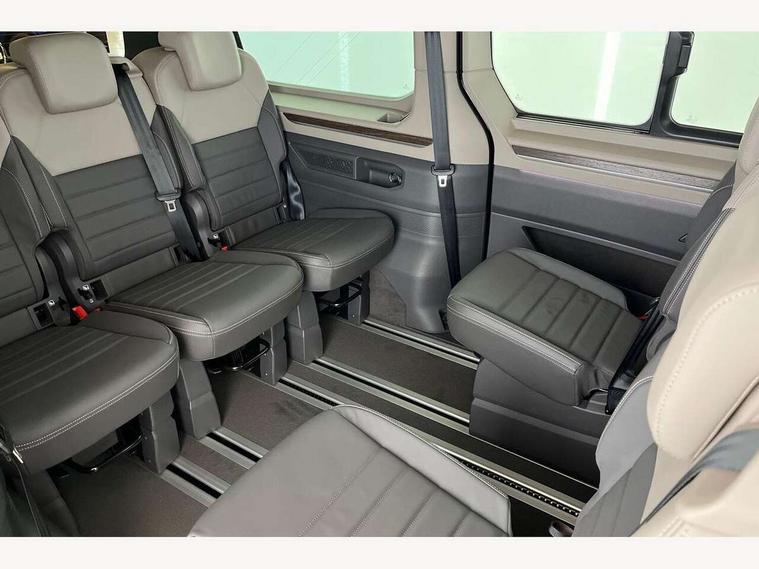 Adaptive cruise control with C2X including front assist and city emergency braking system, Digital Cockpit Pro with 10.25" colour display with adaptable display includes navigation map display, telephone contact images and audio information, Discover media pro navi system with 10" colour touch incl DAB+radio/appconnect for apple carplay/android auto/streaming and internet/gesture control, Driver alert system, Dynamic road sign display, eCall emergency system, Electrically-operated tailgate opening and closing function (Easy open), operated via foot movement under rear tailgate, Emergency assist, Front Cross Traffic Alert, Lane change system with side assist including blind spot monitor, rear traffic alert and exit warning system, Lane keeping system Lane Assist, Mobile phone interface, PAS, Semi-automated driving assistance, Tailgate, Travel assist, Voice control system including Alexa web app, We connect preparation, Electronic differential lock, 2 USB-C ports in front and 4 USB-C ports in passenger compartment, Additional interior noise reduction measures, Advanced high beam control dynamic light assist for LED matrix headlamps, Automatic headlight control with welcome home lights, Body coloured exterior door handles, Break away auto dimming rear view interior mirror, Chrome trim decorative strip mid-way on side and rear, Dynamic headlight range control with dynamic cornering light, Electrically adjustable, heated and folding door mirrors, Front fog lights, Glossy black painted radiator grille with 2 illuminated chrome trims, Heated rear window with window wiper and washer system, Heated windscreen, High gloss black exterior mirror housing, IQ.Light LED matrix headlamps with LED separate daytime running light, Laminated safety glass windshield, heat and sound insulating, LED 3rd brake lamp, LED rear combination lamps, Rear wiper, Stainless steel tailgate trim, Surround lighting in door area and tailgate with logo projection in door area, Windshield wiper intermittent control with rain sensor, 1 x 12V sockets on the dash panel, 12V socket in passenger compartment, 3 seat bench in 3rd row, 30 colours ambient interior lighting and tailgate surround lighting, 7 single seats removable/movable, Carpet mats in cab, Climatronic 3 zone air conditioning with additional control panel in passenger compartment, Front and rear head restraints, Grab handles on A pillar for access, on driver and front passenger side, Height adjustable seats, Height and longitudinal adjustment steering wheel with gear shift paddles, Illumination lockable glovebox compartment, ISOFIX (including i-size) and top tether in all seats in 2nd and 3rd rows, LED luggage compartment lighting X 2, Load compartment partition to 20kg with bag hooks and luggage net, Luggage compartment lid power latching with unlatching from inside, Multifunction leather steering wheel with tiptronic, Reinforced carpet floor covering in passenger compartment, Removable armrests for front seats with power adjustable lumbar support and folding table for 2nd row passenger seats, Single front passenger seat, Slidable multifunction table/centre console with 3 cup holders, Stainless steel pedals, Storage compartment under the 2nd and 3rd row seat and two waste bins, Sun visors with illuminated vanity mirror, ticket holder on driver side with airbag warning label on sunvisor and B-pillar, Easy open package - Multivan, 3x3 point rear seat belts, ABS, Automatic post collision braking system, Autonomous emergency braking front assist with pedestrian and cyclist monitoring, Driver and front passenger airbag with front passenger airbag deactivation, Electric childproof lock, Electronic stability control (ESC) and Electromechanical brake booster, ESP, First aid kit with warning triangle and safety vest, Front disc brakes, Hill hold assist, Seat belt warning for the drivers and all passengers seats if unfastened, Side and curtain airbags for driver and front passenger, curtain airbags for outer seats in rear, centre airbag in front, Single tone horn, Traction control, Tyre pressure monitoring system, Anti theft alarm system with interior monitoring in cab, backup horn and towing protection, Central locking system with interior control and safe lock, Keyless advanced with keyless entry, Start/stop button on centre console, Dark woodgrain optic decorative inserts,