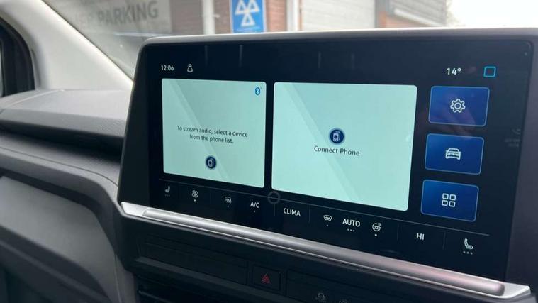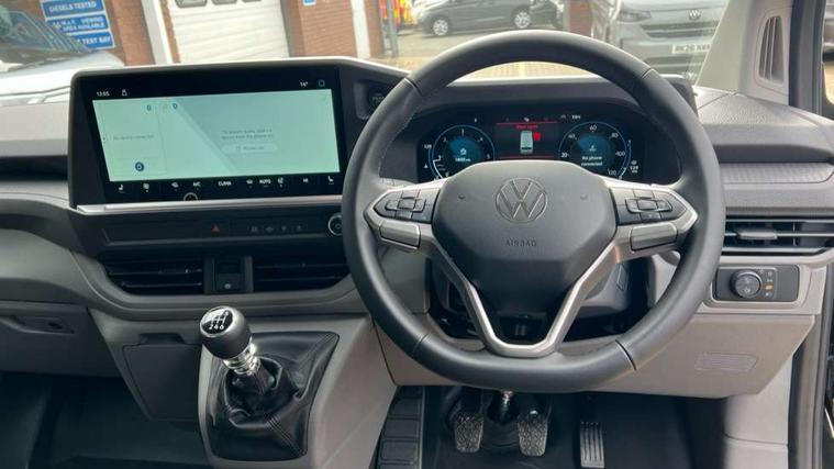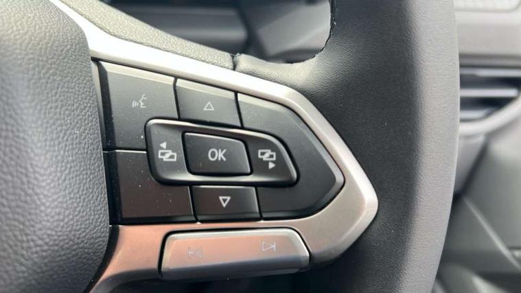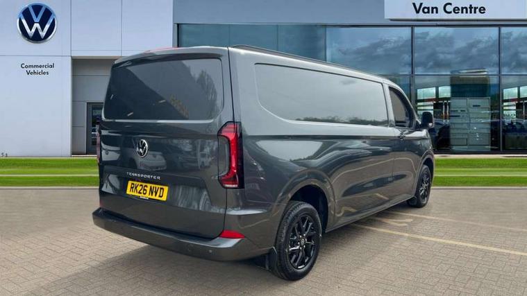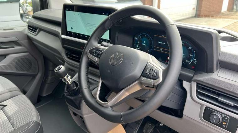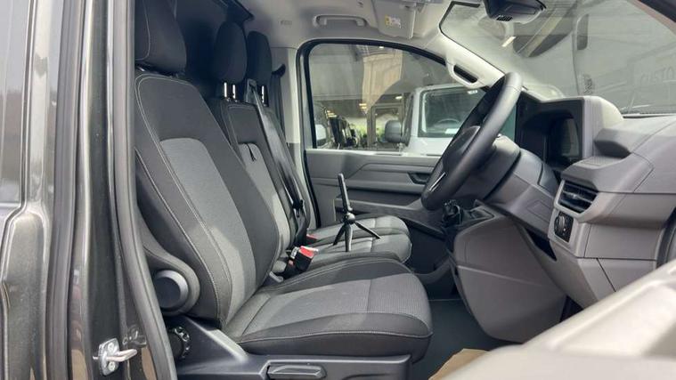 12" digital drivers display, 13" touchscreen infotainment display with wireless app connect and DAB radio, 5G Modem, Adaptive cruise control, Apple CarPlay and Android Auto, Driver alert system, Driver alert system and driver attention monitor, Dynamic road sign display, eCall emergency system, Electromechanical speed sensitive power steering, height and longitudinally adjustable steering column, Front and rear view camera and two side cameras, Lane and blind spot assist with exit warning system, Preparation of VW connect and connect plus, Wireless mobile phone charging, Wrong way driver warning, Body colour bumpers, Body coloured door handles, Body coloured door mirrors, Body coloured radiator grille, Electrically heated, adjustable and folding door mirrors, Heat reflecting side window glass, Mud flaps front and rear, Rear Transporter nameplate in black grained decorative trim, Vehicle opening configuration 1x 1st row of seats, 2x all doors, 12V outlet in centre console and 12V outlet on rear right D-pillar, 2x 15-W USB data/charging ports in dashboard and 1x USB-C, 1x USB-A center bottom, 2x LED lights in load compartment, 3x additional super bright LED lights in load compartment, 4 way height and tilt adjustable head restraints, 5 additional USB-C charging ports, Black plastic scuff plate for sliding door in cargo without illumination, Cabin interior lighting, Glasses compartment in driver side roof, Grab handle on A-pillar passenger side, Illuminated lockable glovebox, Lashing rings for reinforced floor covering, Leatherette gear lever, Narrow centre console with cup holder and compartment for mobile phone, Overhead storage compartment, Rubber floor covering in cab, Striped fabric upholstery, Without passenger seats in load compartment, Driver and front passenger airbag with front passenger airbag deactivation, Front and curtain airbags for driver and front passenger, Seat belt pretensioner for driver seat, Single tone horn, Anti theft alarm system with interior monitoring in cab, backup horn and towing protection, Electronic immobiliser, Keyless access with safelock, Lockable wheel bolts, Preparation for alcohol ignition interlock, 5+ Promise, Alternator - 230A, Electromechanical brake booster, Electronic stability control, ABS, ASR with deactivation button, hill start assist and brake assist system,