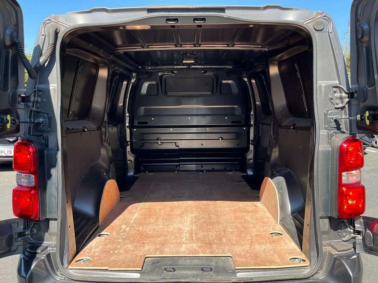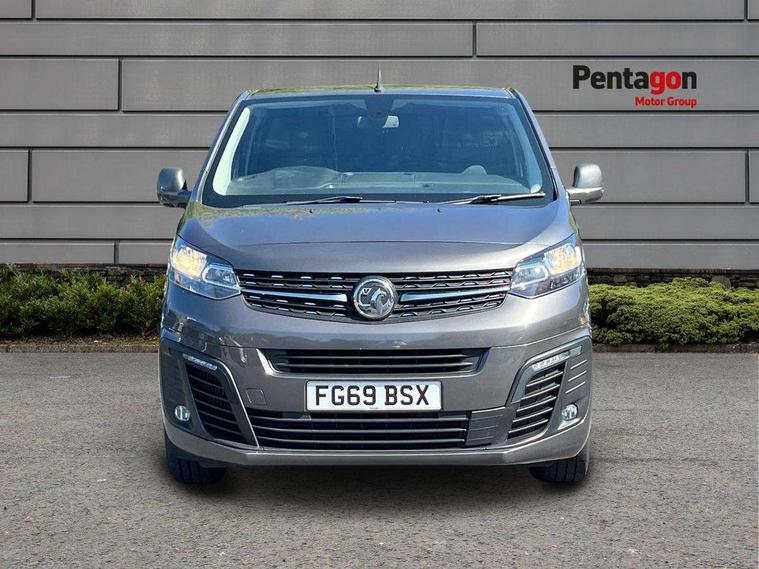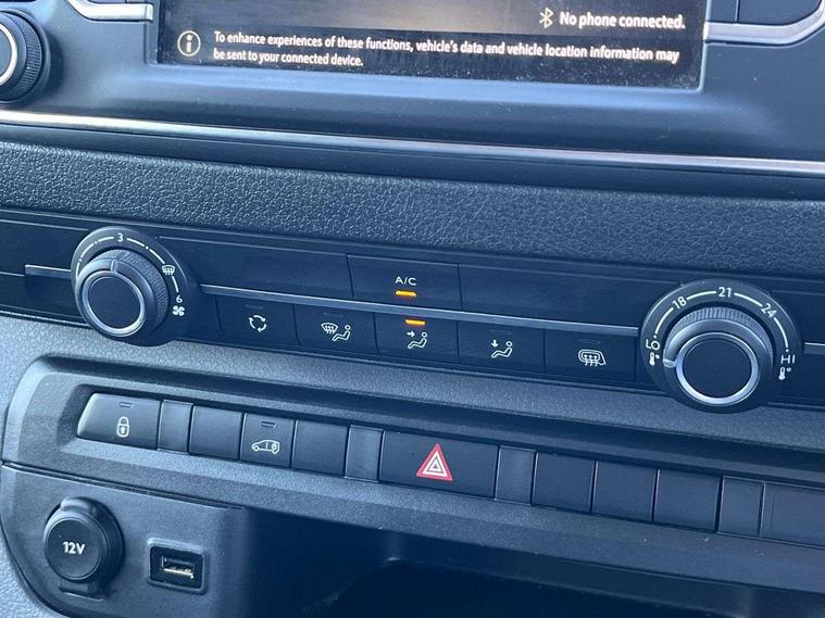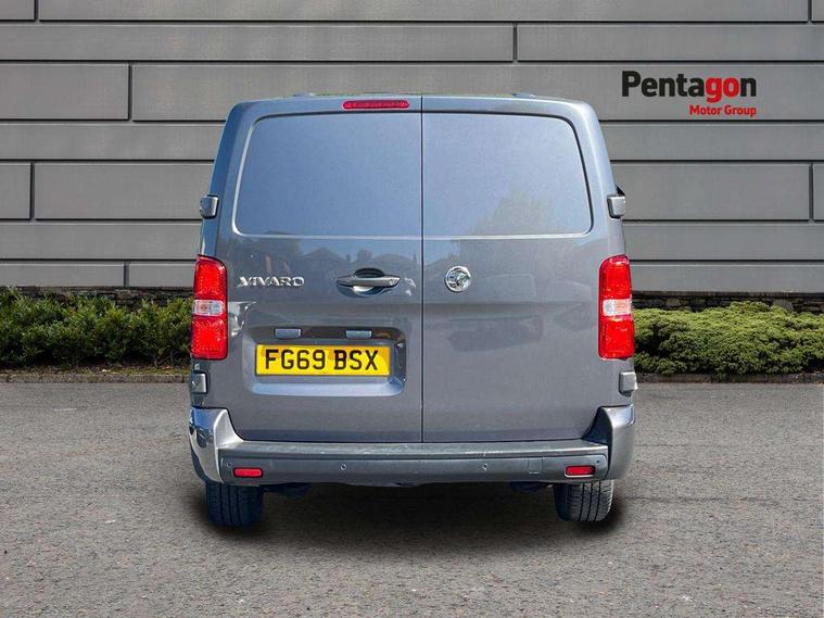 Driver drowsiness system, Instrumentation - Speedometer, rev counter, fuel gauge with low fuel warning light and coolant temperature warning light, Multi function trip computer, trip odometer, vehicle range, average speed, driving time, average and instantaneous fuel economy, Vauxhall connect box, Steering column mounted audio controls and flexible roof mounted aerial, Electric front windows with one touch up/down facility, Front cornering lights, Halogen headlights, Lights on audible warning, reversing light, hazard warning, rear fog light, high level brake light and side repeat indicator, Unglazed nearside and offside sliding side access door, 2 Reading lights, Cab soundproofing, Curitiba cloth upholstery with vinyl side bolsters, Facia storage-upper glovebox, open lower glovebox with 12v socket and aux-in , lower shelf, A4 storage on top, two drink holders, pocket in gear lever, Fixed floor mounted load restraint lashing eyes x8, FlexCargo load through bulkhead, Fold flat centre seat backrest, Front door pockets, Reach and rake adj steering wheel, facia mounted gear lever, floor mounted handbrake lever, cab headliner, inertia reel lap and diagonal seatbelt, White picto instrument panel, Visibility Pack - Vivaro, Driver airbag and front passenger airbag with deactivation switch, Height adjustable outer front seatbelts, Electronic engine deadlock immobiliser, steering column lock, lockable fuel filler cap and anti theft spare wheel cradle, Remote control door locking, selective door locking, two keys with integral remote and door deadlocks, Security alarm system with engine compartment protection, ultrasonic detectors in load area and siren, 22.5 litres AdBlue tank, Electronic brake force distribution, Four channel Anti lock braking system, Hill start assist, Rear 12v socket,