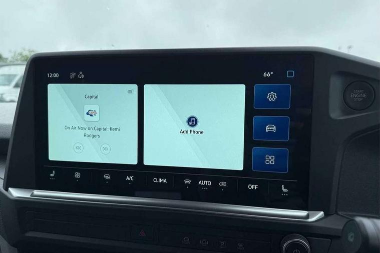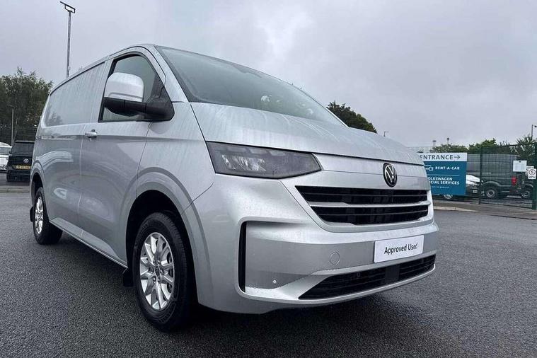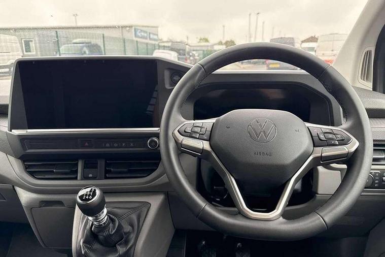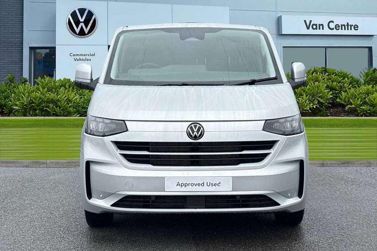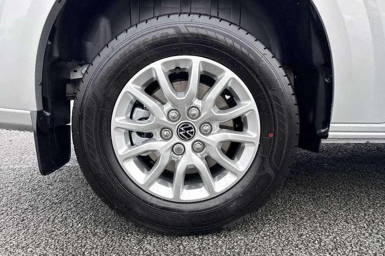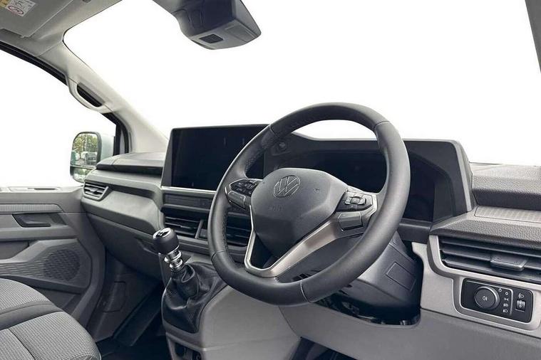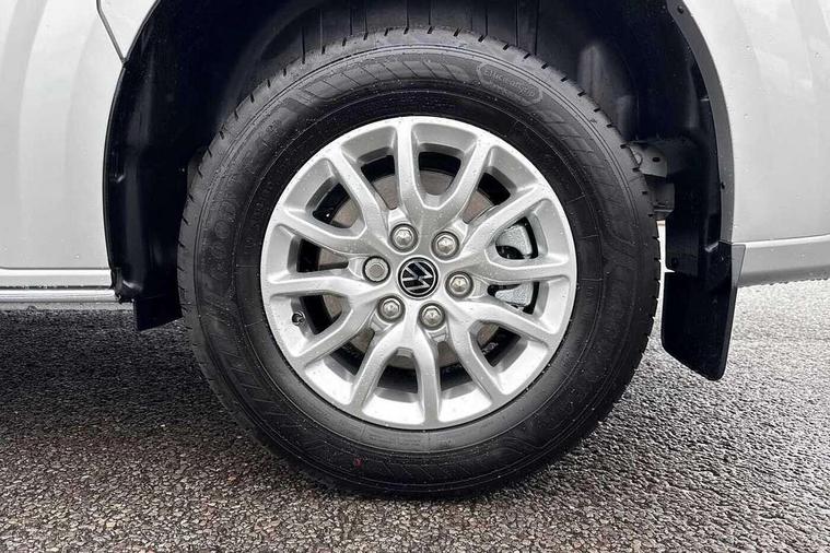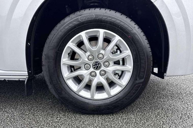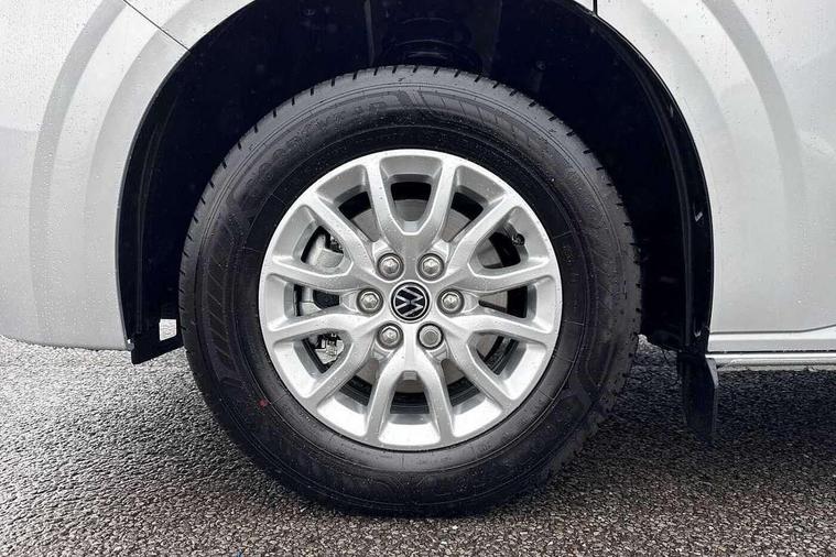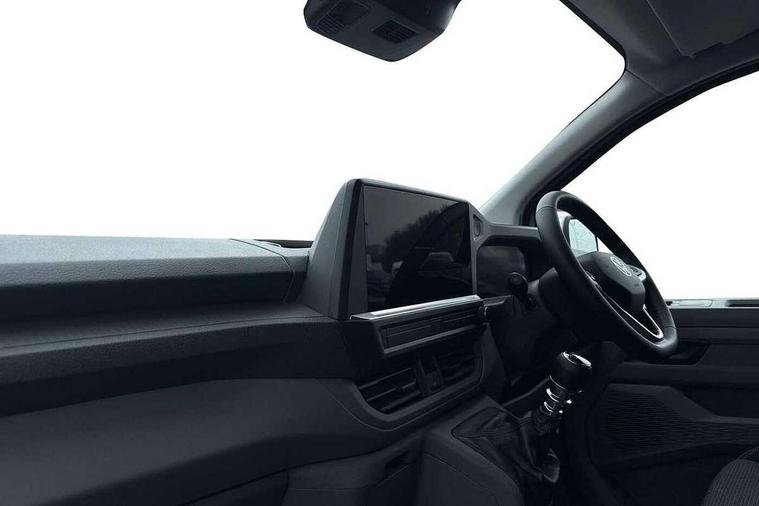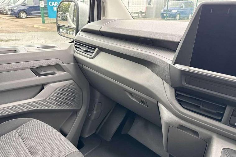 12" digital drivers display, 13" touchscreen infotainment display with wireless app connect and DAB radio, 5G Modem, Adaptive cruise control, Apple CarPlay and Android Auto, Dynamic road sign display, eCall emergency system, Electromechanical speed sensitive power steering, height and longitudinally adjustable steering column, Lane and blind spot assist with exit warning system, Preparation of VW connect and connect plus, Wireless mobile phone charging, Wrong way driver warning, Body colour bumpers, Body coloured door handles, Body coloured door mirrors, Body coloured radiator grille, Electrically heated, adjustable and folding door mirrors, Heat reflecting side window glass, Mud flaps front and rear, Rear Transporter nameplate in black grained decorative trim, Vehicle opening configuration 1x 1st row of seats, 2x all doors, 12V outlet in centre console and 12V outlet on rear right D-pillar, 2x 15-W USB data/charging ports in dashboard and 1x USB-C, 1x USB-A center bottom, 2x LED lights in load compartment, 3x additional super bright LED lights in load compartment, 4 way height and tilt adjustable head restraints, 5 additional USB-C charging ports, Black plastic scuff plate for sliding door in cargo without illumination, Cabin interior lighting, Glasses compartment in driver side roof, Grab handle on A-pillar passenger side, Illuminated lockable glovebox, Lashing rings for reinforced floor covering, Leatherette gear lever, Narrow centre console with cup holder and compartment for mobile phone, Overhead storage compartment, Rubber floor covering in cab, Striped fabric upholstery, Without passenger seats in load compartment, Driver and front passenger airbag with front passenger airbag deactivation, Dual tone horn, Front and curtain airbags for driver and front passenger, Seat belt pretensioner for driver seat, Anti theft alarm system with interior monitoring in cab, backup horn and towing protection, Electronic immobiliser, Lockable wheel bolts, Preparation for alcohol ignition interlock, 5+ Promise, Alternator - 230A, Electromechanical brake booster, Electronic stability control, ABS, ASR with deactivation button, hill start assist and brake assist system,