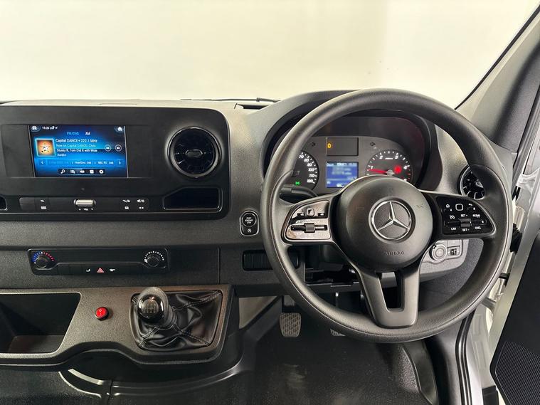 Inside the cabin, this Sprinter includes practical and modern features like Start/Stop Technology, Cruise Control, Rear Camera, Touchscreen Digital Display, multifunction steering wheel, Bluetooth connectivity, digital radio (DAB), Apple CarPlay, Android Auto, and more.