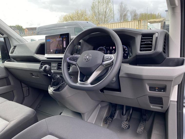 The Volkswagen Crafter CR35 Commerce Plus LWB in striking Oyster Silver combines practicality, comfort, and cutting-edge technology. Under the bonnet, a robust 2.0-litre TDI diesel engine delivers 140 PS, paired with a manual transmission to provide dependable performance whether navigating city streets or covering long distances. Driving is made easier with front and rear parking sensors and automatic headlights, while electrically adjustable mirrors ensure clear visibility in all conditions. The ply-lined load space, reinforced lashing rings, and easy-access rear wing doors with a side sliding door and integrated handles make loading and securing cargo both simple and efficient. The electronically controlled air conditioning system maintains the perfect temperature, and the storage package adds an overhead compartment with two 1-DIN slots and a reading light, offering convenient space for your essentials. A multifunction steering wheel and cruise control enhance driving comfort, especially on longer journeys. The Crafter also excels in technology. The Digital Cockpit dash works seamlessly with a feature-rich infotainment system that includes DAB radio, Bluetooth connectivity, and Volkswagen App-Connect. To keep you connected on the move, the cab is equipped with multiple USB ports. By choosing this vehicle, which is compliant with ULEZ, you'll not only benefit from cleaner, healthier air in urban environments, but also reduce your carbon footprint and running costs.