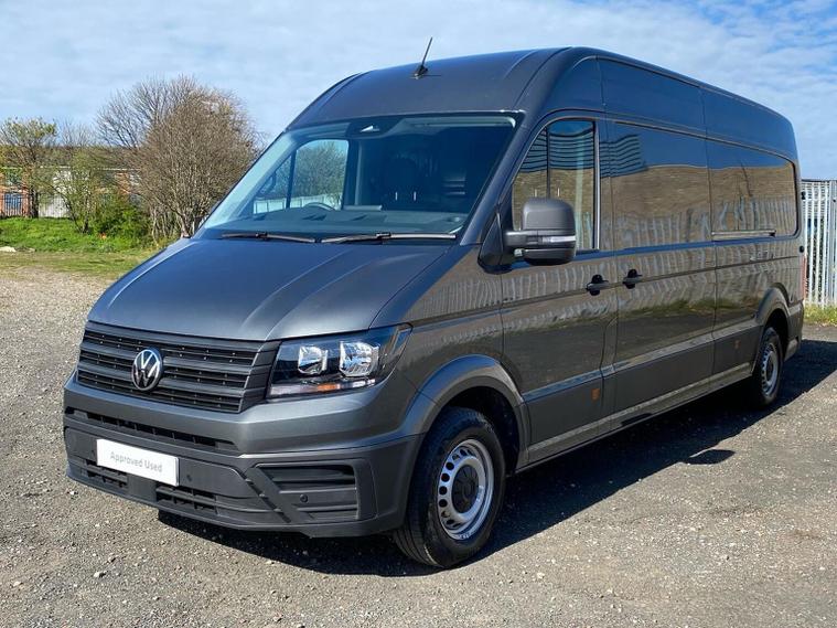 Crafter 3.5 tonne high roof long wheel base 140ps Commerce Plus 2.0tdi in indium grey with 12574 miles on the clock. This vehicle is prepped and serviced for immediate delivery, extra's include: Heated wing mirrors, rear view camera, front & rear parking sensors, alarm, air con, cruise control with speed limiter, multi function steering wheel, trip computer, bluetooth, prep for we connect, dab, 10.4" colour touch screen, ply line and many more. A short video presentation of this vehicle is available upon request, call today for more information. *£250 + vat maximum charge for delivery anywhere in England, Scotland & Wales.
