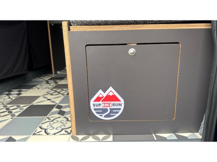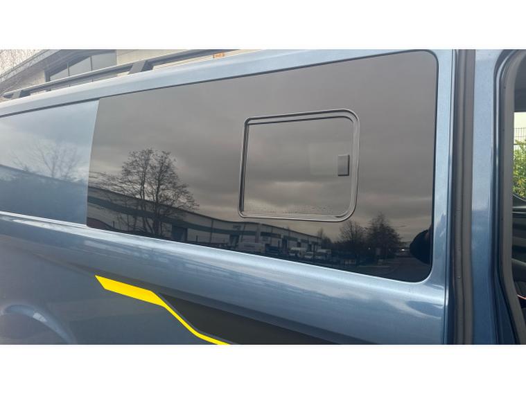 Visually, the van stands out thanks to its upgraded aftermarket alloy wheels, custom roof rails, and striking RS decal designs around the body. It also benefits from additional windows fitted to the rear doors, improving visibility and giving the interior a more open feel.