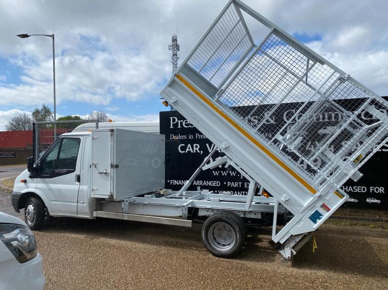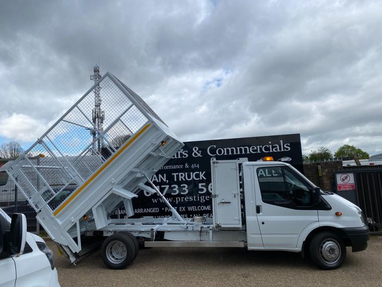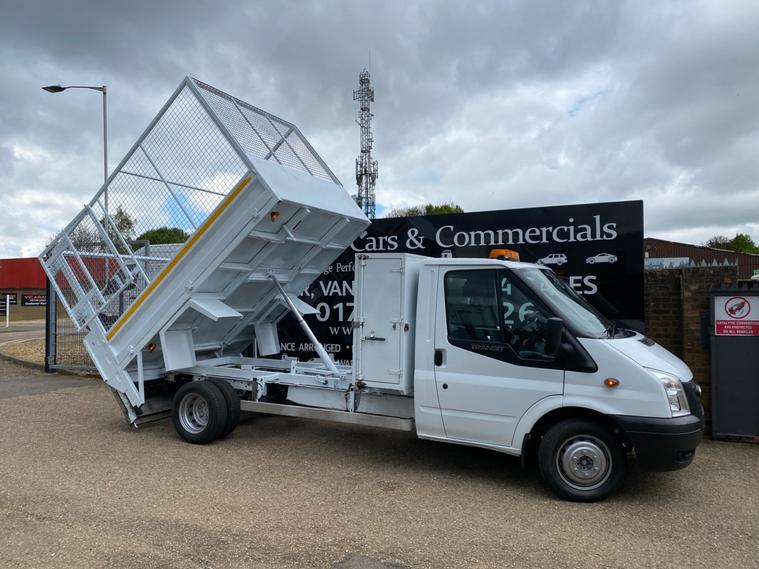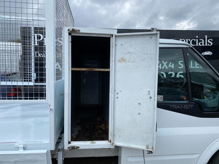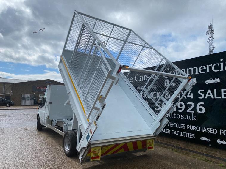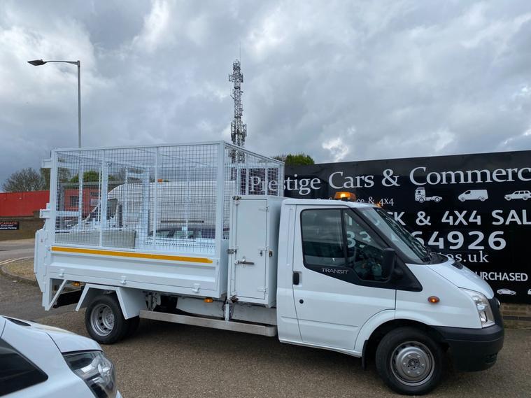 2014 63reg FORD TRANSIT MK7 T350 LWB L3H1 2.2 TDCI 100 BHP CHAIN DRIVEN ENGINE WITH 6 SPEED MANUAL GEARBOX REAR WHEEL DRIVE TWIN REAR WHEELS CAGED HIGH SIDED TIPPER TIPPING DROPSIDE STEEL BODY COVERED GENUINE MEGA LOW MILES OF 31315 BY 1 COUNCIL OWNER FROM. VERY WELL MAINTAINED AND LOOKED AFTER. DRIVES LOVELY. HEAVY DUTY STEEL BODY. DROPSIDES FOR EASY LOADING. PASSENGER SIDE SLIDING DOOR TO CAGE FOR EASIER LOADING. BODY SIZE IS 3.02 METRE / 9 FEET 11 INCHES LONG X 2 METRE / 6 FEET 7.5 INCHES WIDE. CAGE IS 1.83 METRE/6FEET HIGH. REAR TOOL STORAGE BOX POD WITH TWIN SIDE OPENING. AMBER FLASHING ROOF BEACON. REAR BARN DOORS ON CAGE WITH DEL SLIM JIM 500KG FOLDING TAIL LIFT. SIDE CRASH BARS. SWITCHABLE REVERSE BEEPER. ELEC WINDOWS. REMOTE CENTRAL LOCKING. FRONT ARMREST. HEATED FRONT SCREEN. CD RADIO MP3 WITH AUX IN MUSIC MEDIA CONNECT. TRACTION CONTROL. DECENT TYRES ALL ROUND. JUST HAD FULL SERVICE WITH GENUINE FORD FILTERS AND OIL. CURRENT MOT VALID TILL 16/04/2027, 6 MONTHS NATIONWIDE PARTS AND LABOUR WARRANTY INCLUDED IN THE PRICE. 3954MM WHEELBASE. 2800KG TRAILER PULL CAPACITY. GREAT WORKHORSE. NICE RELIABLE GENERATION OF TRANSIT. CHOICE OF CAGED TIPPERS IN STOCK NOW. CHOICE OF QUALITY USED HAND PICKED COMMERCIALS IN STOCK NOW. CHOICE OF PANEL VANS, TIPPERS, DROPSIDES, LUTONS, PICK UP'S, CREW CABS, SINGLE CABS ALL IN STOCK NOW.