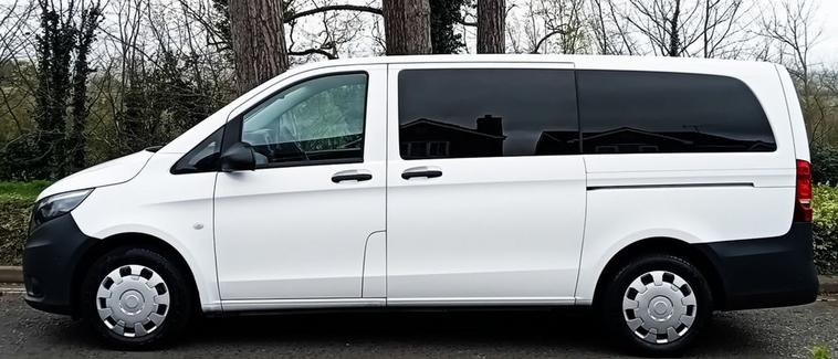 Eight Seats Long Wheelbase Automatic Gearbox OVER 70 MINIBUSES IN STOCK NATIONWIDE DELIVERY AVAILABLE Satellite Navigation Air Conditioning Cruise Control with SPEEDTRONIC Speed Limiter 16in Steel Wheels ABS - Anti-Lock Braking System ASR - Anti-Slip Regulation ATTENTION Assist Adaptive Brake Lamps Adaptive ESP - Electronic Stability Programme Airbag - Driver Airbag - Front Passenger Airbags - Thorax for Driver Rare Airbags - Thorax for Driver and Passenger Rare Airbags - Window BAS - Brake Assist Crosswind Assist Daytime Running Lights Door Mirrors - Heated and Electrically Adjustable Doors - Tailgate Rare Doors - Twin Sliding Side - Glazed Drivers Seat - Height-Adjustable EBV - Electronic Brakeforce Distribution Electric Windows - Front Electromechanical Steering Glazed Tailgate Headlights - Halogen Heated Rear Window Heating - Electrical Auxiliary Demister Heating Elements Heavy Duty Battery - Uprated with 95Ah High Level Third Brake Light Illuminated Vanity Mirror in Sun Visors Rare Immobiliser Outside Temperature Display Remote Central Locking Seat - Passenger Height-Adjustable Seat Belt Reminder - Front Seats - 3-Person Bench Row 1 Seats - 3-Person Bench Row 2 Service Indicator ASSYST Single Co-Driver Seat Steering Wheel - Leather Rare Steering Wheel - Rake and Reach Adjustment Tinted Glass - Lightly Tinted Green Tyre Pressure Monitoring System Warning Lights for Oil Level - Coolant Level - Brake Fluid - Brake Pads - Bulb Failure and Door Closure Washer Fluid Warning Light Windows - Fixed in Rear Quarter