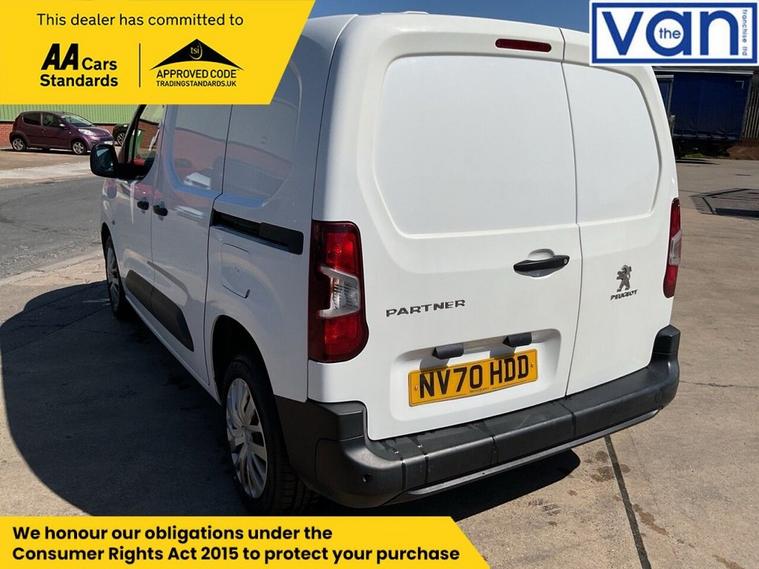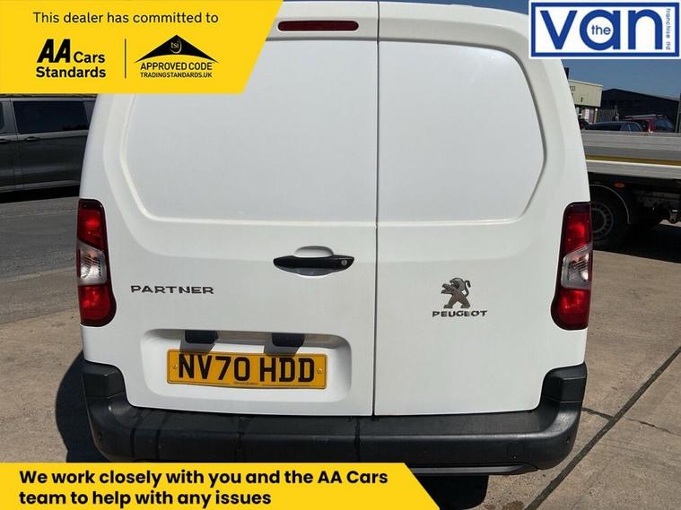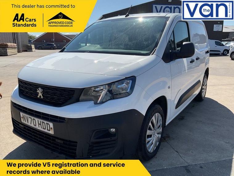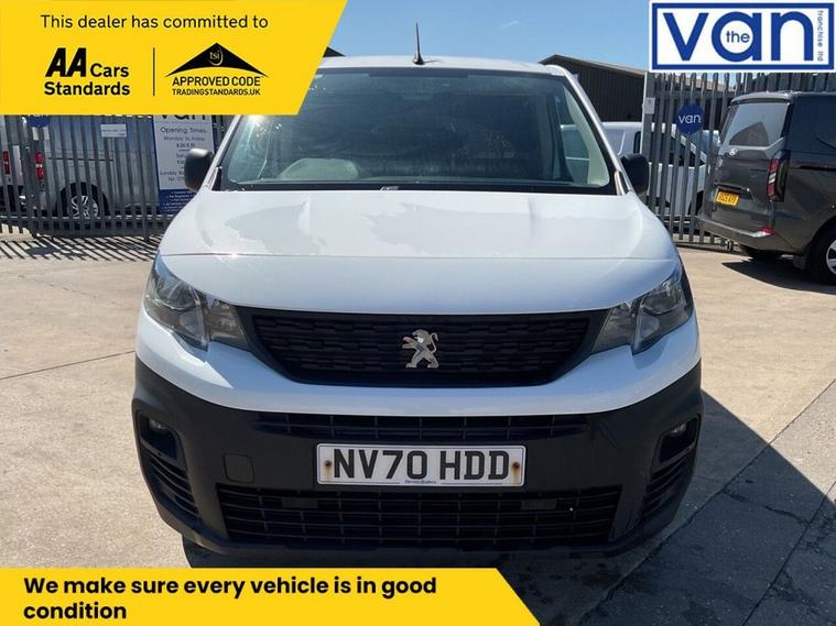 This 2021 Peugeot Partner is a superb example, having had only one owner since new. This BlueHDi 1000 Professional Standard Panel Van SWB Euro 6 (s/s) 5dr model is powered by an efficient 1.5 litre diesel engine and boasts the Professional trim level. Inside, youll find the innovative PEUGEOT i Cockpit with a head up display and compact steering wheel, alongside an 8 inch capacitive colour touchscreen featuring Connect DAB Radio, Bluetooth handsfree and a USB socket. For added convenience and safety, it includes rear parking sensors and height adjustable halogen headlights with automatic illumination and daytime running lights, all complemented by air conditioning. This Peugeot Partner stands out with an impressive fuel economy of 54 miles per gallon, indicating its efficiency compared to other vehicles. It also benefits from low CO2 emissions, making it an environmentally conscious choice. With a generous cargo volume of 3900 litres, this van offers ample space for your business needs, further enhanced by its Euro 6 compliant engine.