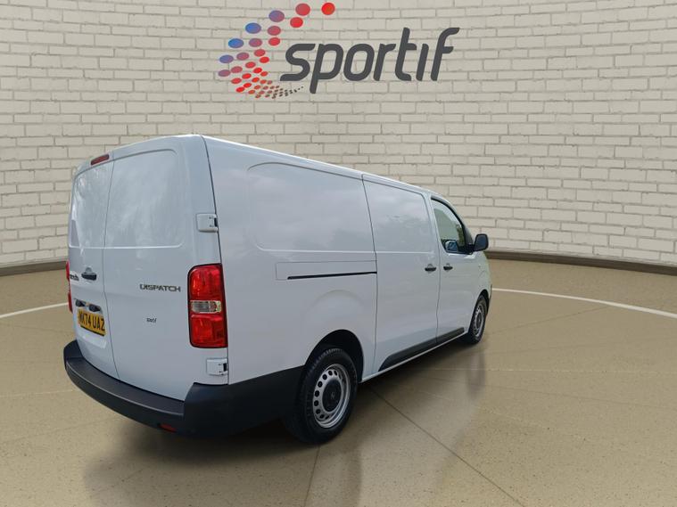 Boasting exceptionally low mileage for its age, this 2024 Citroen Dispatch Enterprise XL LWB is a standout example with only one owner and a full service history. This Euro 6 compliant 1.5 BlueHDi diesel van, registered in 2024, comes with a 12 month warranty and a 12 month MOT provided on purchase, ensuring peace of mind. It is also Citroen manufacturer approved and has a clear vehicle history check. Notable features include rear parking sensors with parking assistance, the My Citroen Play Plus system offering Android Auto, Apple CarPlay, and Bluetooth connectivity, automatic on-off headlight control, and air conditioning for a comfortable driving experience.This Enterprise XL model offers impressive practicality, highlighted by its substantial 6100 litre cargo volume, making it ideal for transporting goods. Its fuel economy is also a key advantage, achieving an excellent 42 mpg, which is better than many similar vehicles. Furthermore, it benefits from low CO2 emissions, contributing to its efficiency. With a mere 6484 miles on the clock, this van represents a fantastic opportunity to acquire a nearly new, well maintained, and feature rich commercial vehicle..