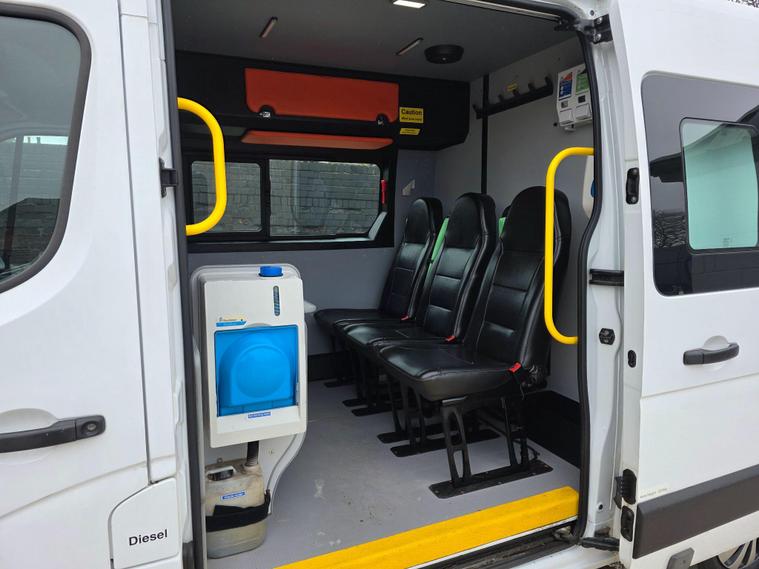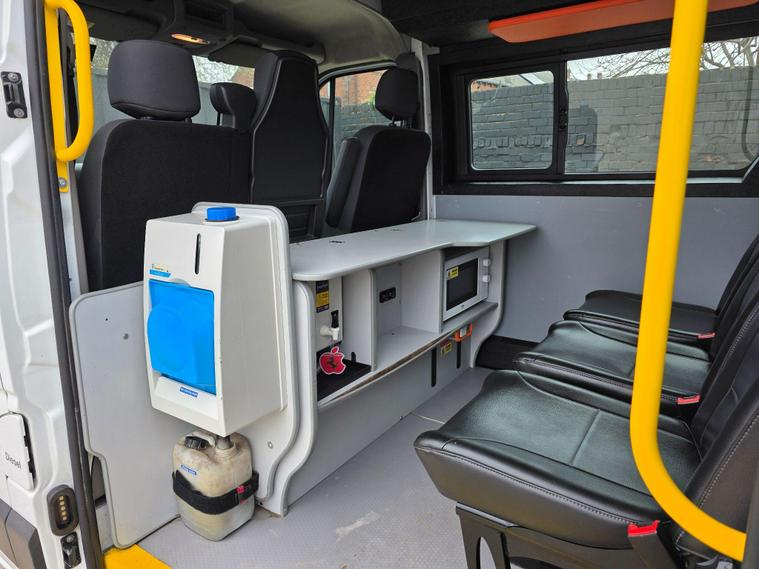 Welfare Van Euro 6 – ULEZ Compliant. 1 Owner van with service history and supplied with 12 Month MOT. 2 Keys. Massive Specification with: 5 Seats. Foldaway Rear Tables, Internal Diesel Heater, Bright out door work LED Lights, 240v sockets, Microwave, Hot Boiling Water Decanter, fresh Water With Sink. Internal Racking & Drawers, Parking Sensors, Rear Steps, Rear View Camera. This 2018 Vauxhall Movano presents a superb ownership history, having been meticulously maintained by just one owner from new. Under the bonnet, you'll find a robust 2.3 litre CDTi diesel engine, compliant with Euro 6 emissions standards, ensuring efficient performance. This L2 H2 model is equipped with the practical Nearside Blind Spot Junction Mirror, which includes Blind Spot Assistance, enhancing safety and visibility during manoeuvres.With an impressive cargo volume of 9400 litres, this Movano offers substantial space for your business needs, outperforming many similar vehicles in its class. The CDTi 3500 derivative further signifies its capability and reliability, making it a dependable choice for a wide range of commercial applications. This well cared for example combines practicality with advanced safety features for a superior driving experience..