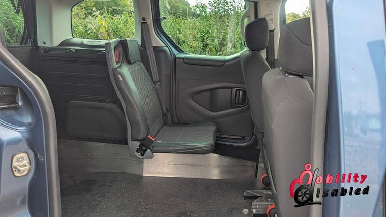 The rear tailgate and wheelchair ramp are fully automated and can be operated via wireless remote control, allowing for easy and independent access. Inside, the vehicle offers two front seats (both of which are removable) and a folding rear passenger seat, providing flexible layout options depending on user requirements. A switch-operated electronic handbrake is also fitted for ease of use. Privacy glass is fitted to the rear windows, improving comfort and discretion for passengers.