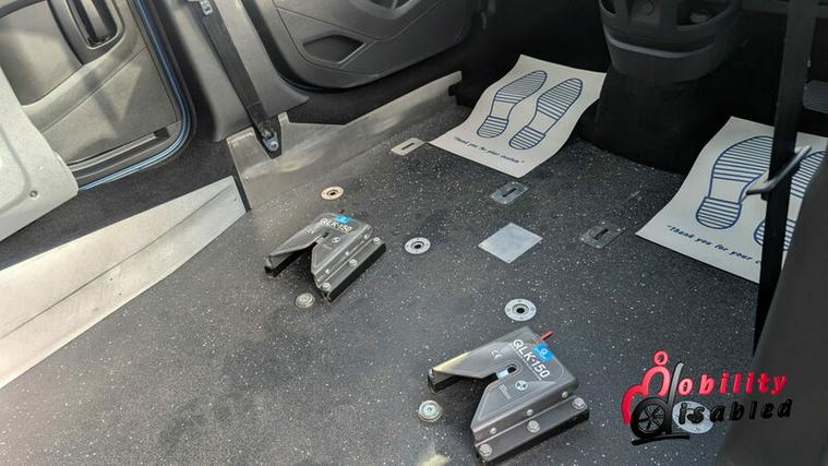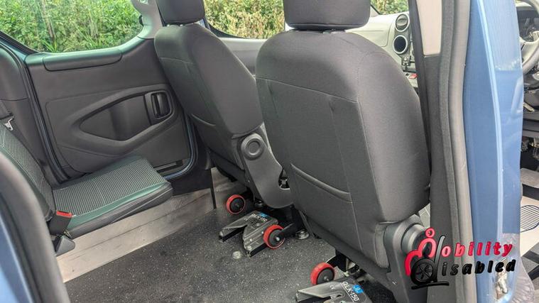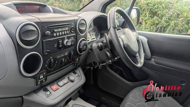 This Partner has been professionally converted into a disabled access and drive-from-wheelchair vehicle by Allied Vehicles. The conversion includes a fully lowered floor throughout, allowing for either an up-front passenger wheelchair position or full drive-from-wheelchair capability. For secure wheelchair positioning, it is fitted with a QLK-150 wheelchair docking system in both the front passenger position and driver position. Hand controls and a steering ball are also installed to allow full independent driving from a wheelchair. It is worth noting there is no manual docking system in place, relying instead on the electronic QLK system for securement.