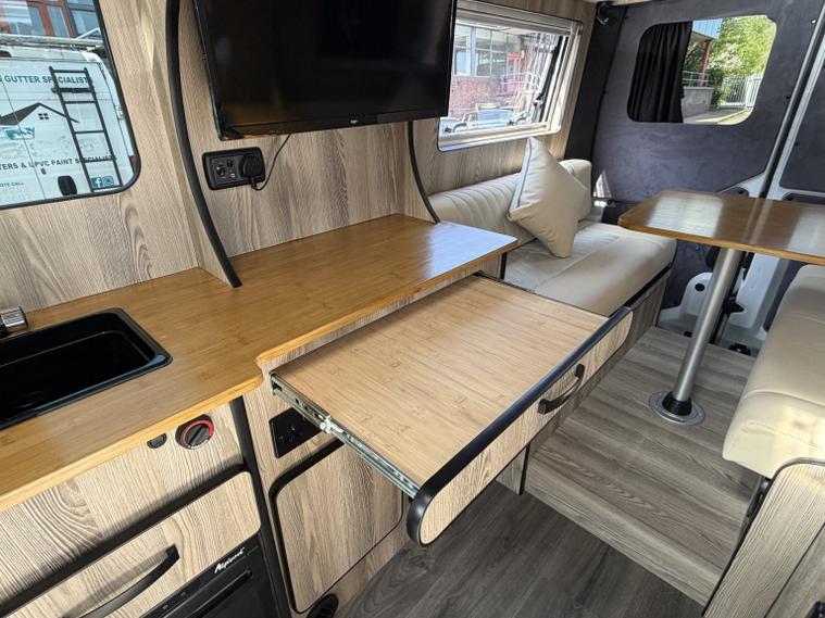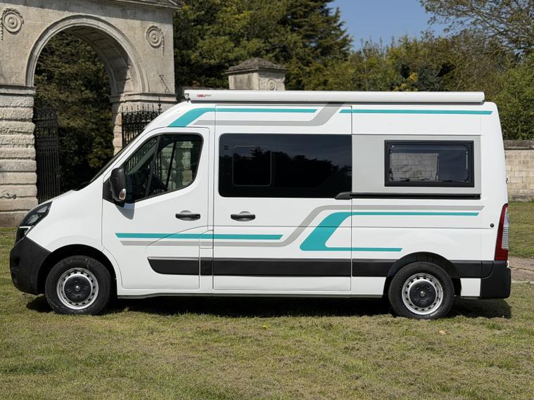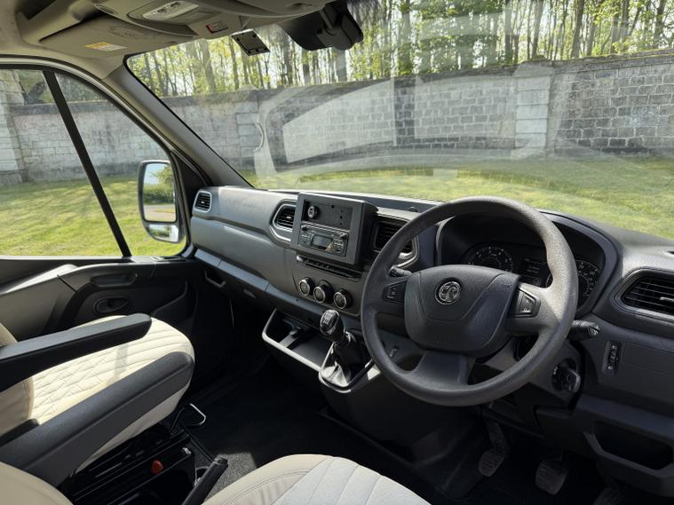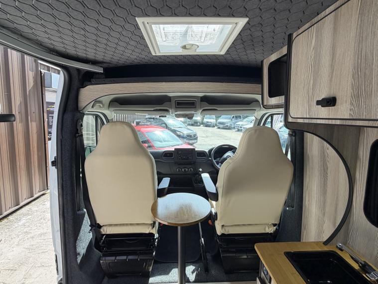 Vauxhall Movano 2.3 CDTi 3500 BiTurbo. L2 H2 2 Berth motor home campervan motor caravan Euro 6, HPI Clear, Part Exchanges welcome, Finance available, the van has had a BRAND NEW CONVERSION which has never been used, looks and drives fantastic. Specification includes, cruise control, radio, Bluetooth, climate control, auto lights, auto wipers, daytime running lights, front electric windows, 12v socket, USB port, multifunction steering wheel, central locking, Conversion specification:, - Custom upholstered front swivel seats with matching bench seats. - Quality furniture board throughout with stained bamboo work surfaces. - 12v led lighting throughout. - 240v hook up with various 240v sockets. - 100ah Eco Worthy LiPO4 Battery with 120w solar set up and sterling smart charger. - Webasto diesel heater. - 12v 50Ltr Fridge. - Glass top 2 burner gas hob. - FIAMMA roof vents x 2 and Fiamma Awning. - Tv with fitted Ariel. Nationwide delivery can be arranged, Available to view & test drive now we are located 20 minutes from junction 31 of the M1. Request a personalised video today, checkout our reviews to give you the reassurance that you would be buying your next new vehicle from a dealer that actually cares about its customers and the service we provide.