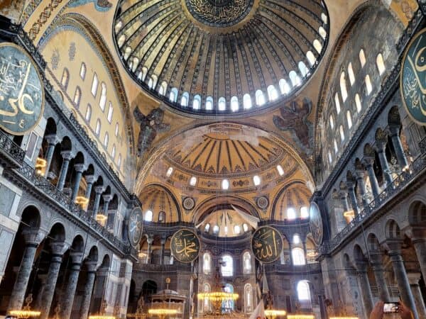 Aan de Bosporus ligt het 19e-eeuwse neo-barokke Dolmabahcepaleis. Het grote Ottomaanse rijk was al aan het einde van zijn glorietijd, maar de toenmalige sultan spaarde kosten noch moeite om dit prachtige paleis te laten bouwen. Na ons bezoek zouden we naar de Chorakerk gaan, die de mooiste Byzantijnse mozaïeken en fresco’s van de stad heeft. Maar die is helaas gesloten wegens renovatie. Er wordt veel gerenoveerd in Istanbul en dat is goed, maar wij kunnen daarom enkele bezienswaardigheden niet bezoeken.